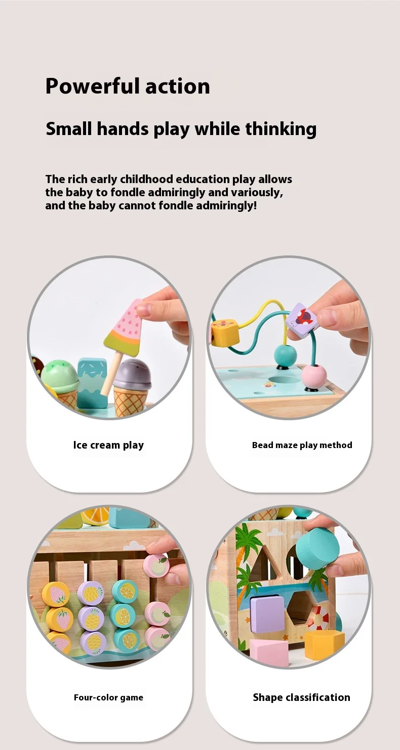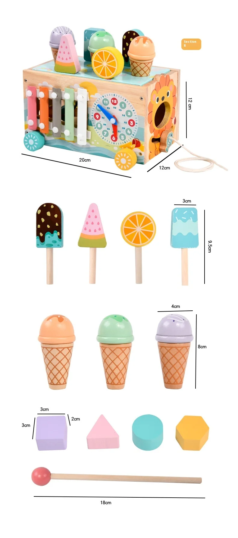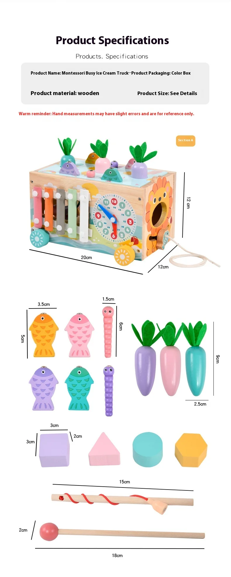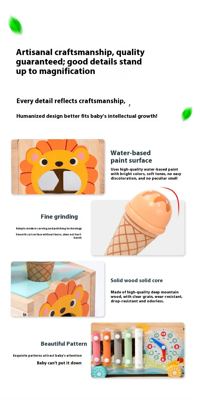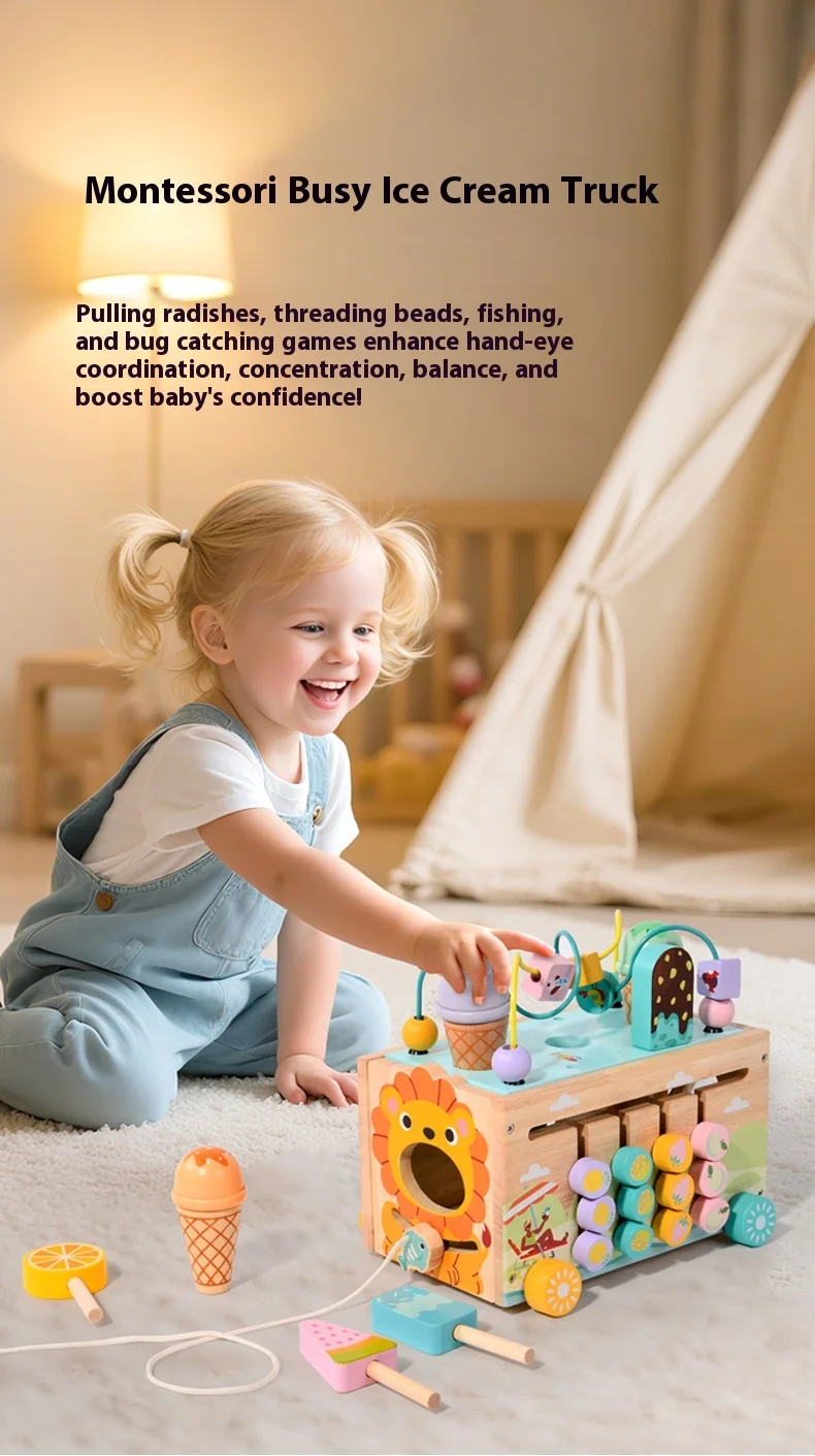 Multifunctional Montessori Busy Ice-Cream Truck Early Educational Wooden Toy for 1-3 Years Old Children