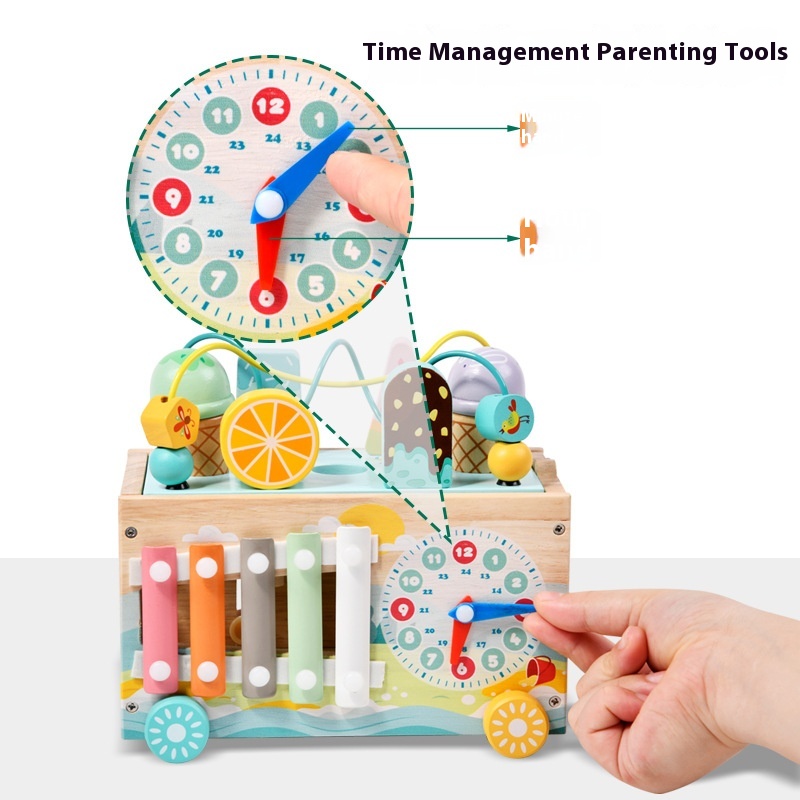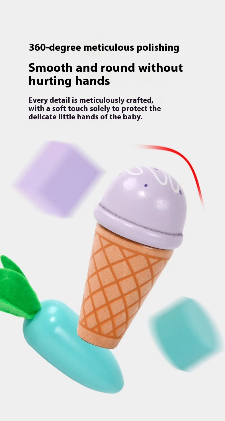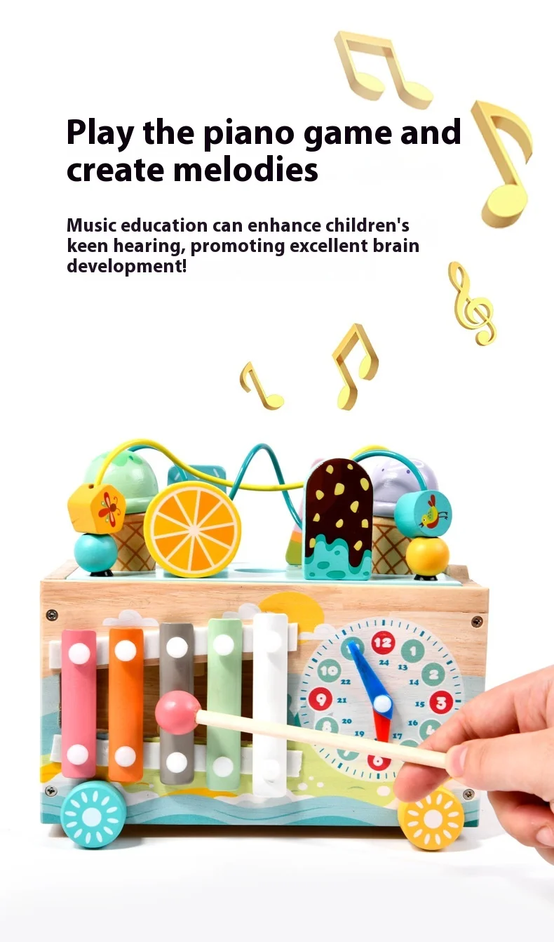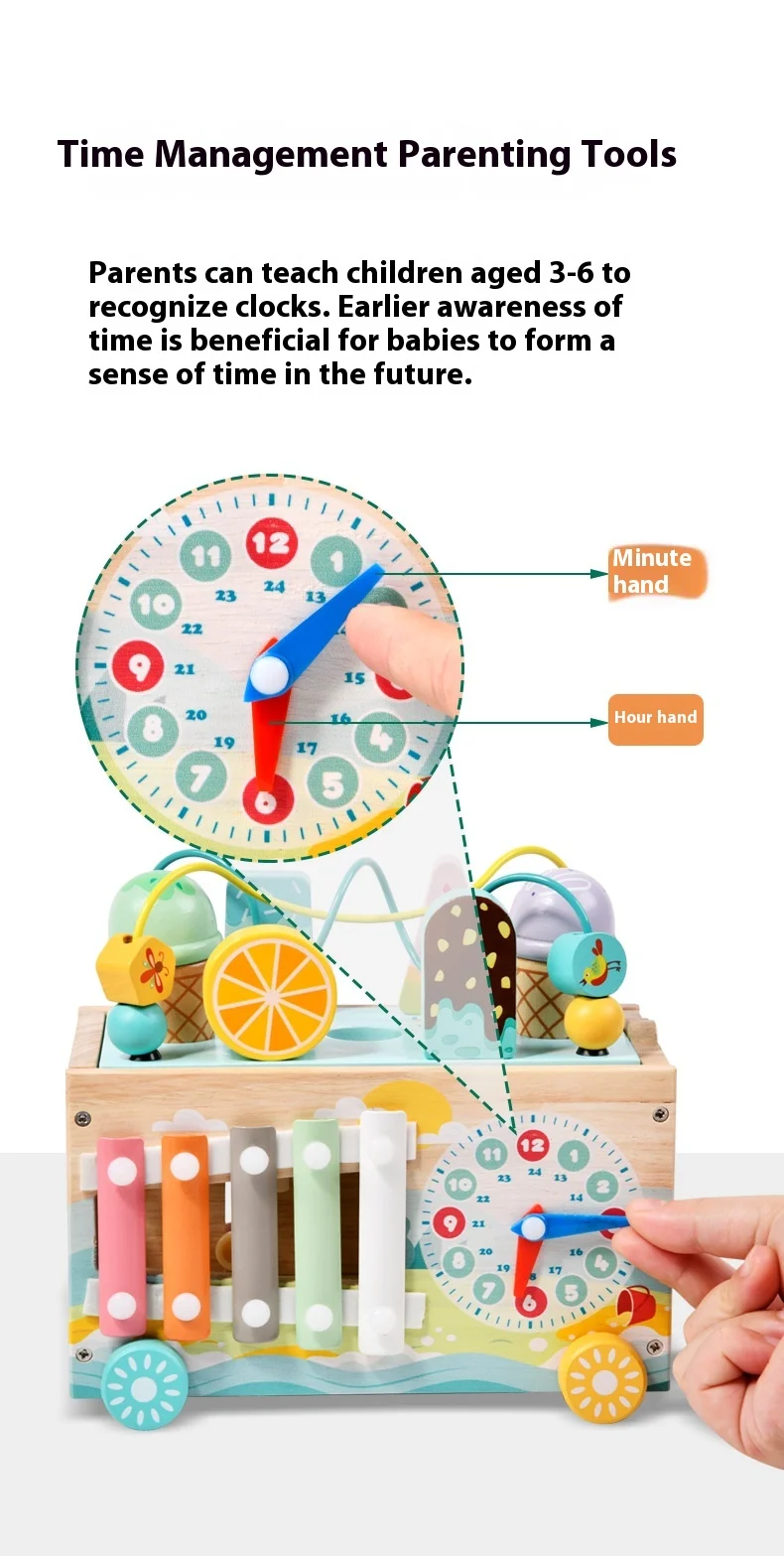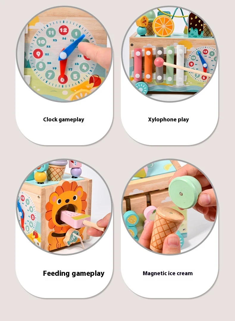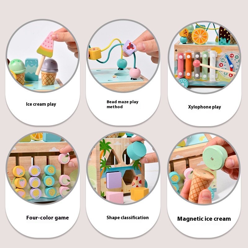 Multifunctional Montessori Busy Ice-Cream Truck Early Educational Wooden Toy for 1-3 Years Old Children