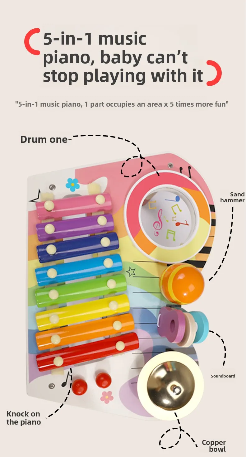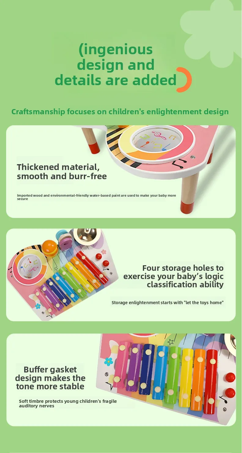 Multifunctional Wooden Drum Set Children’s Early Education Musical Instrument Piano Percussion Educational Toy for Babies