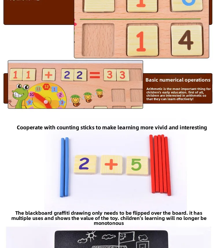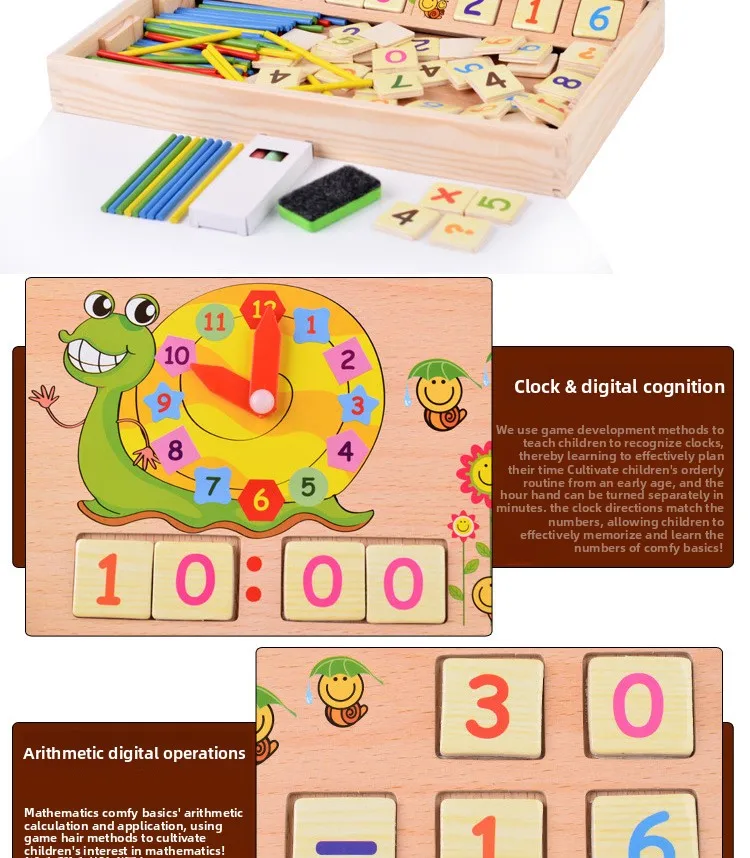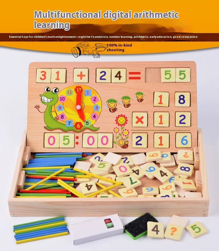 Multifunctional Wooden Educational Box Montessori Number Calculation Kids Interactive Toys Counting Arithmetic Sticks Toys