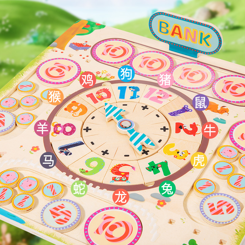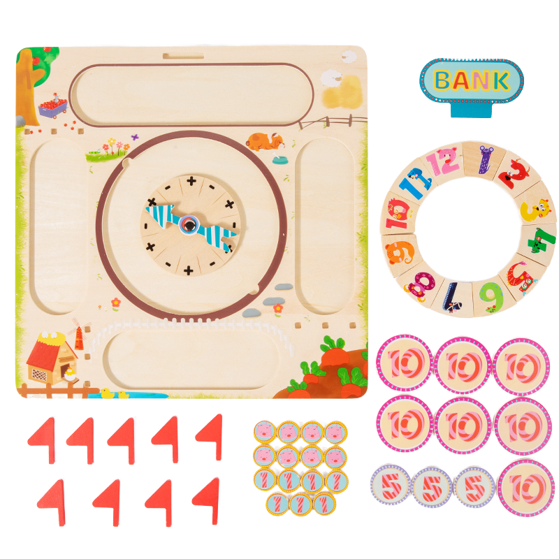 Multiplayer Beginner Math Addition and Subtraction Arithmetic Games Tabletop Game for Kids with a Farm Theme Wooden Toys