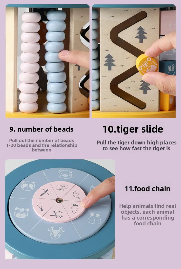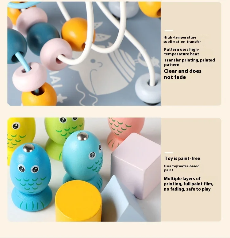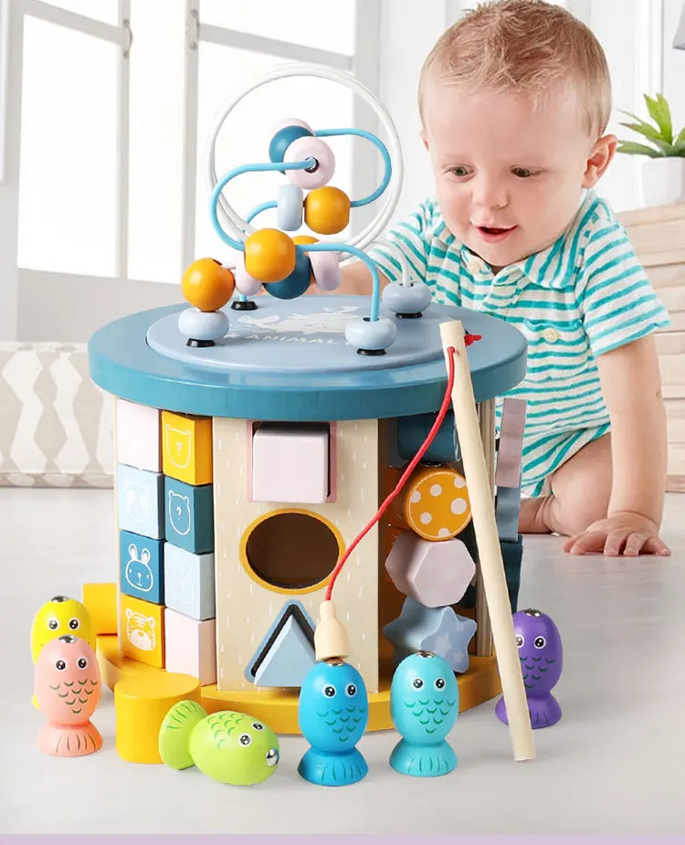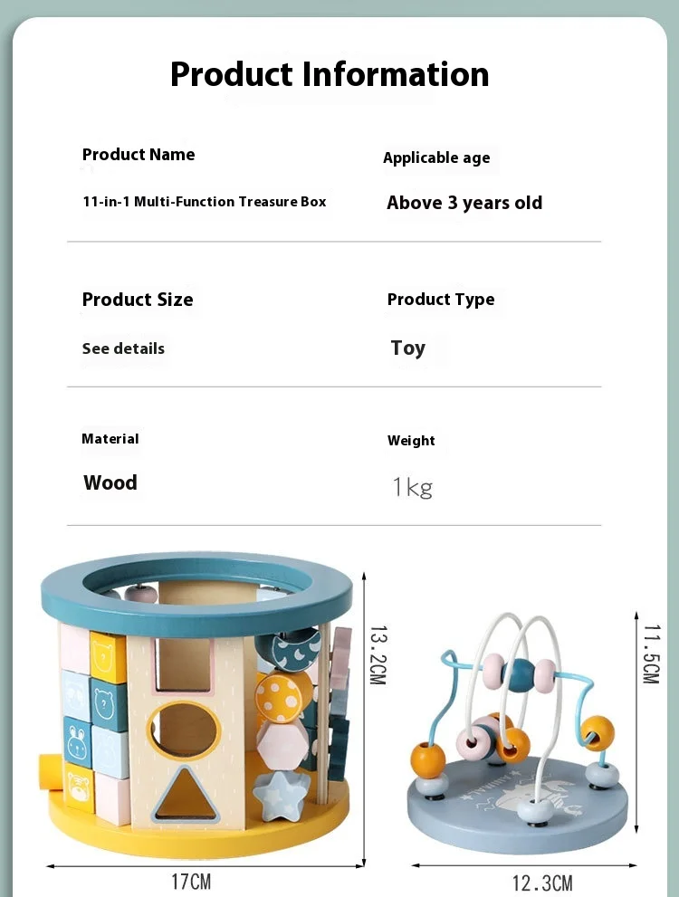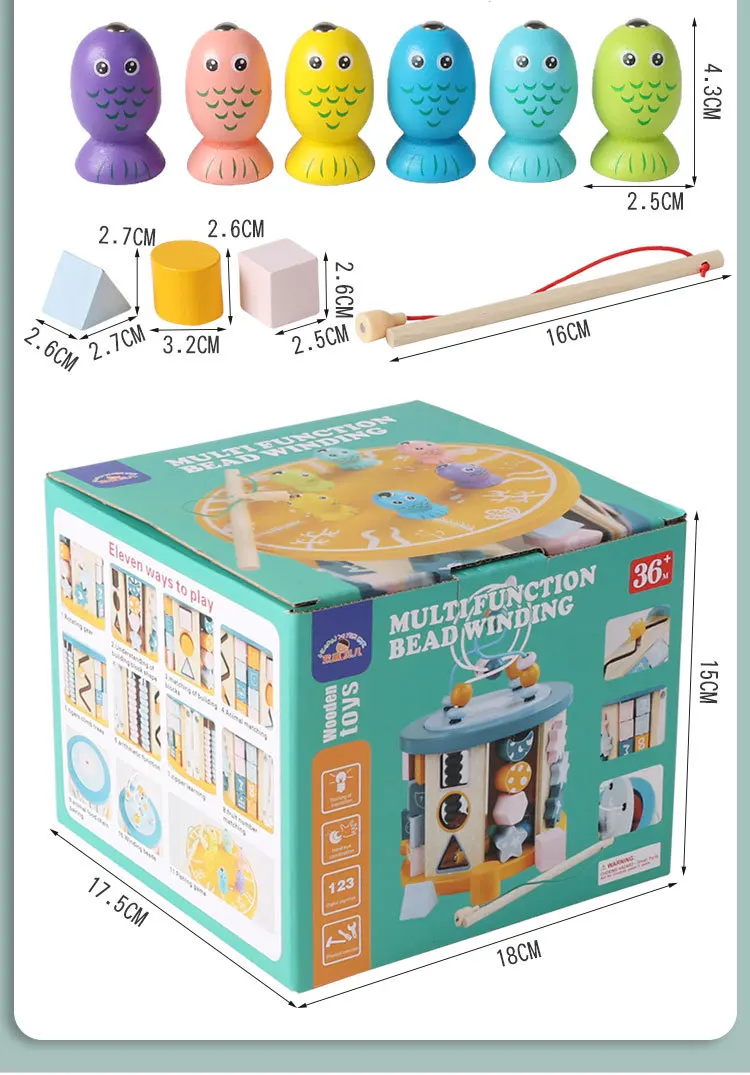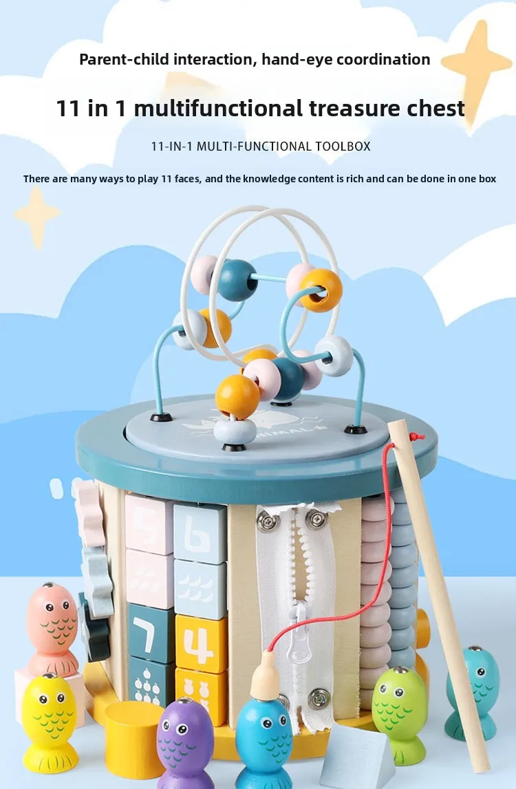 New 11-in-1 Multi-Functional Wooden Building Blocks Eight-Sided Bead Early Education Toy New Design New Treasure Box Fishing Toy