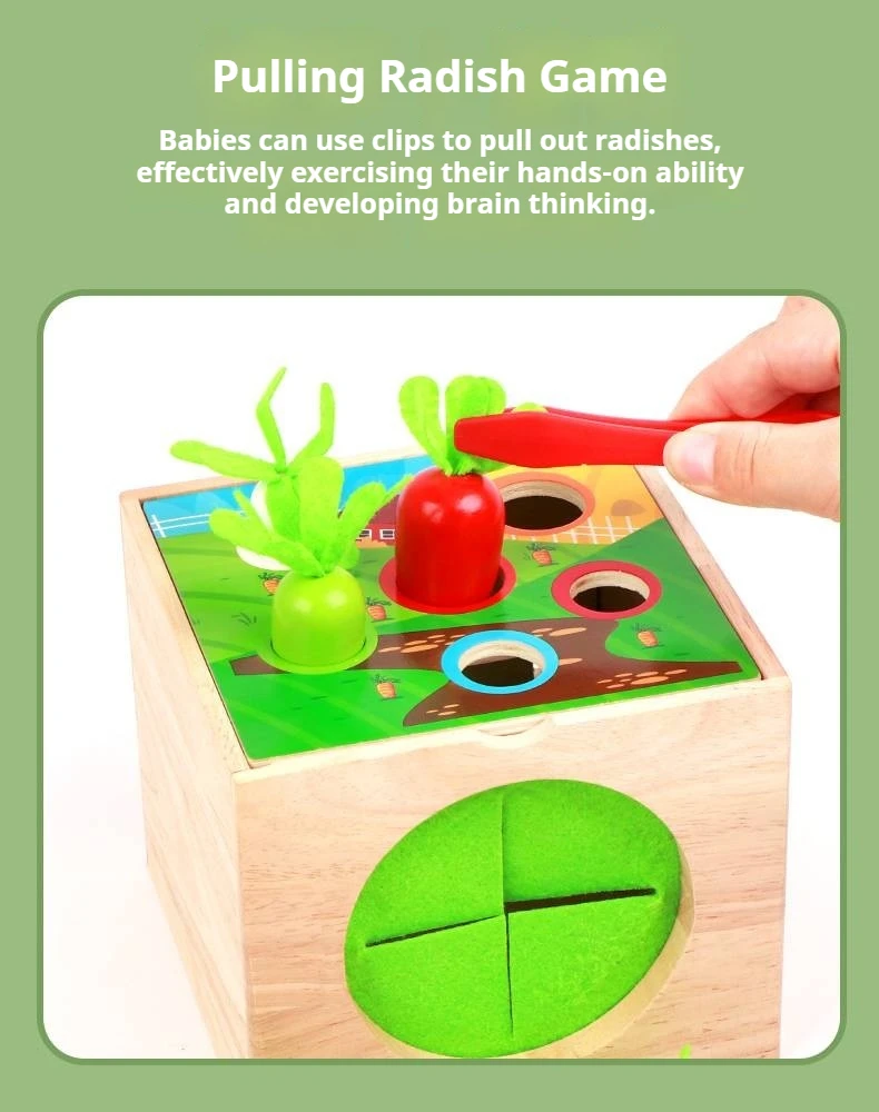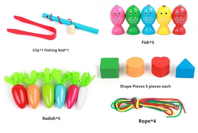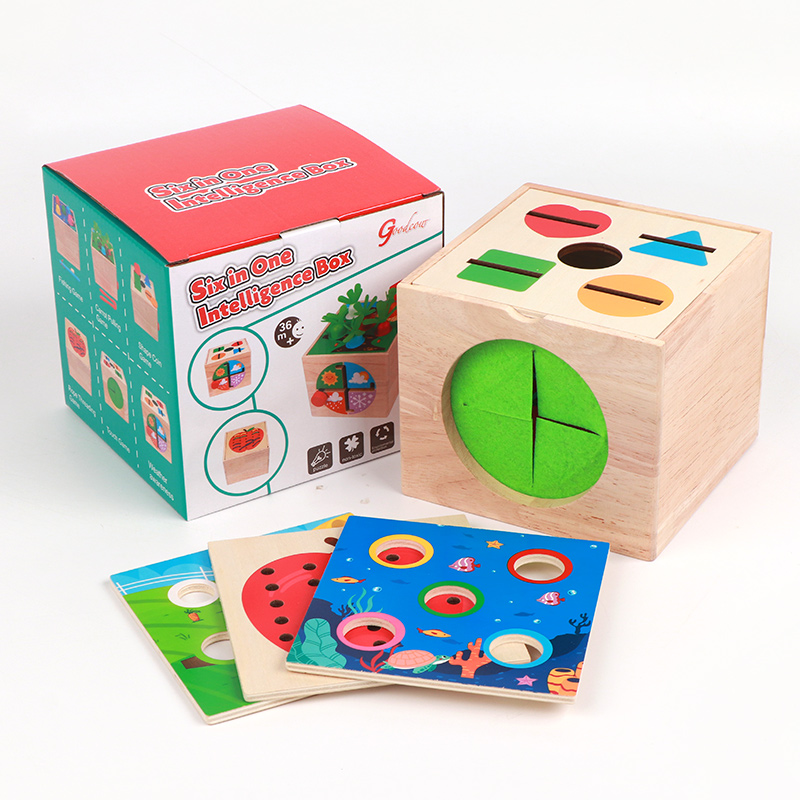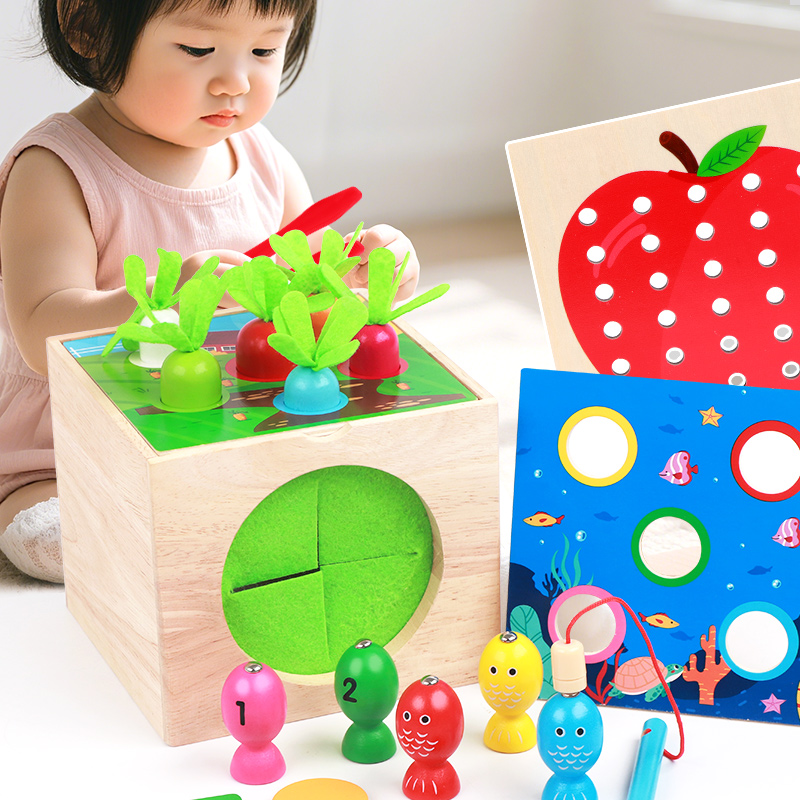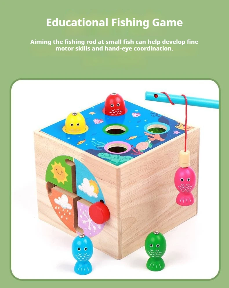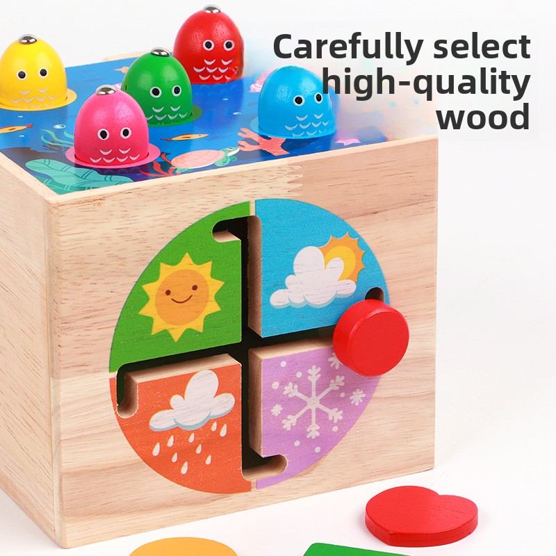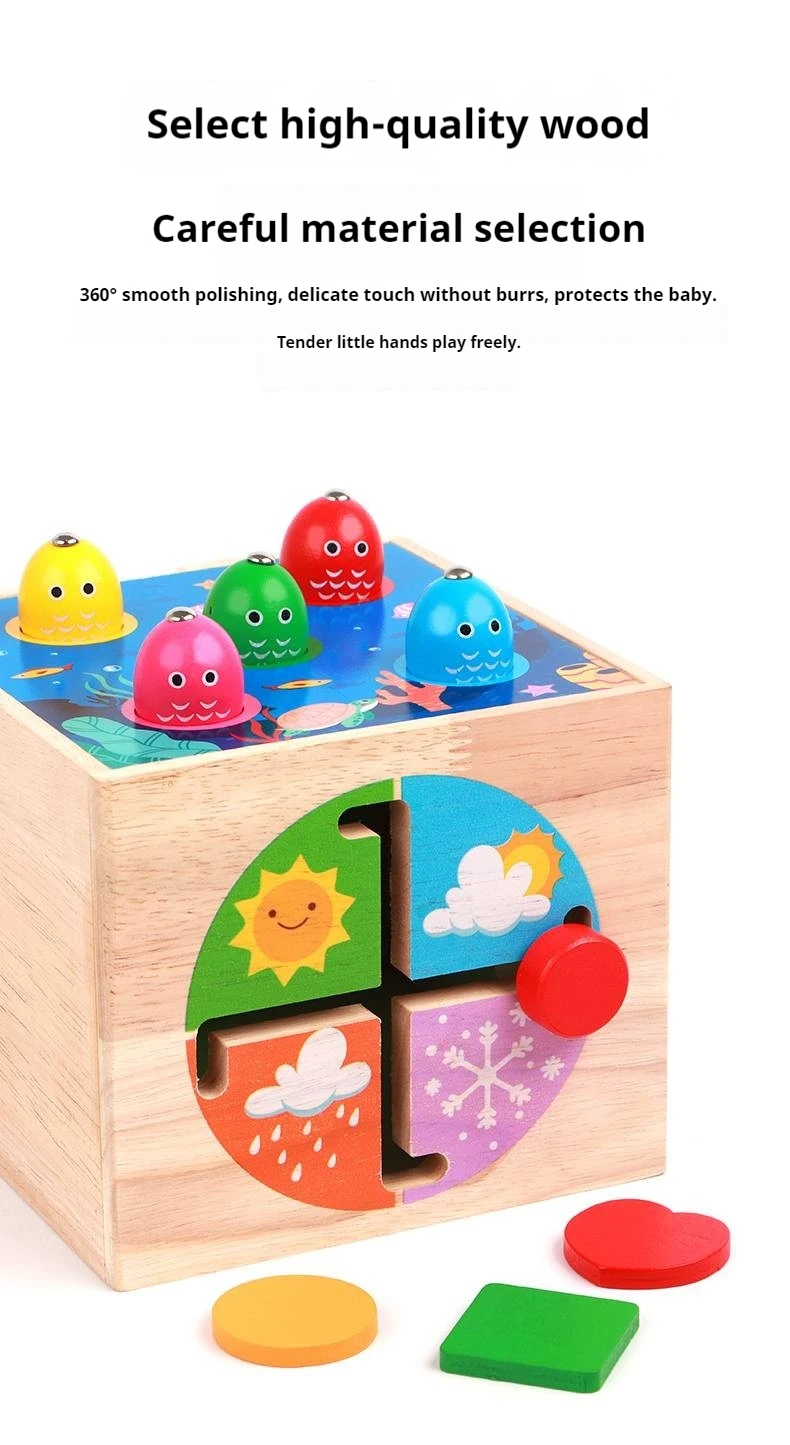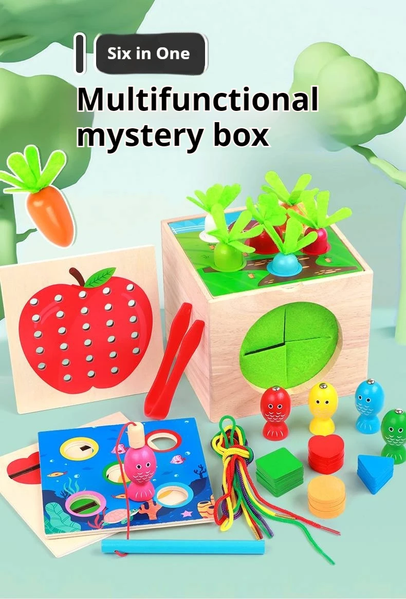 New 6-in-1 Children’s Wooden Educational Busy Box Toys Color Shape Classification Carrot Pulling Fishing Game Building Blocks