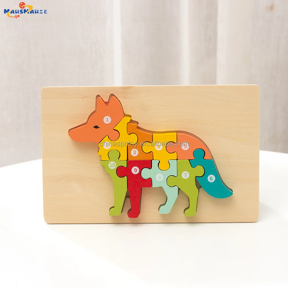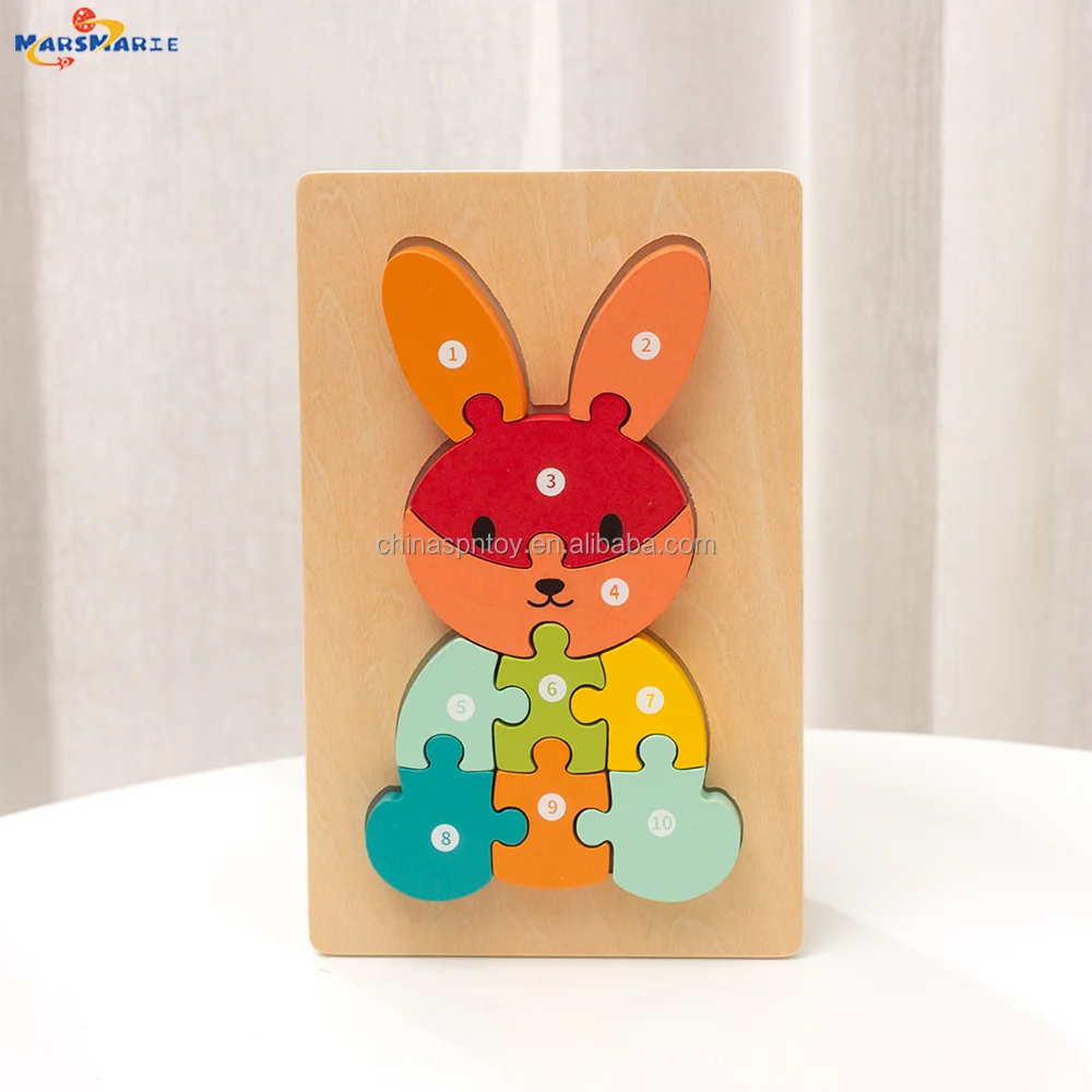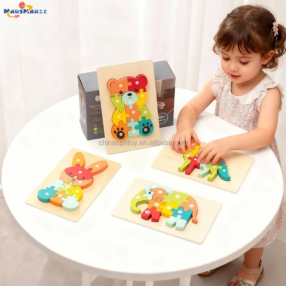 New Arrival Custom Children’s Wooden 3D Cartoon Animal DIY Pegged Jigsaw Puzzle Early Educational Gift Toys Boys Girls CPC CE