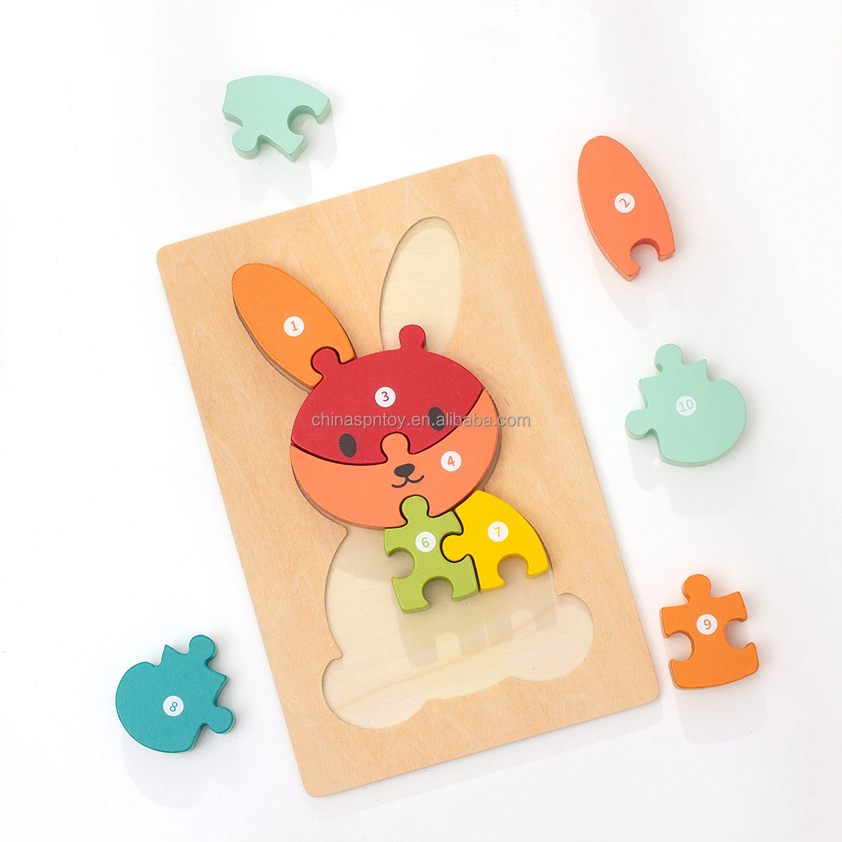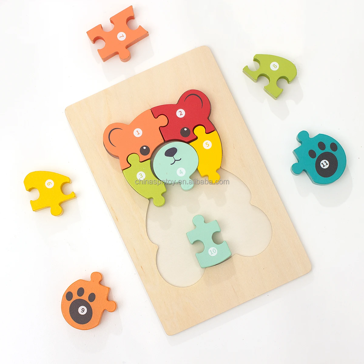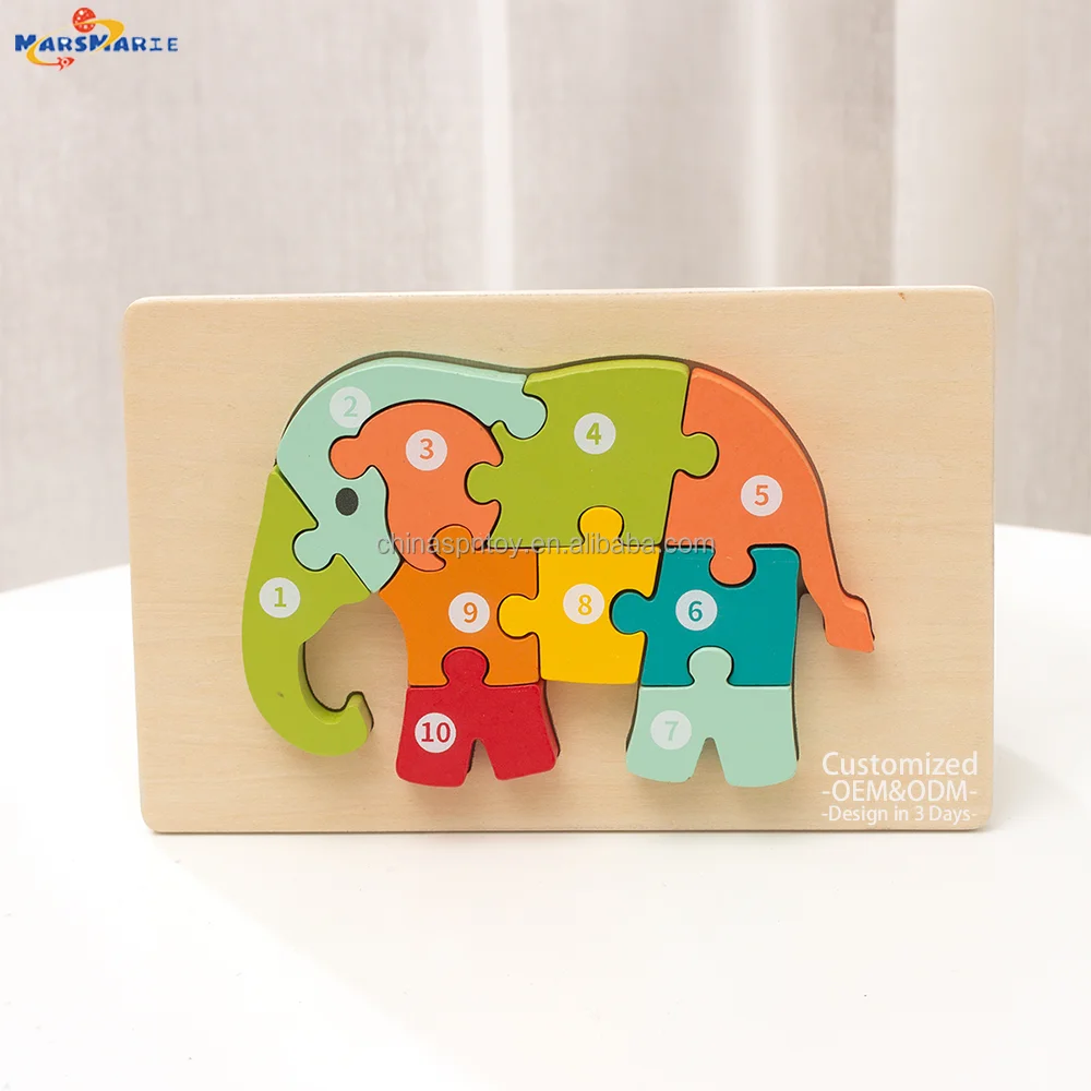 New Arrival Custom Children’s Wooden 3D Cartoon Animal DIY Pegged Jigsaw Puzzle Early Educational Gift Toys Boys Girls CPC CE