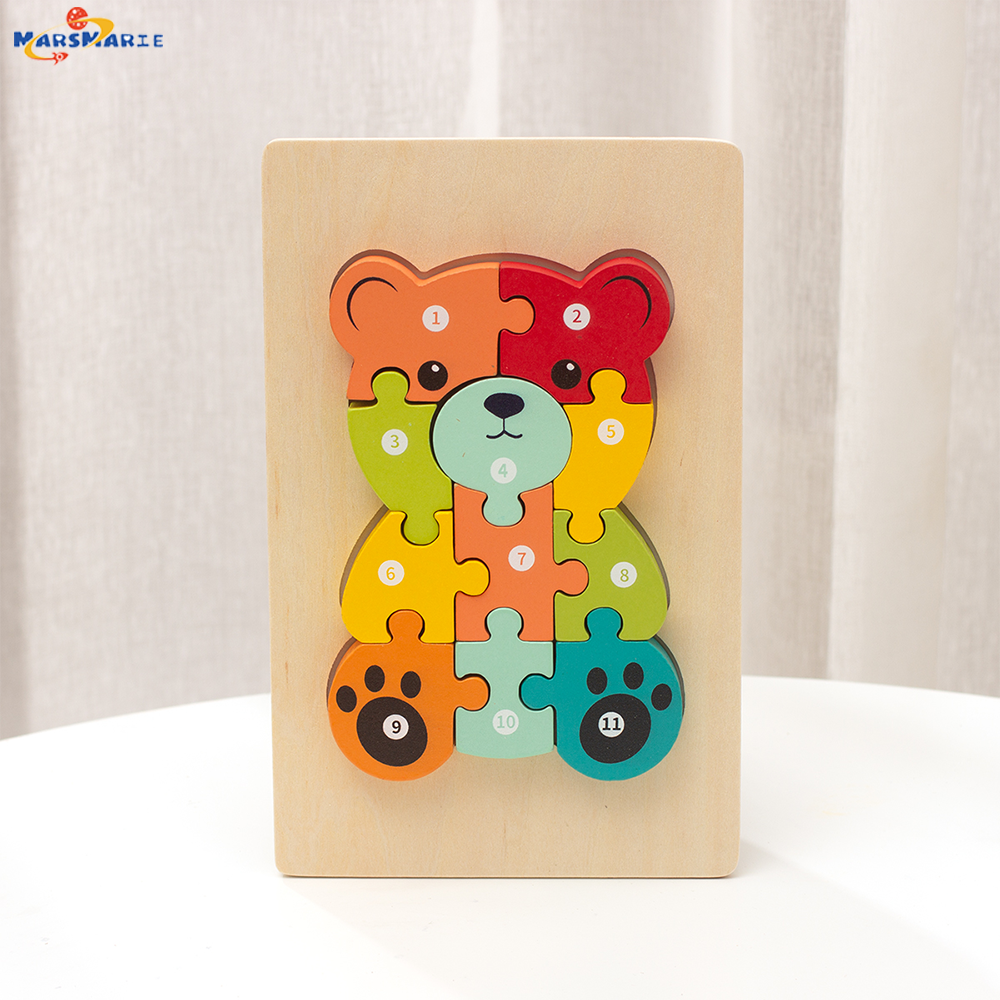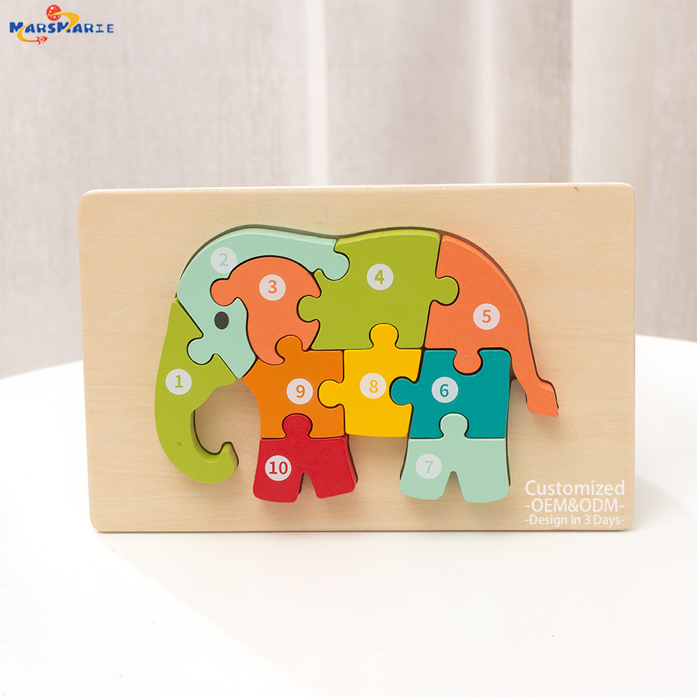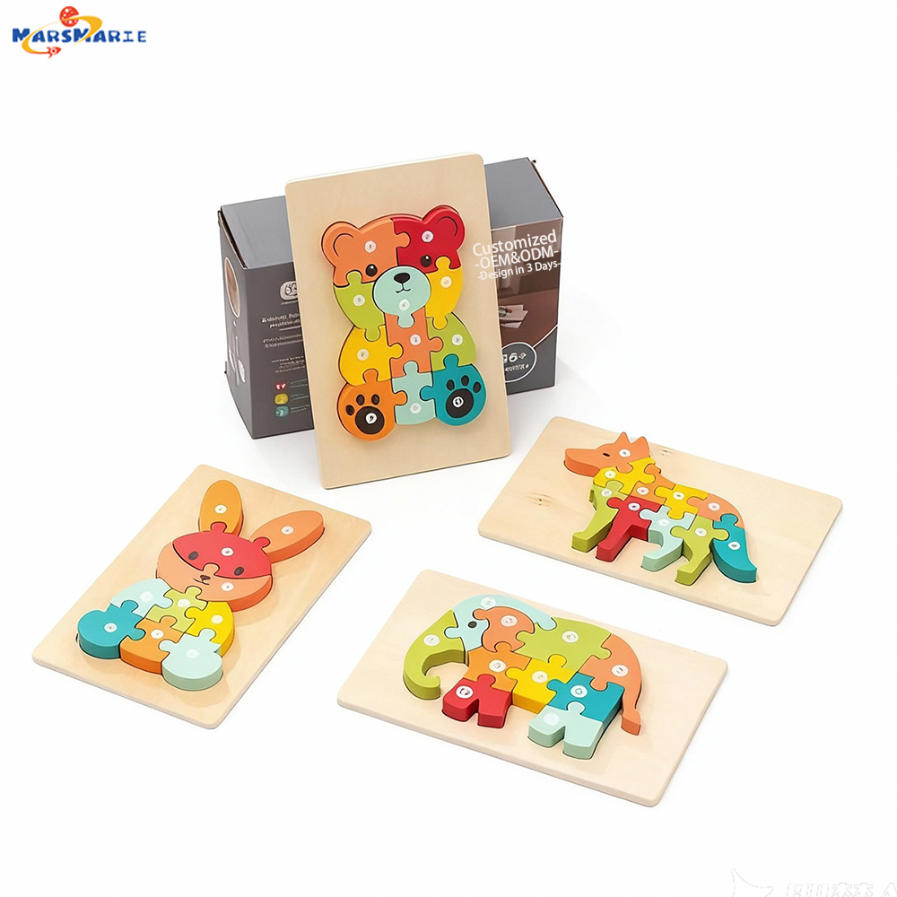 New Arrival Custom Children’s Wooden 3D Cartoon Animal DIY Pegged Jigsaw Puzzle Early Educational Gift Toys Boys Girls CPC CE