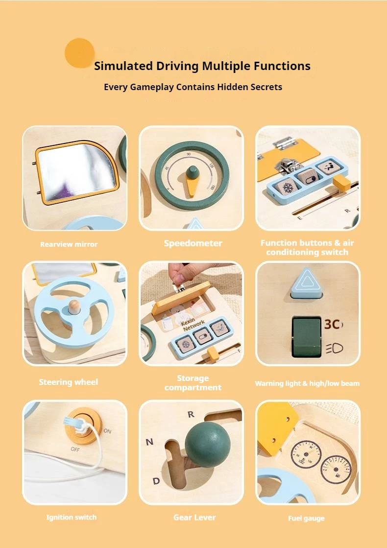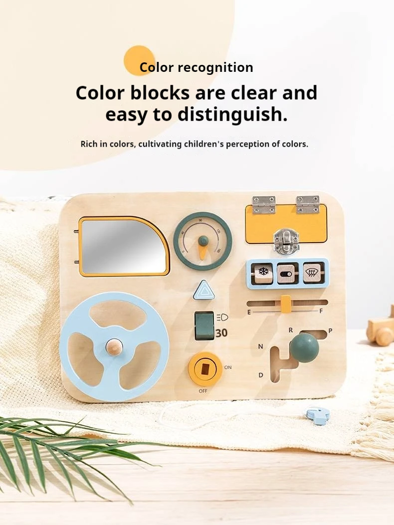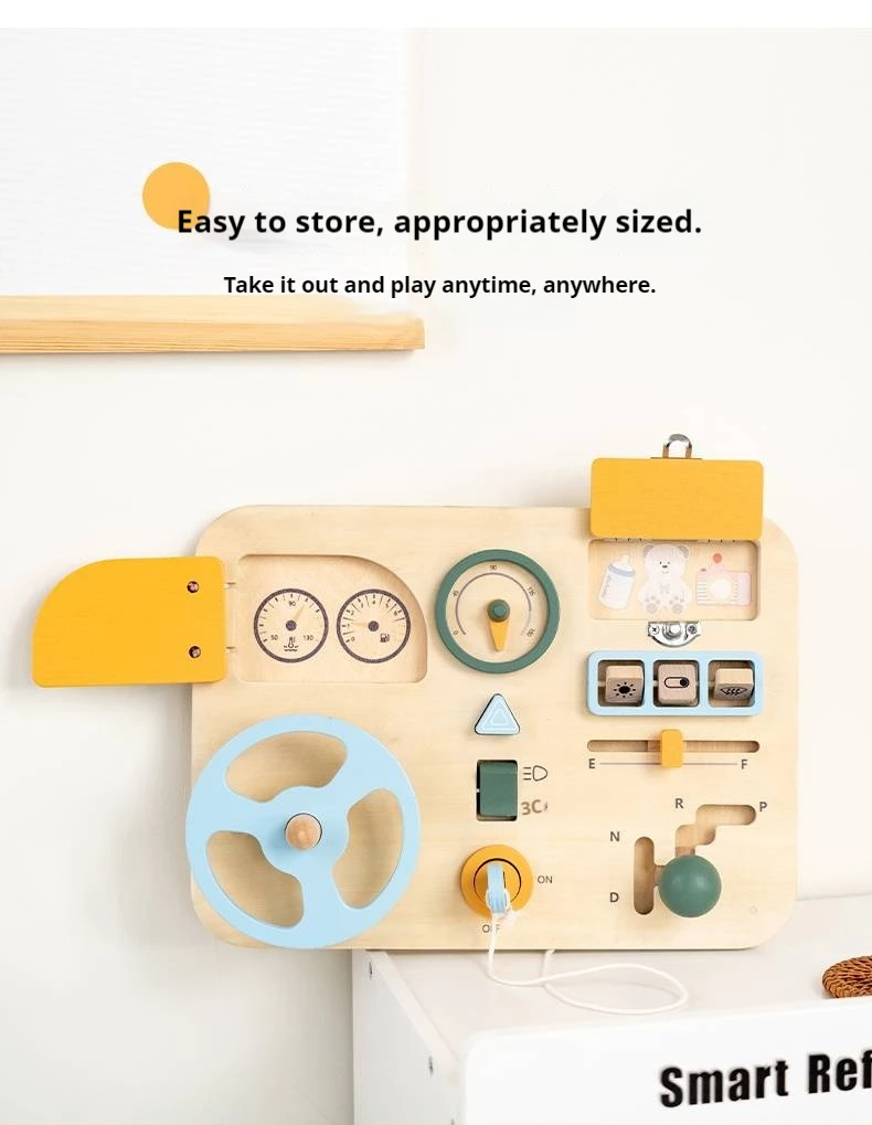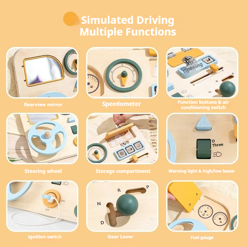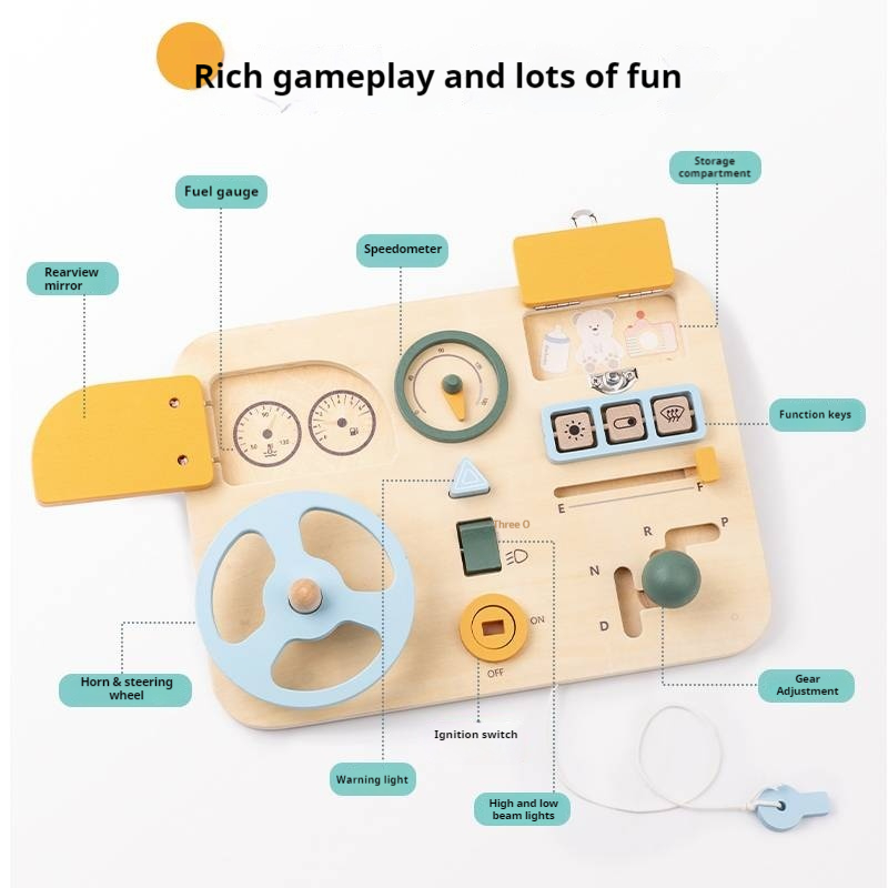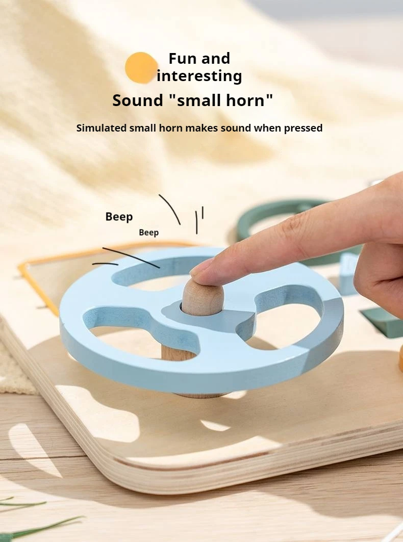 New Arrival Wooden Steering Wheel Sensory Busy Board Multifunctional Montessori Wooden Driving Steering Wheel Toy