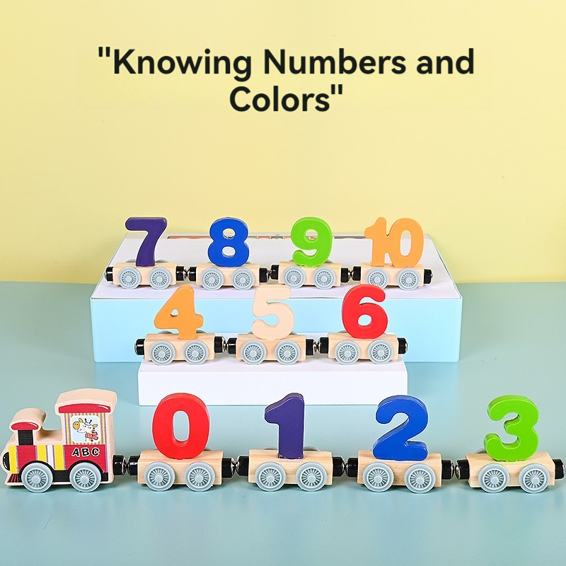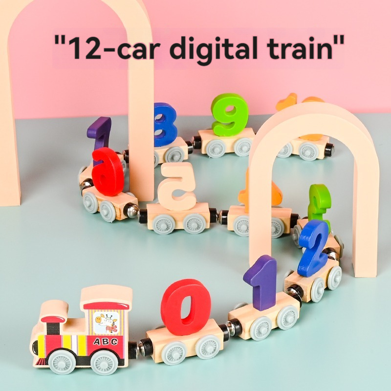 New Design Montessori Wooden 12 Section Digital Train Blocks Educational Cognitive Digital Toys