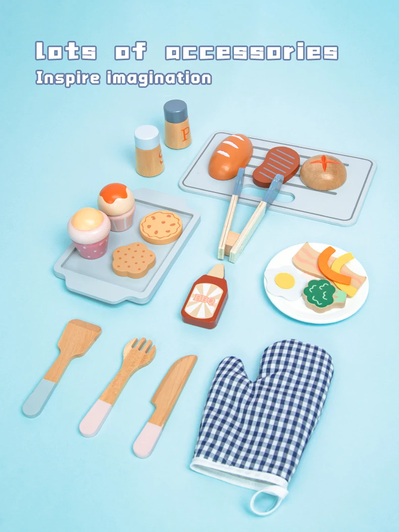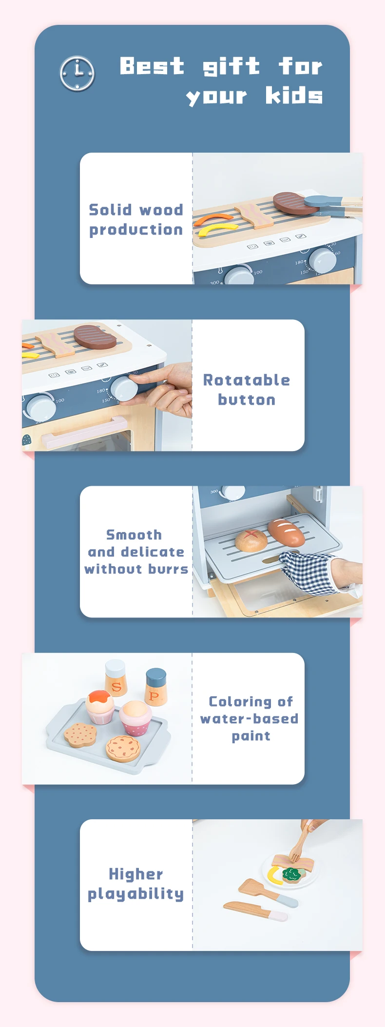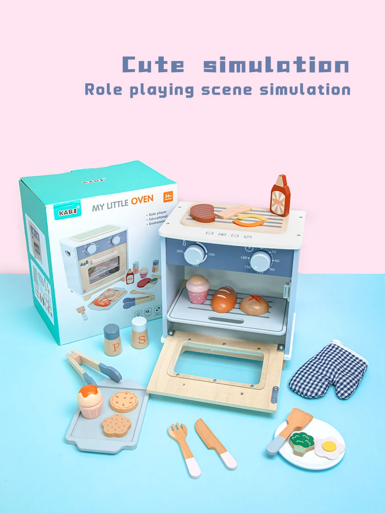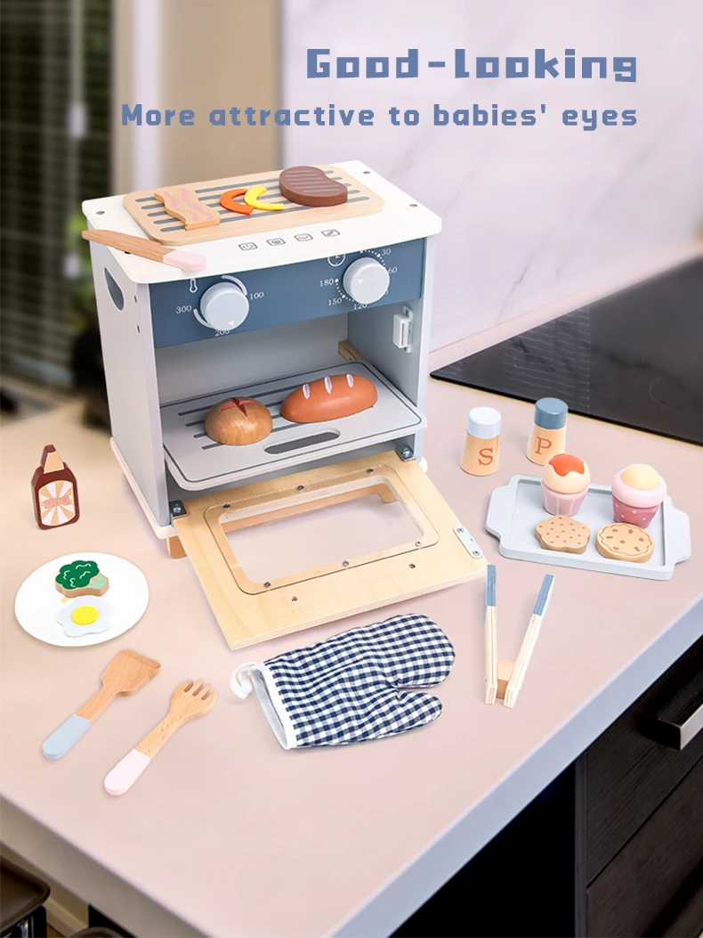 New Design Morandi Color Wooden Oven Toys Pretend Play Cooking Toy for Toddlers Educational Play House Set