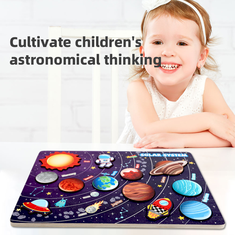New Montessori Other Educational Wooden Intellectual Space Learning Kids Solar System Eight Planets Recognition Board Puzzle Toy