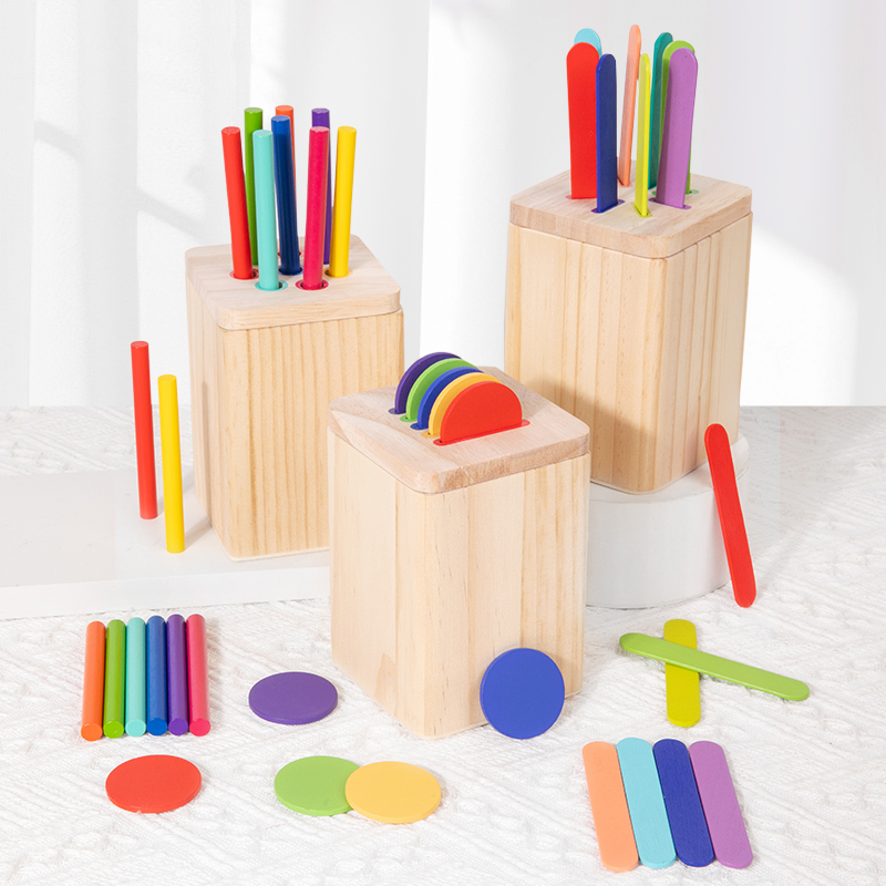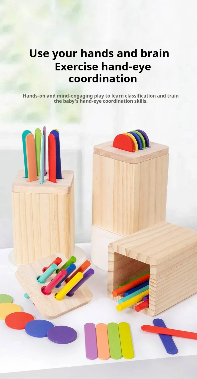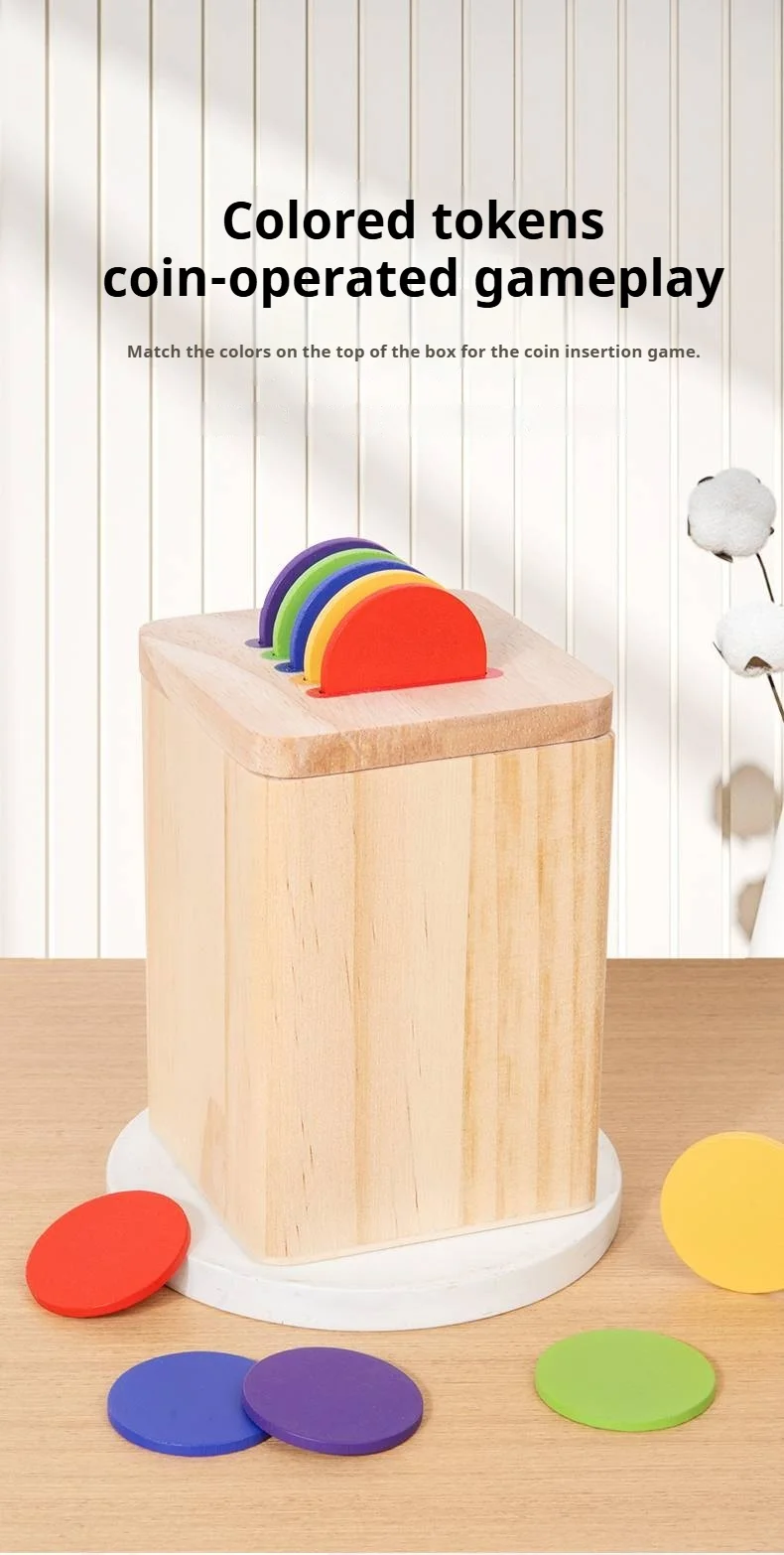 New Product Wooden Montessori Skills Color Shape Sorting Coin Box Geometric Matching Blocks Game Toy