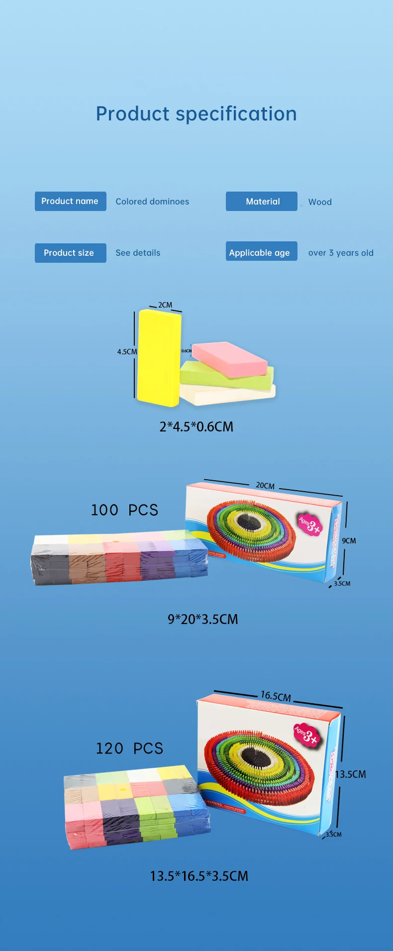 New Style Montessori Wooden Dominos Set 100/120pcs Kids Block Toy for Domino Game