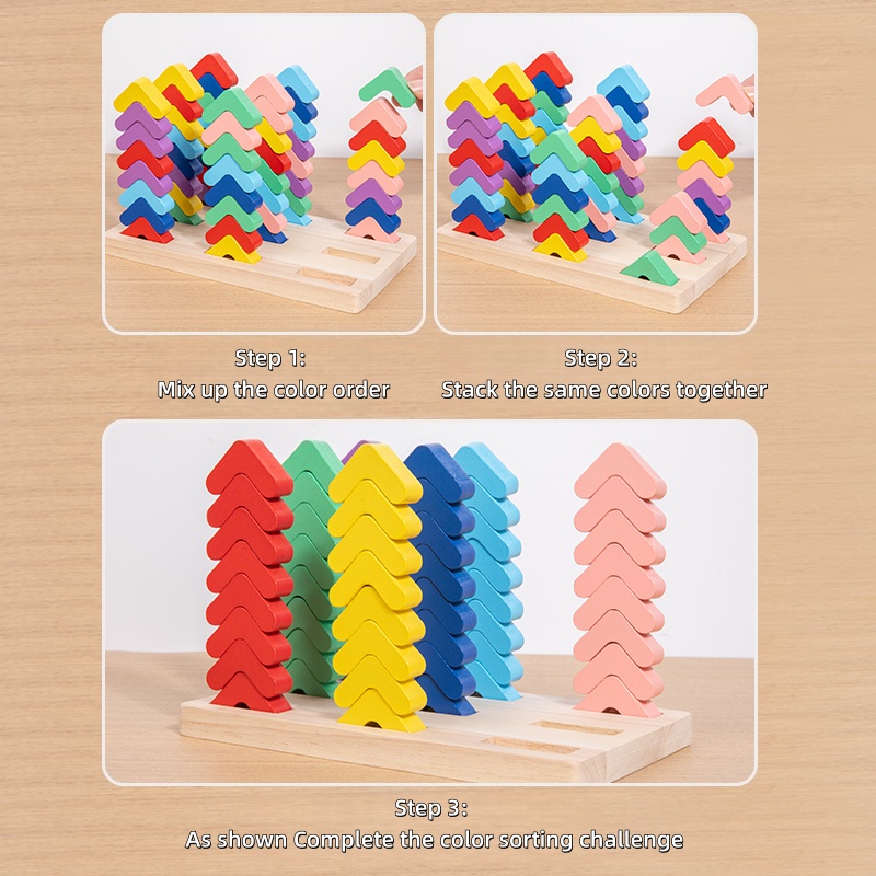 New Toddler Baby Toys 1-3 Years Learning Block Stacking Sets Color Sorting Back in Place Wooden Visual Sensory Toys for Kids
