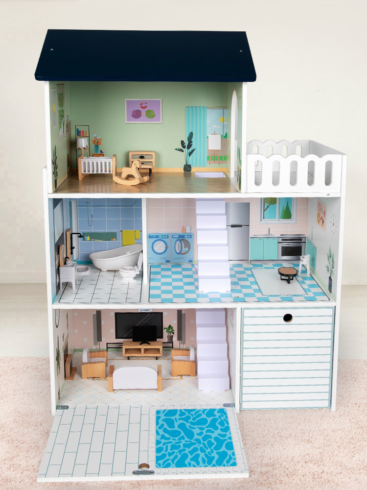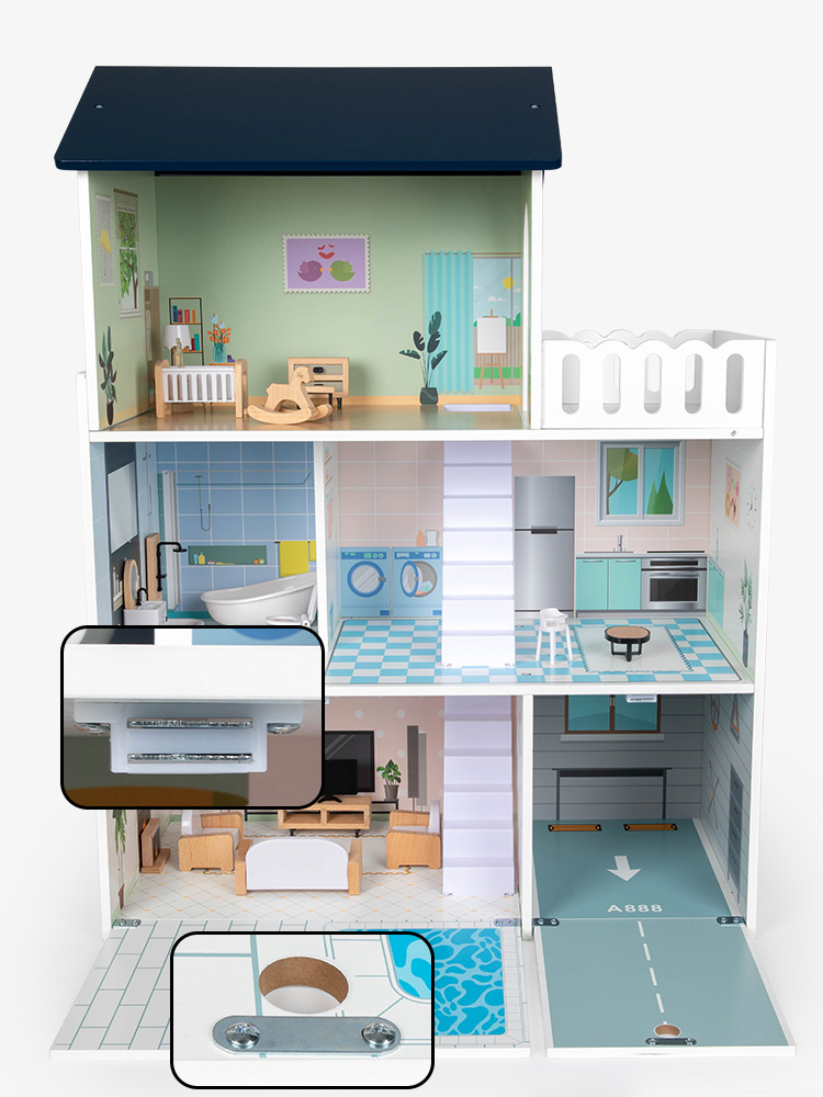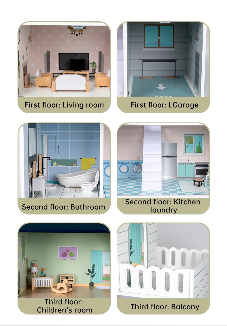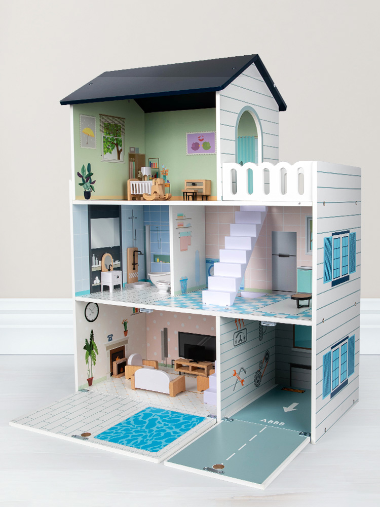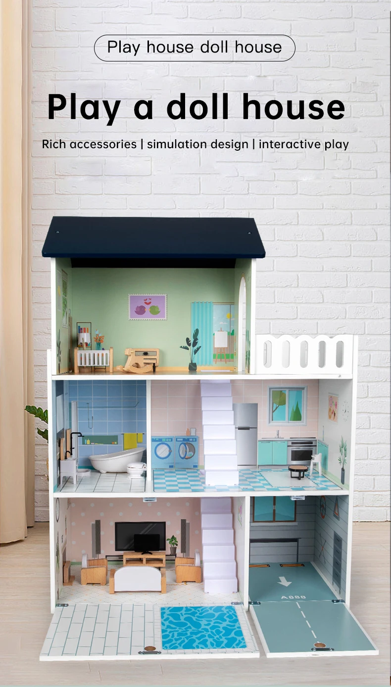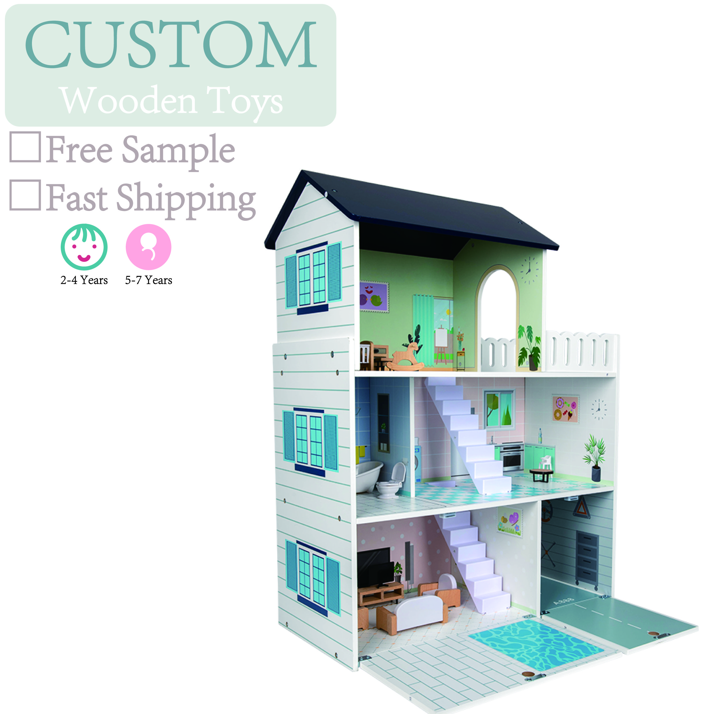 New Trend Product Large Doll House Kit Toys Pretend Play Wooden Dream Baby Doll House Furniture Toy for Kids Girls