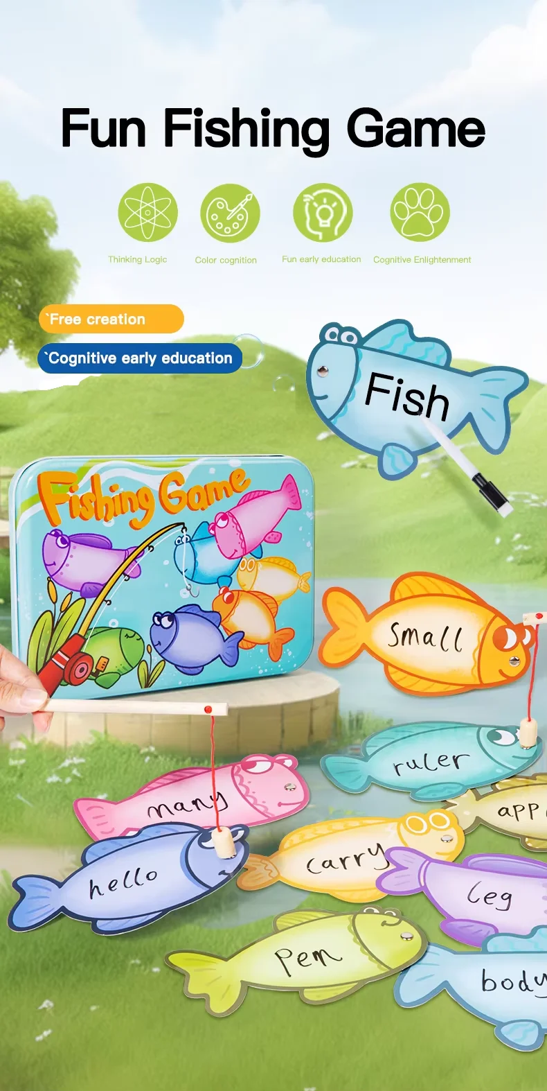 New Trend Product Portable Fishing Game With English Alphabet Cognitive Early Educational Toys for Kids