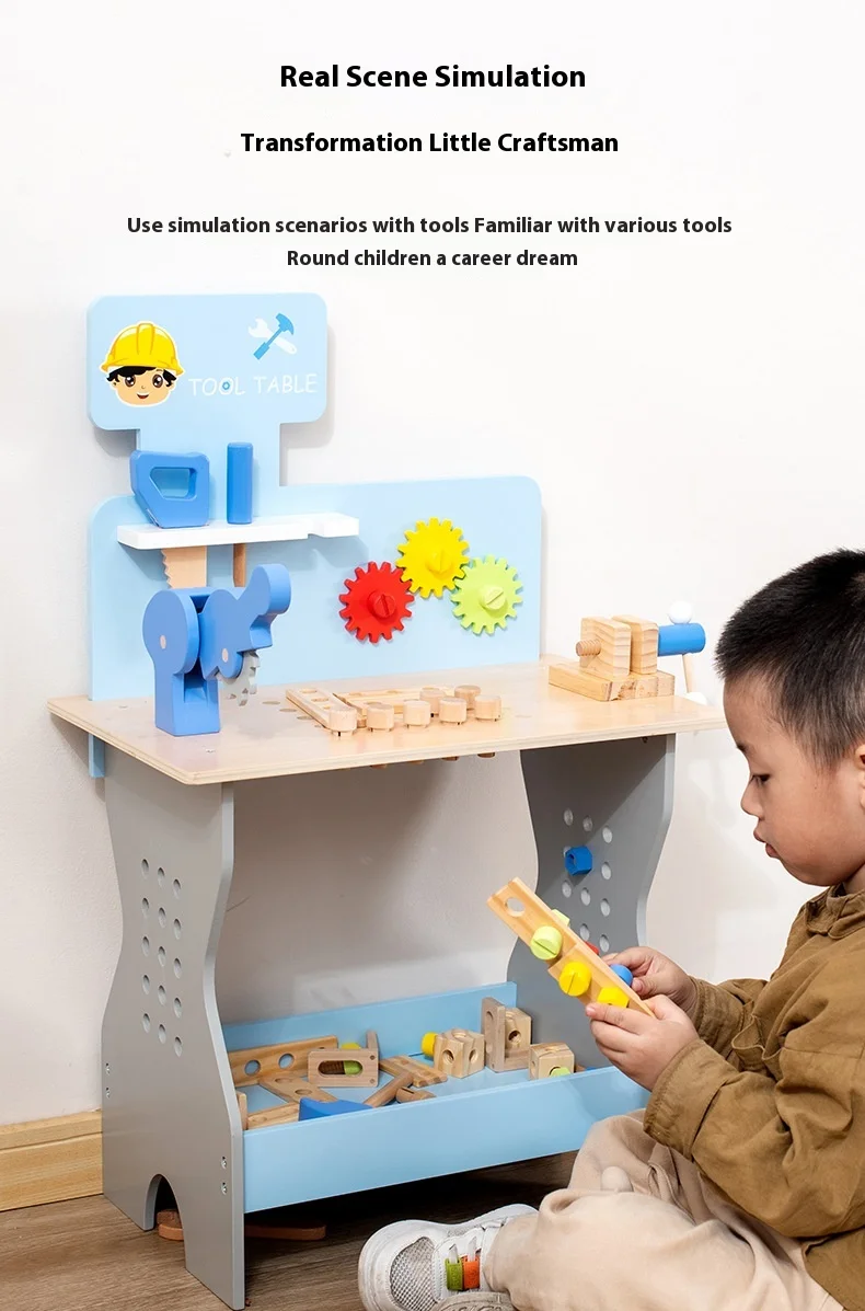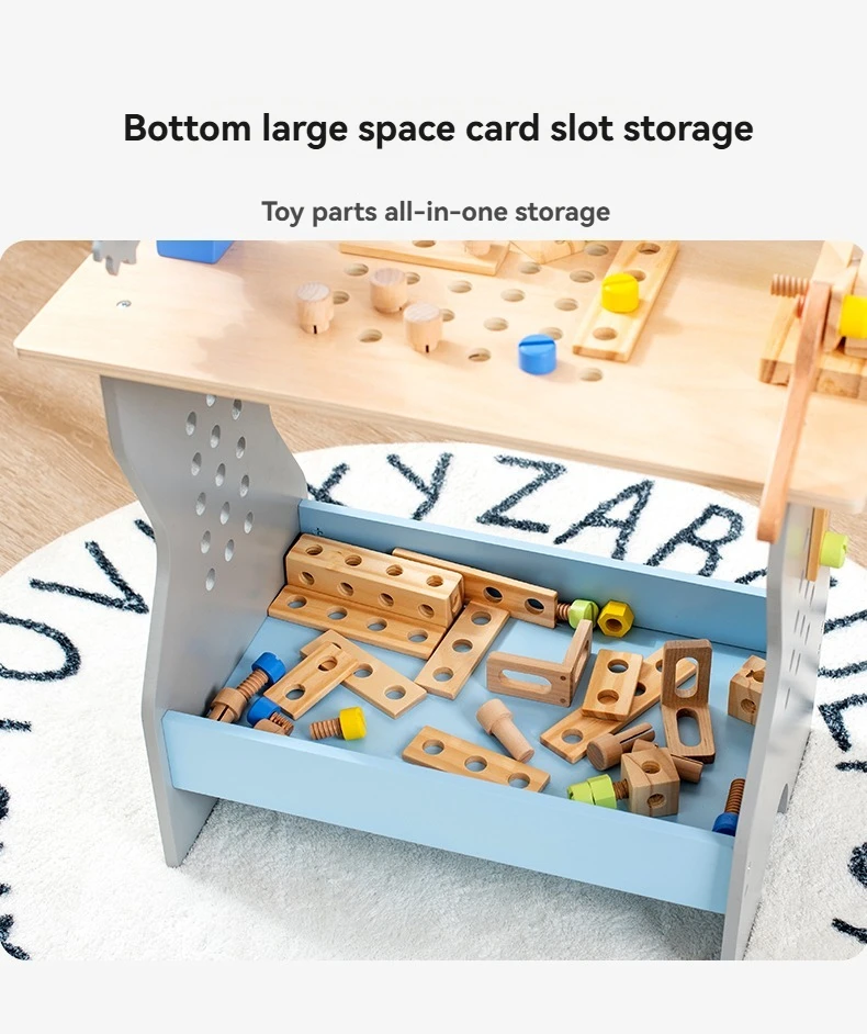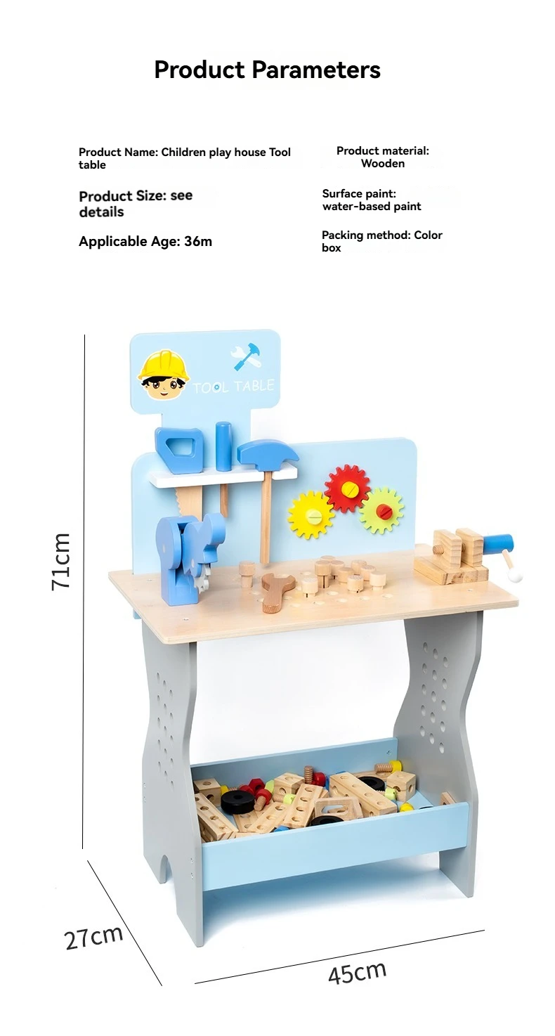 New Wooden Blue Nut Repair Tool Table Toy Unisex Kids Play House Disassembly Assembly Suit for 5-7 Years Pretend Play Preschool