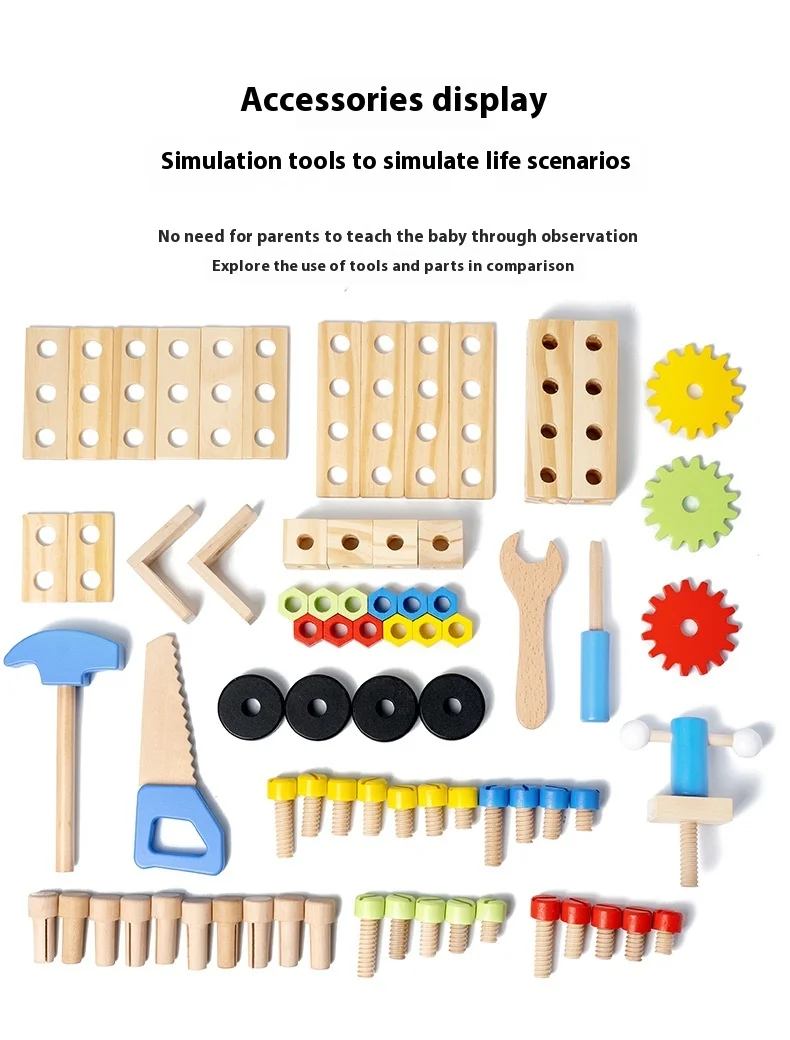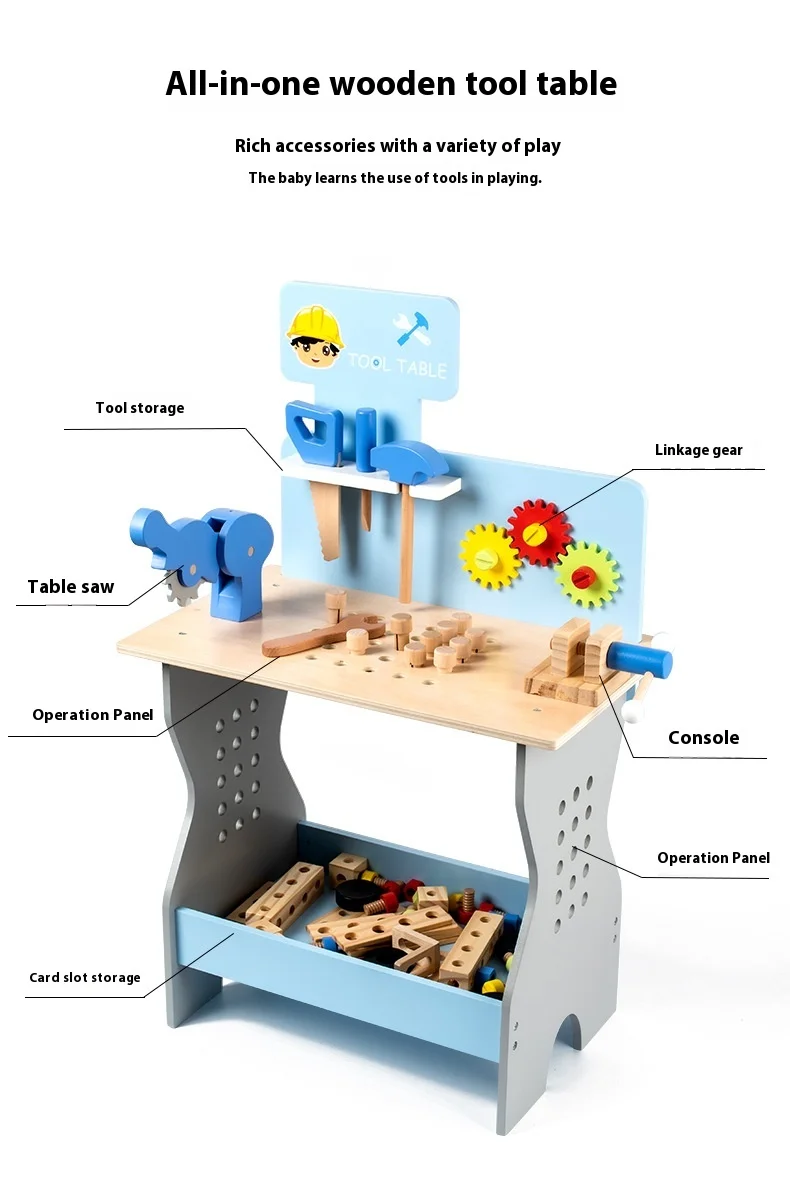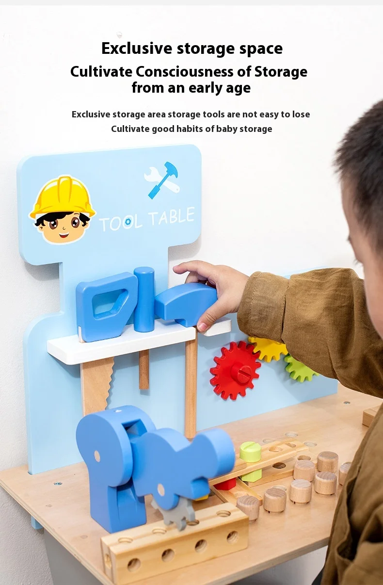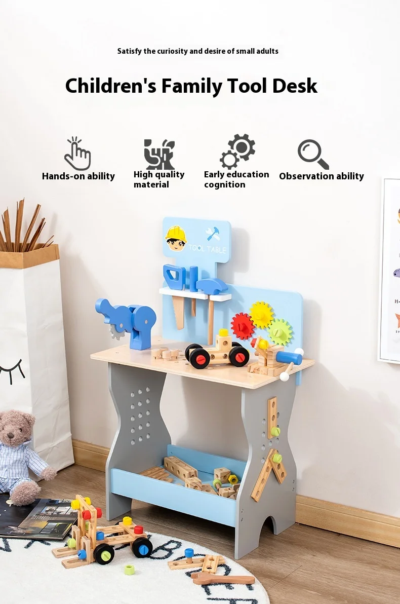 New Wooden Blue Nut Repair Tool Table Toy Unisex Kids Play House Disassembly Assembly Suit for 5-7 Years Pretend Play Preschool