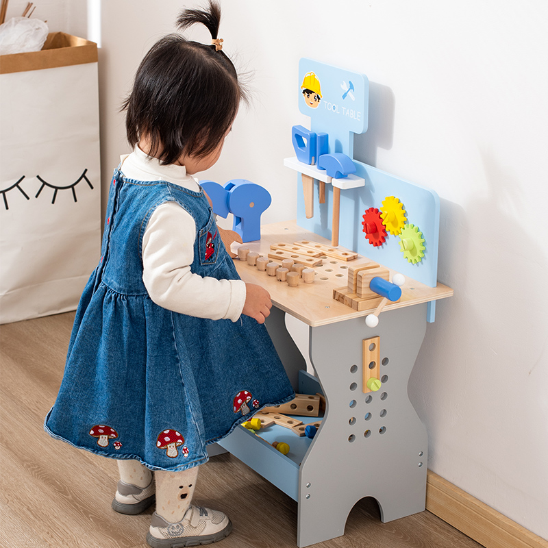 New Wooden Blue Nut Repair Tool Table Toy Unisex Kids Play House Disassembly Assembly Suit for 5-7 Years Pretend Play Preschool