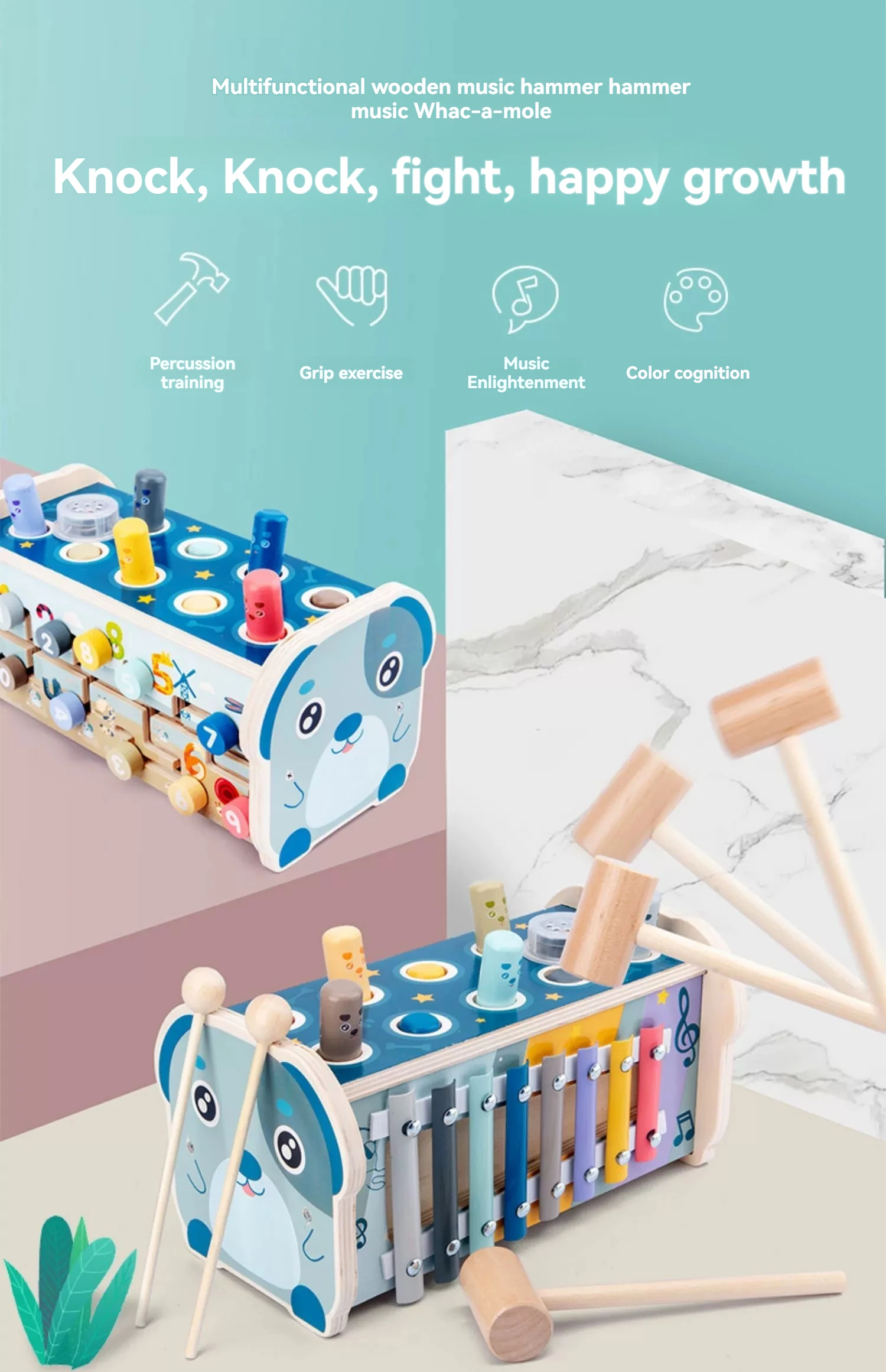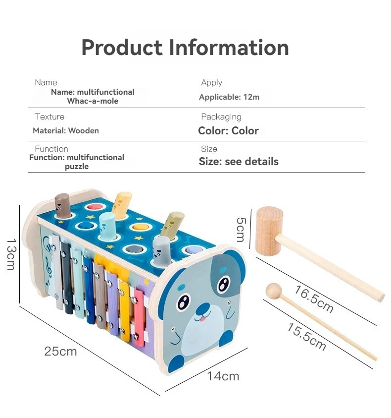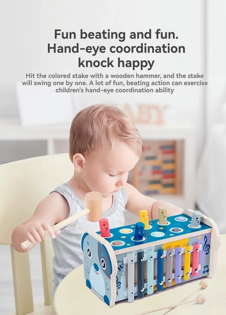 ODM OEM Hot Selling Wholesale Multifunctional Wooden Montessori Musical Instrument Dog Toy Music Knock Piano Game