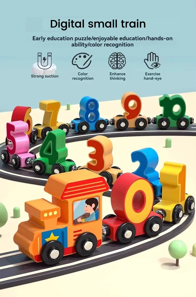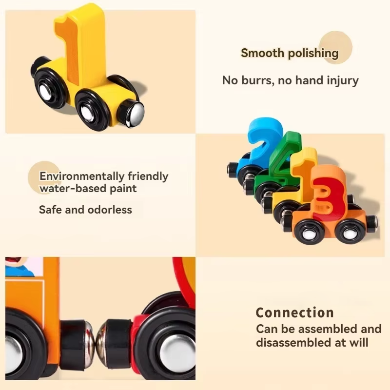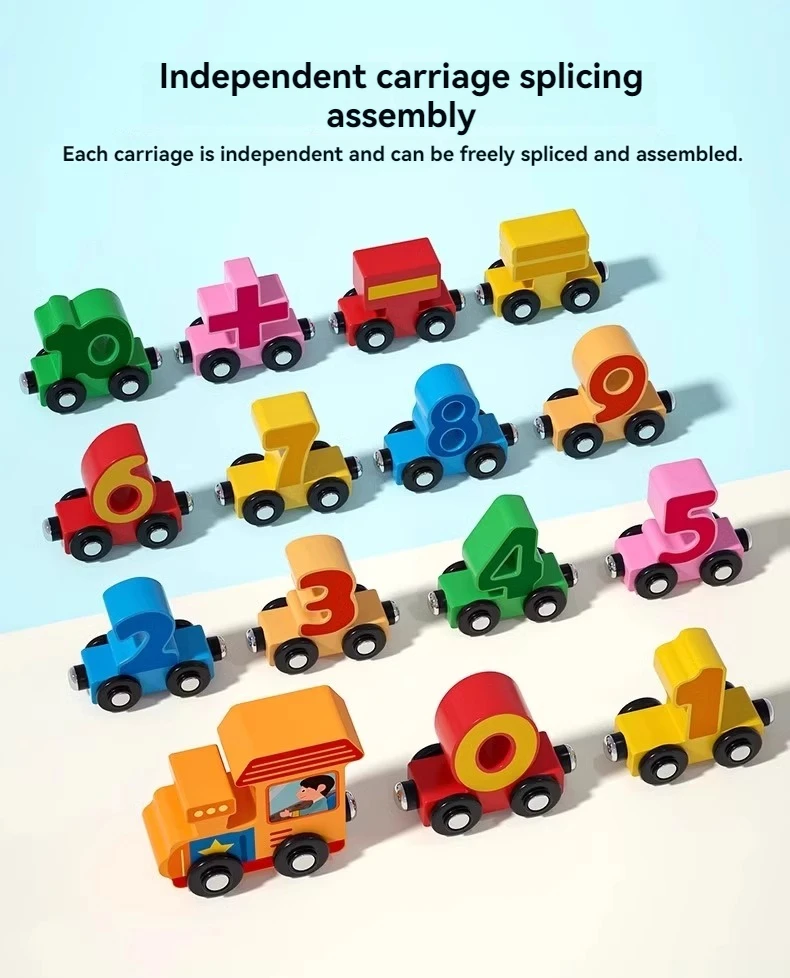 OEM ODM New Montessori Wooden 12 Segment Digital Building Block Train Education Cognitive Digital Toy