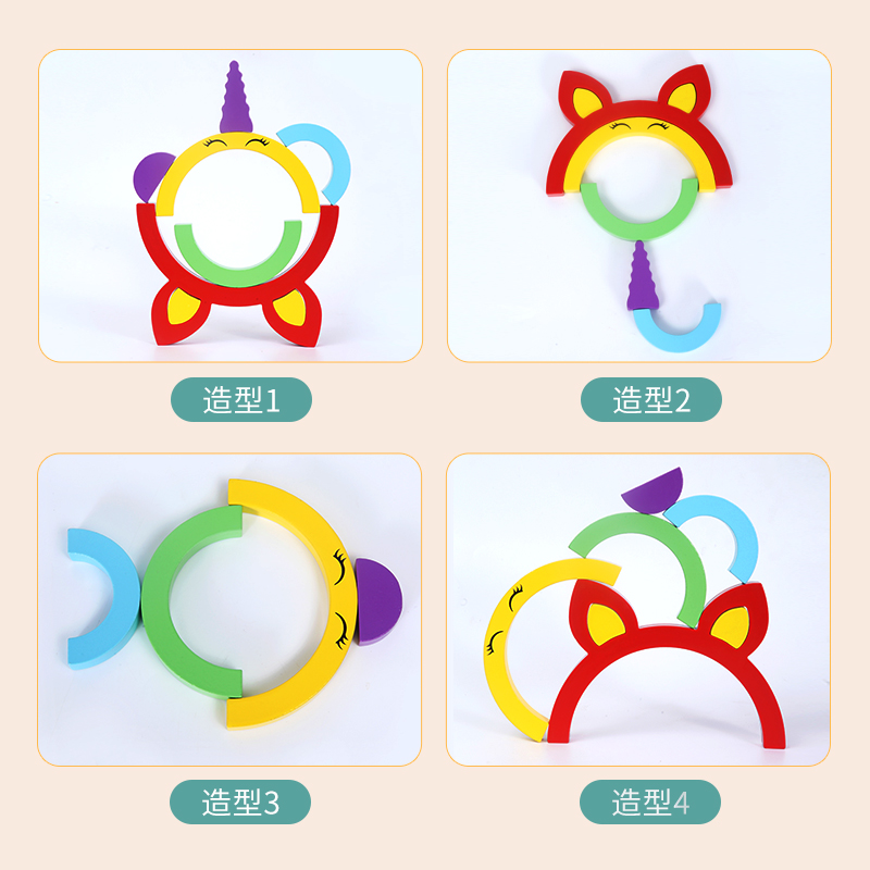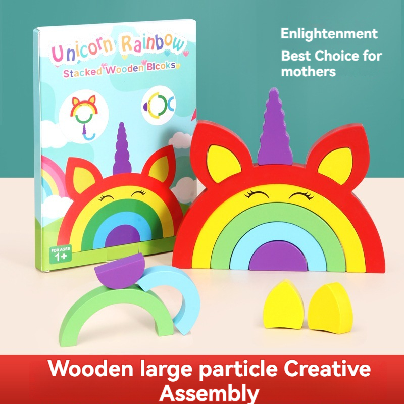 OEM ODM Wooden Toys Unicorn Rainbow Building Blocks Stacking Toy Creative Jigsaw Puzzle Build Early Education