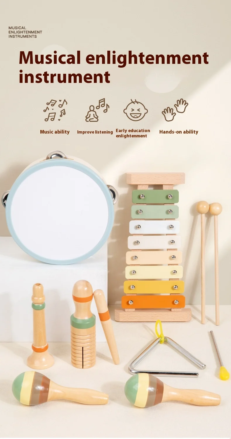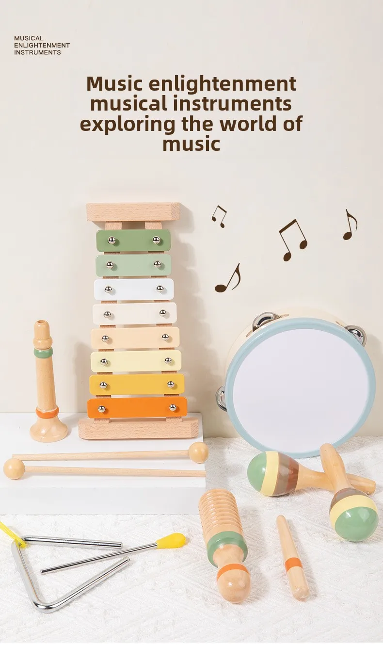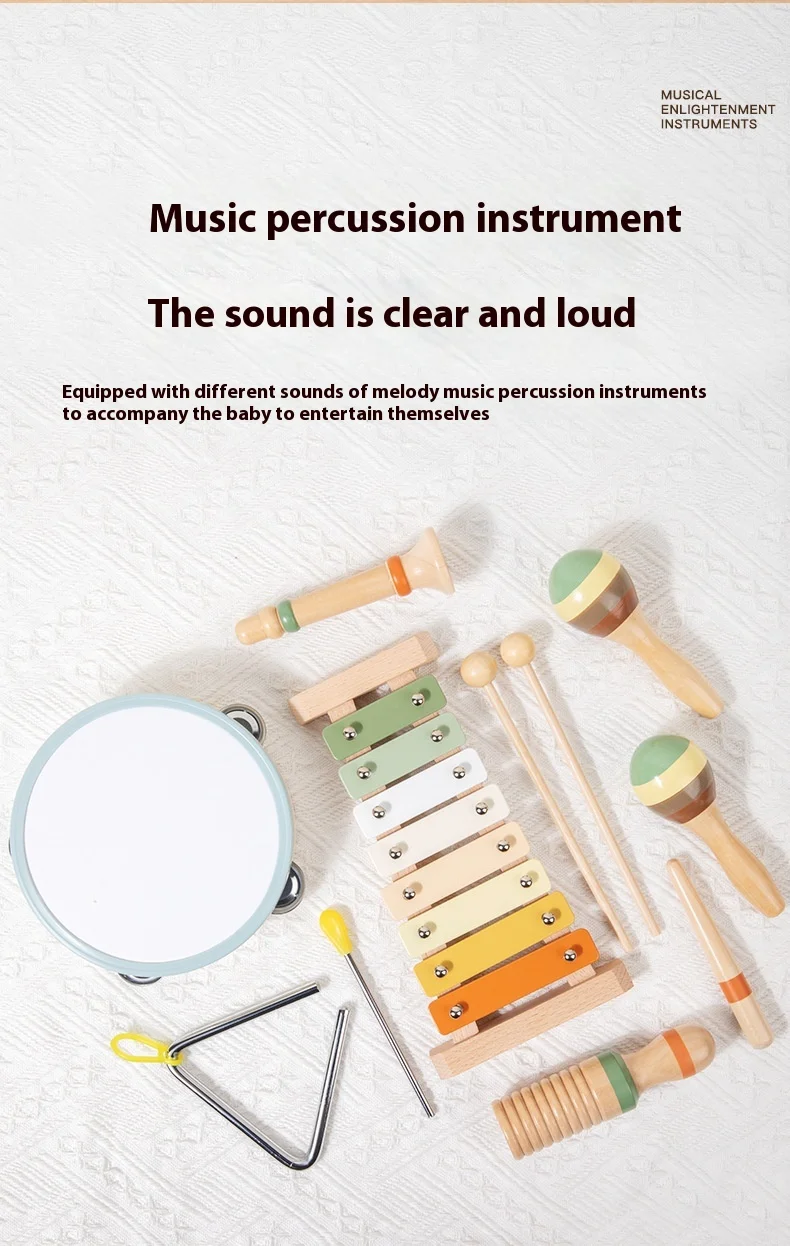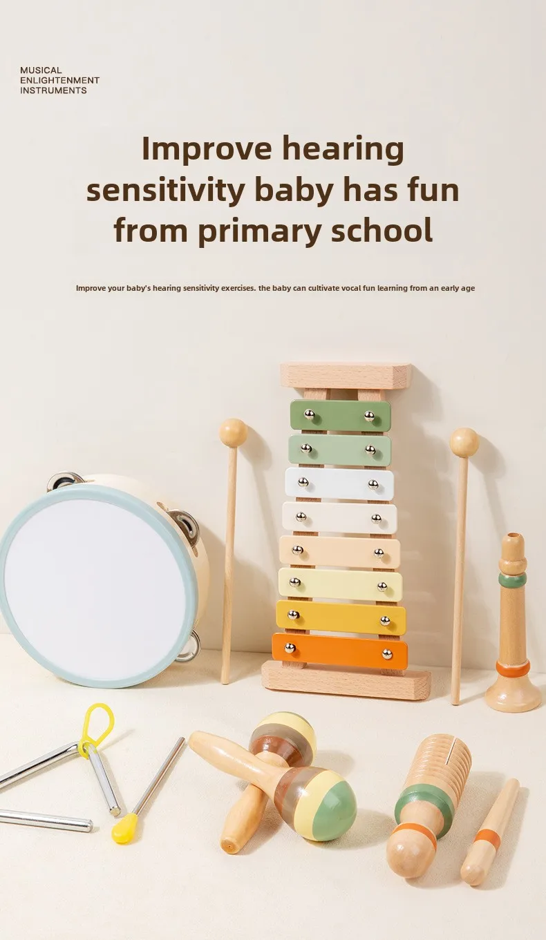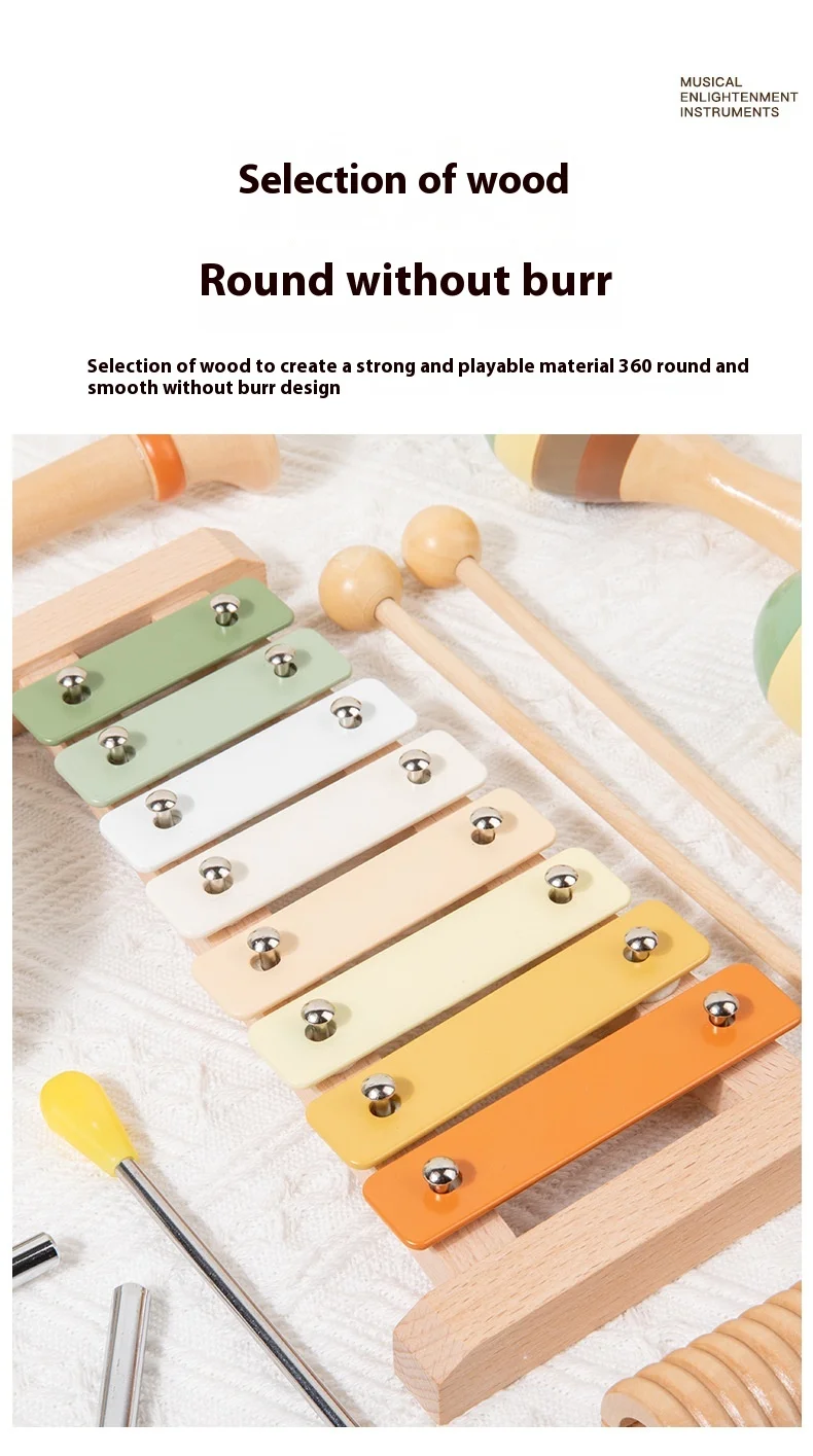 Orff Kids Educational Beech Wood Percussion Instrument Set Sand Hammer Piano Soundboard Early Education Wooden Music Toy