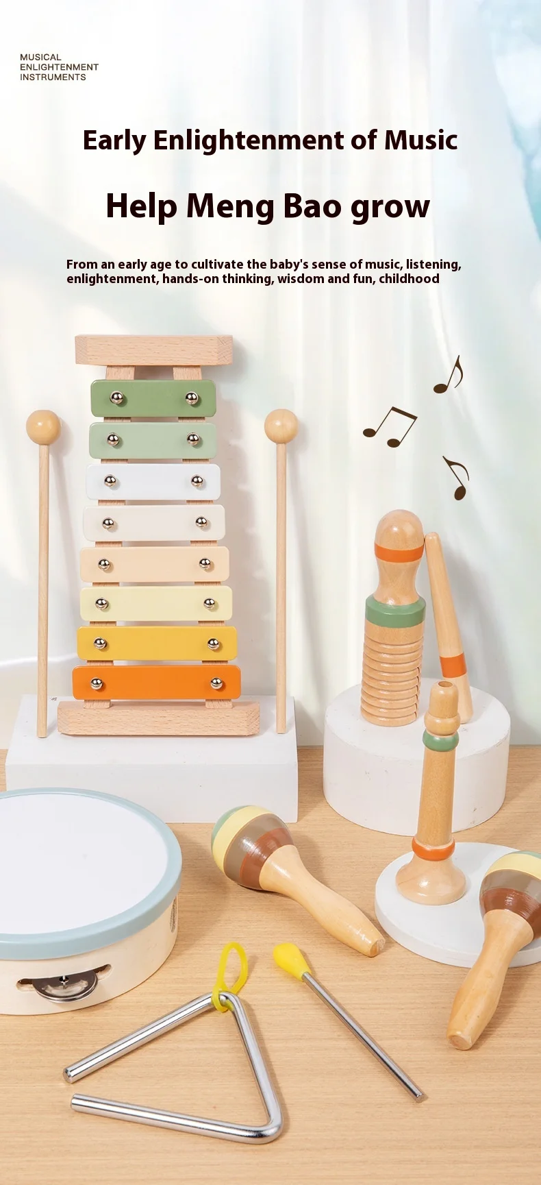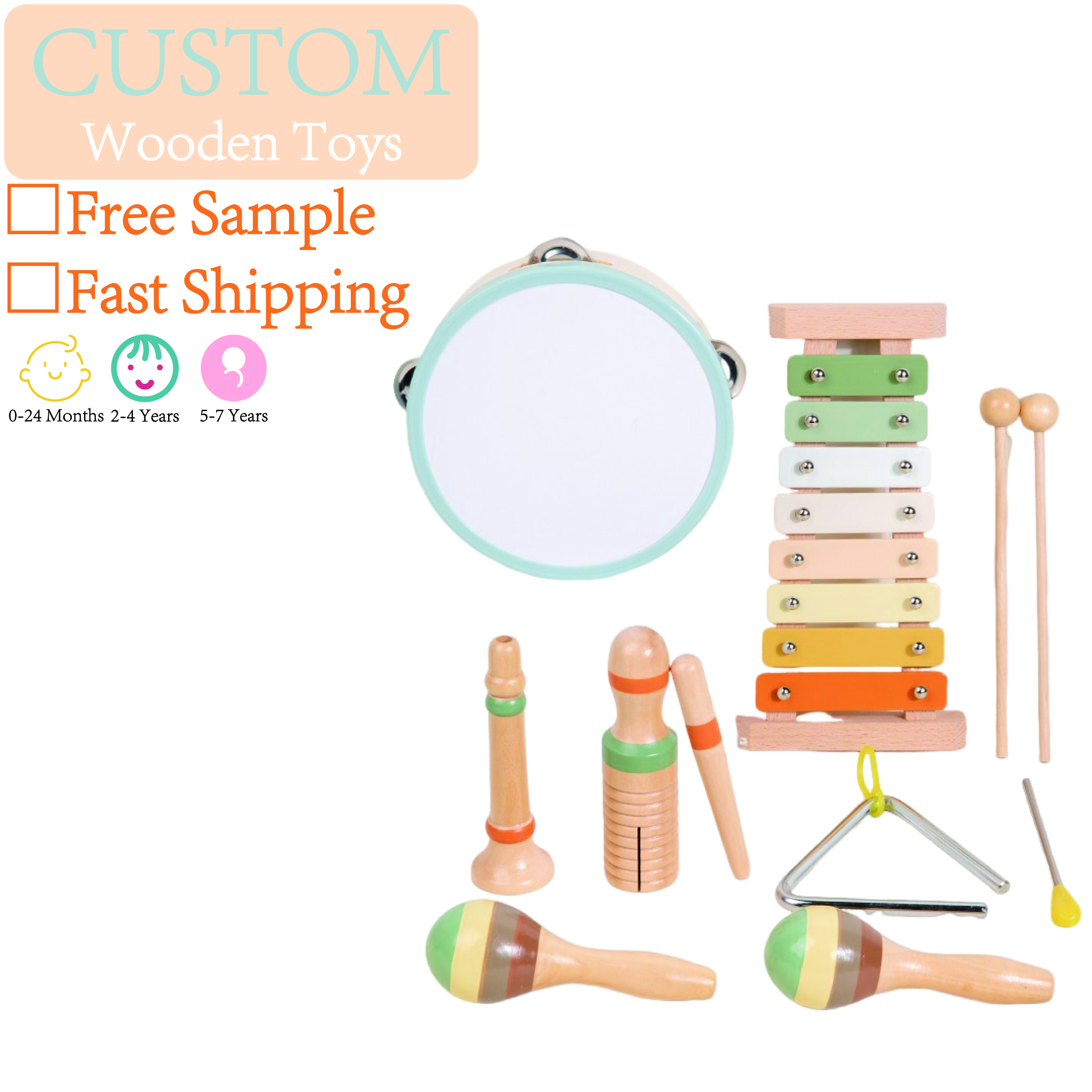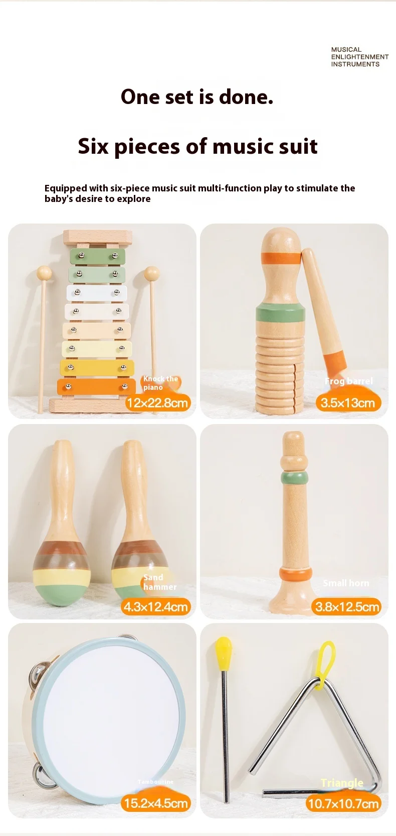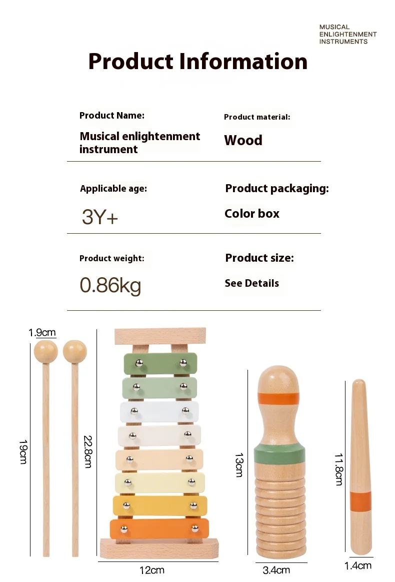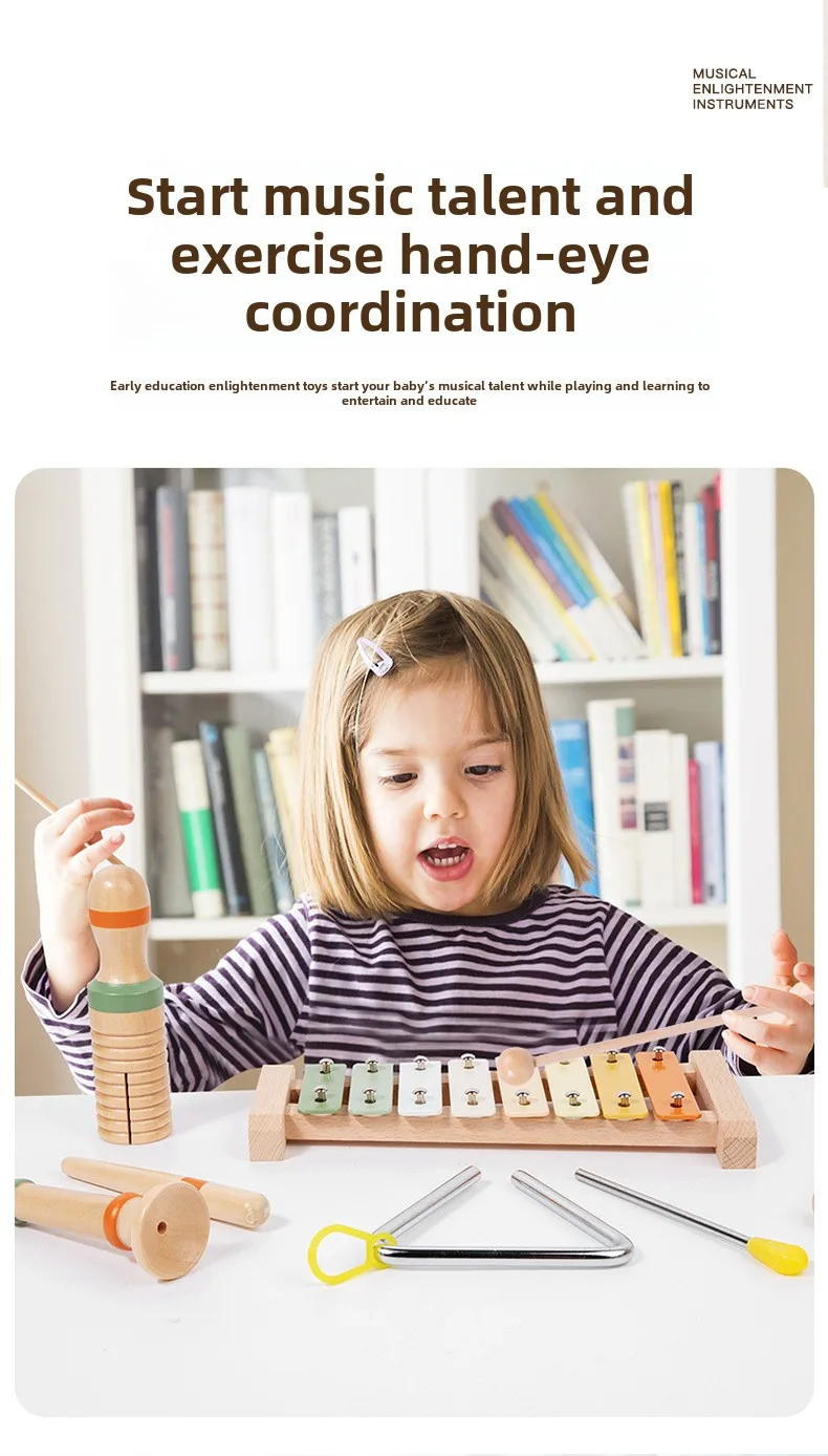 Orff Kids Educational Beech Wood Percussion Instrument Set Sand Hammer Piano Soundboard Early Education Wooden Music Toy