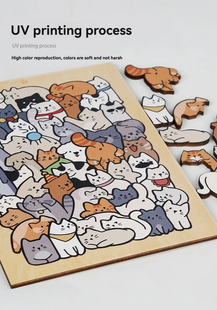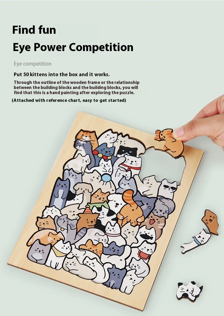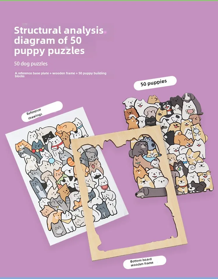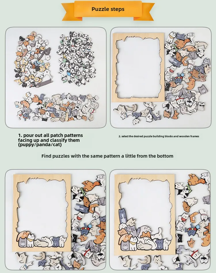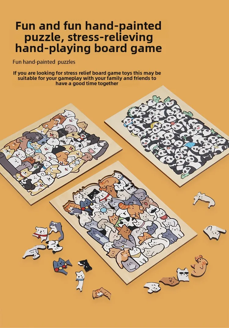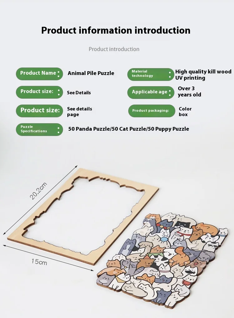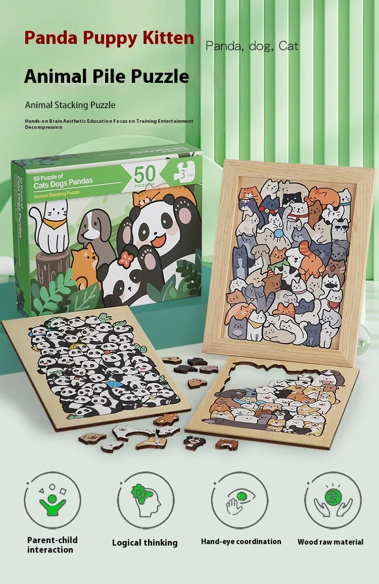 Panda Puppy Kitten Three in One Wooden Puzzles Educational Unisex Children’s Animal Stacking Special Shaped Puzzles