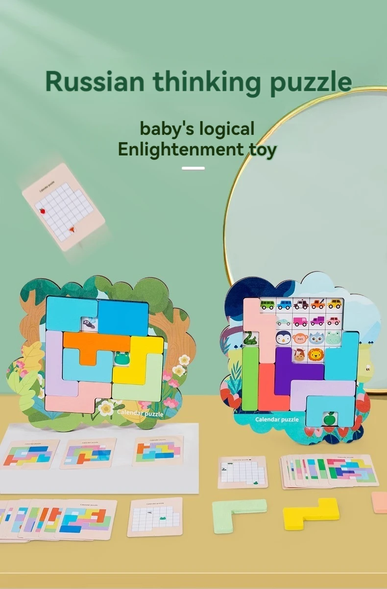 Popular 3D Russian Blocks High Quality Wooden Blocks Puzzle Shape Matching Toy