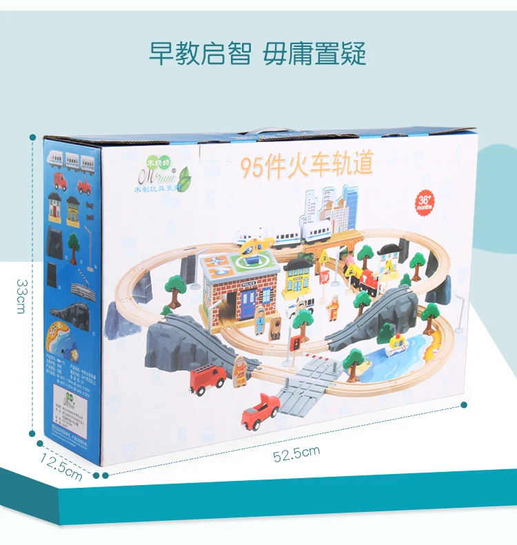 Premium 95-Piece Beech Wooden Train Set Unisex Railway Construction Wooden Puzzle Educational Toys