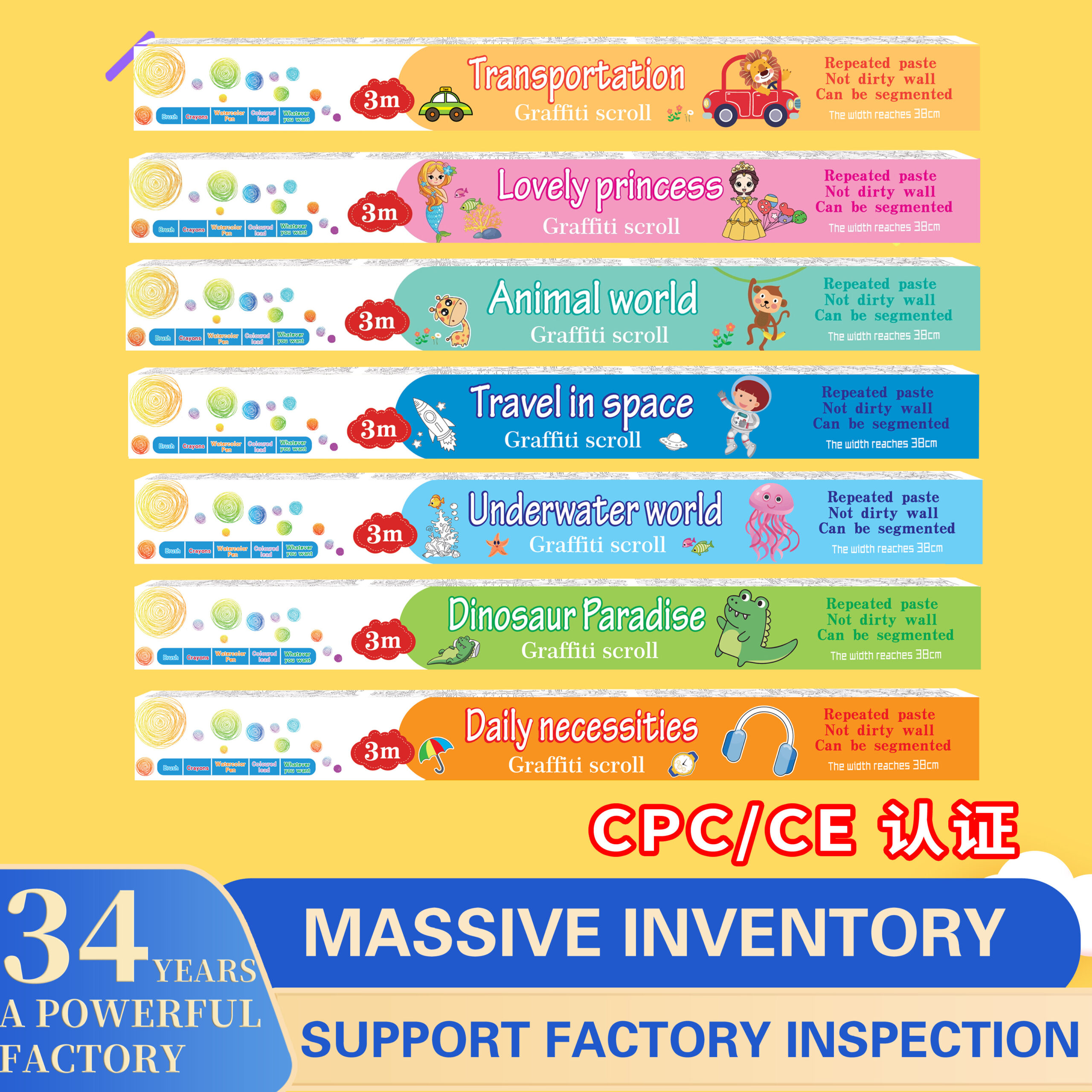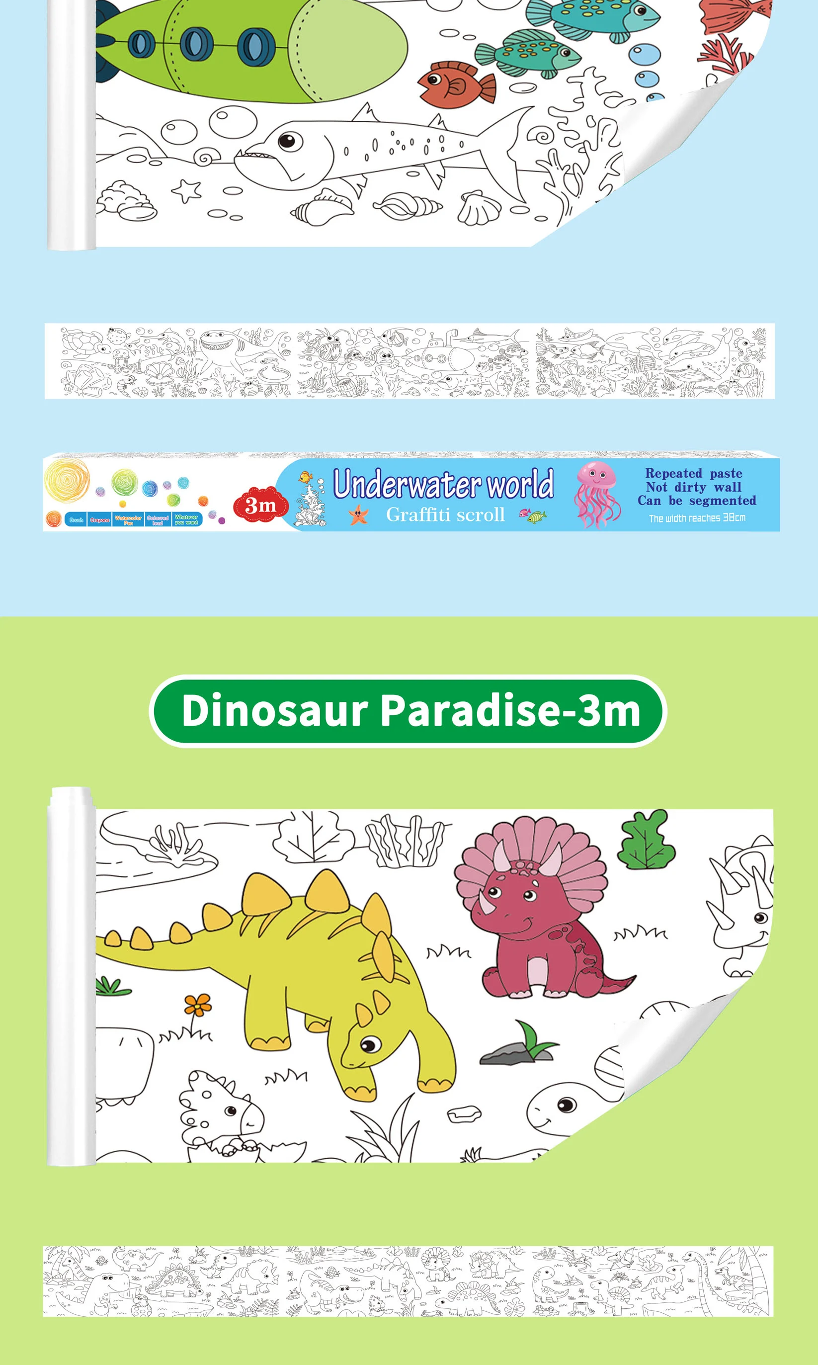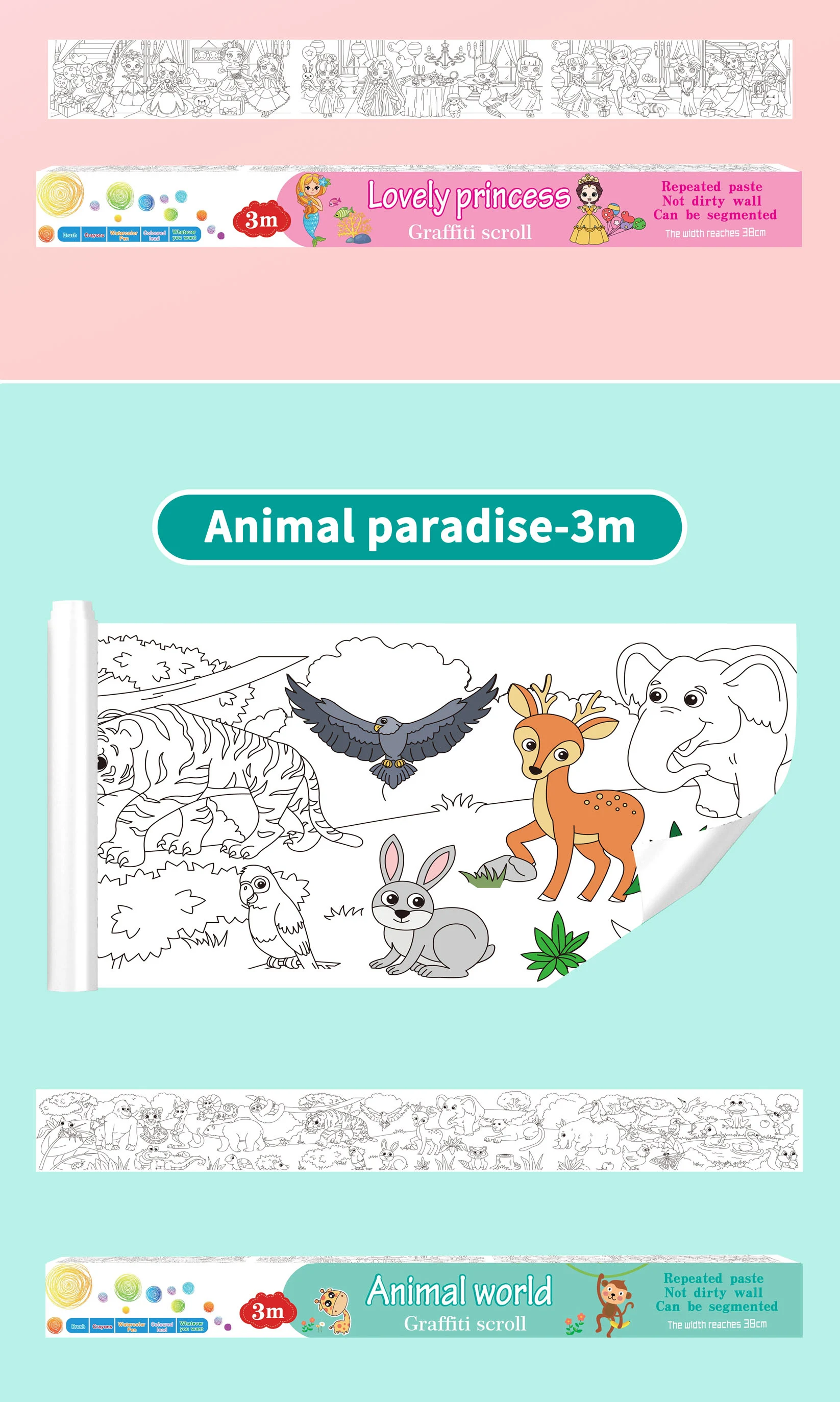 Safe Material Kids Entertainment Toys Diy Graffiti Sticker Wallpaper Easy to Paste Picture Scroll 7 Cartoon Themes