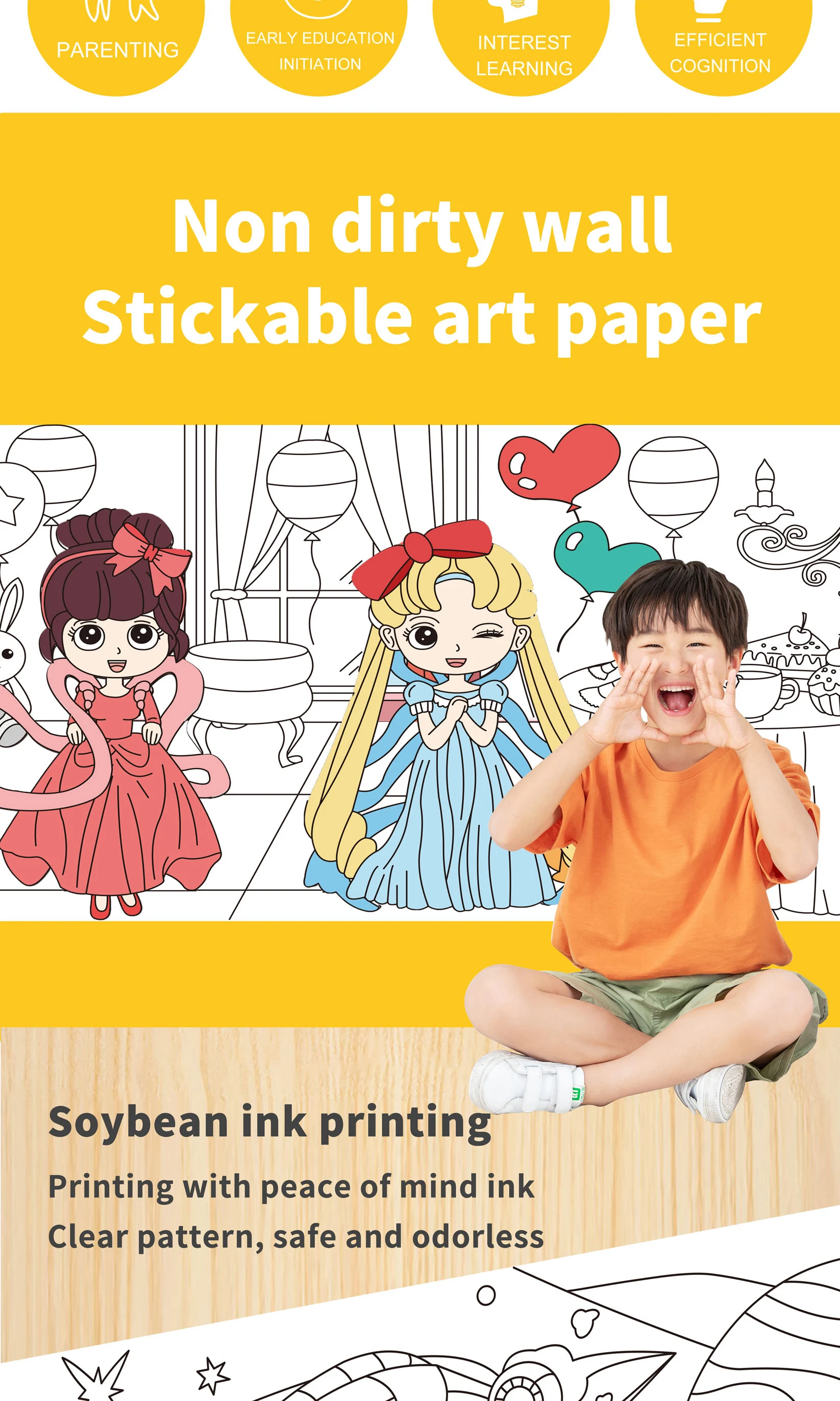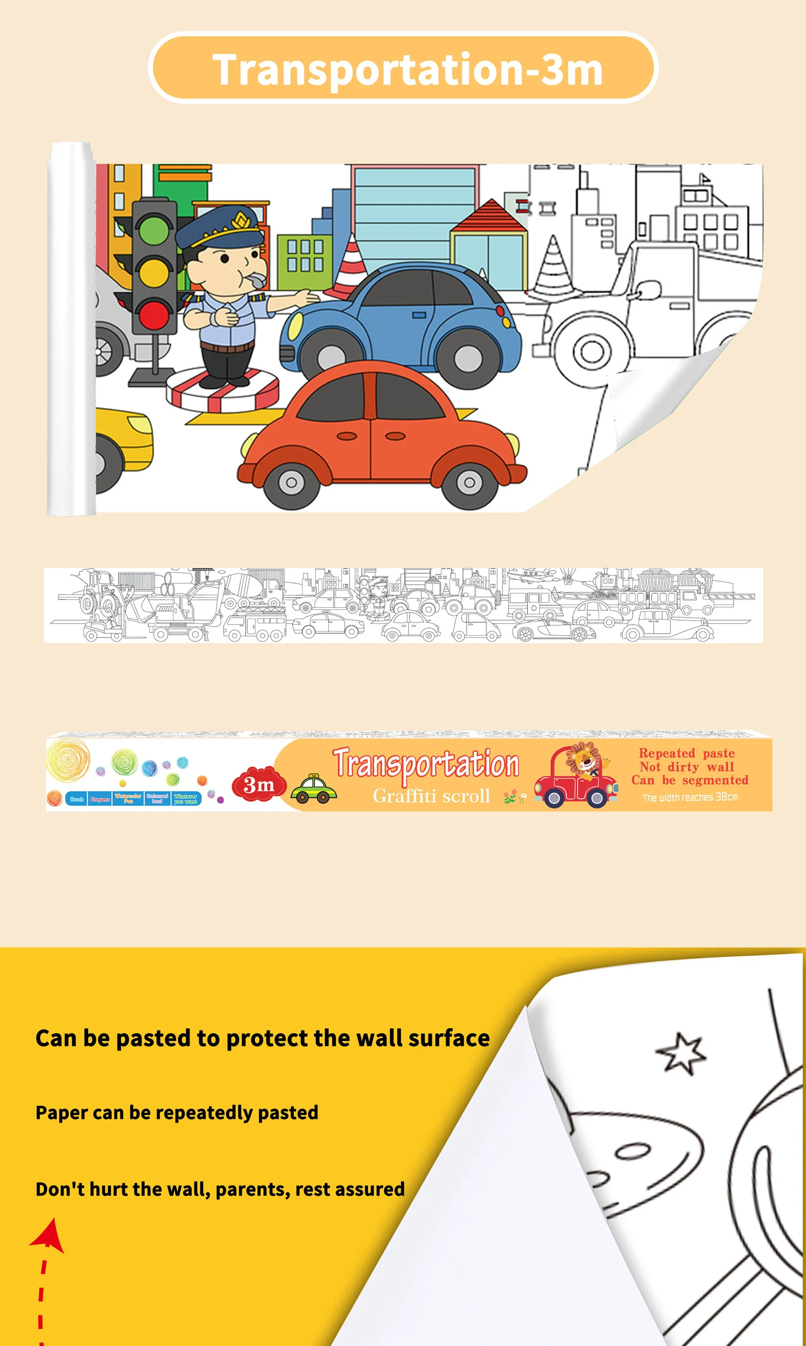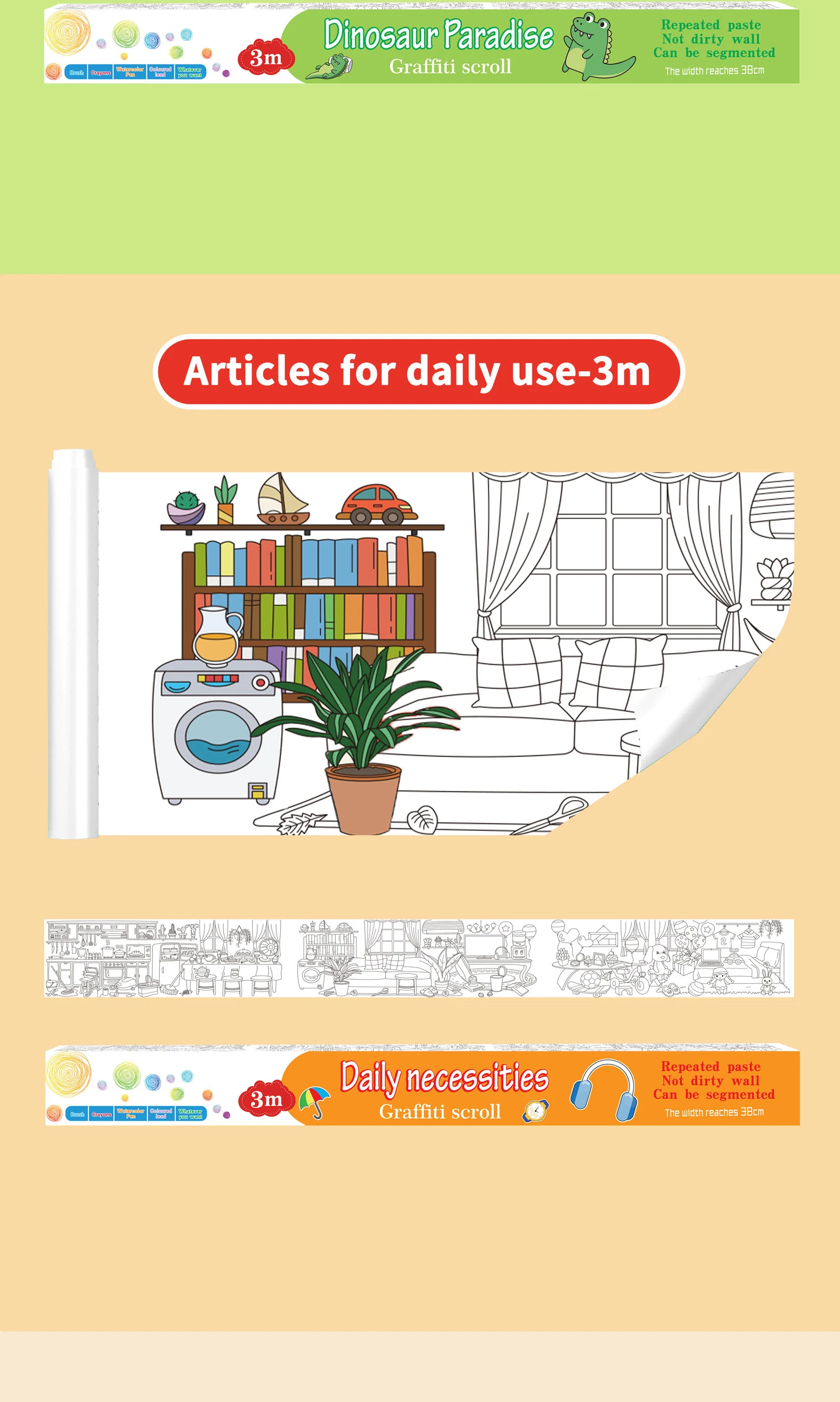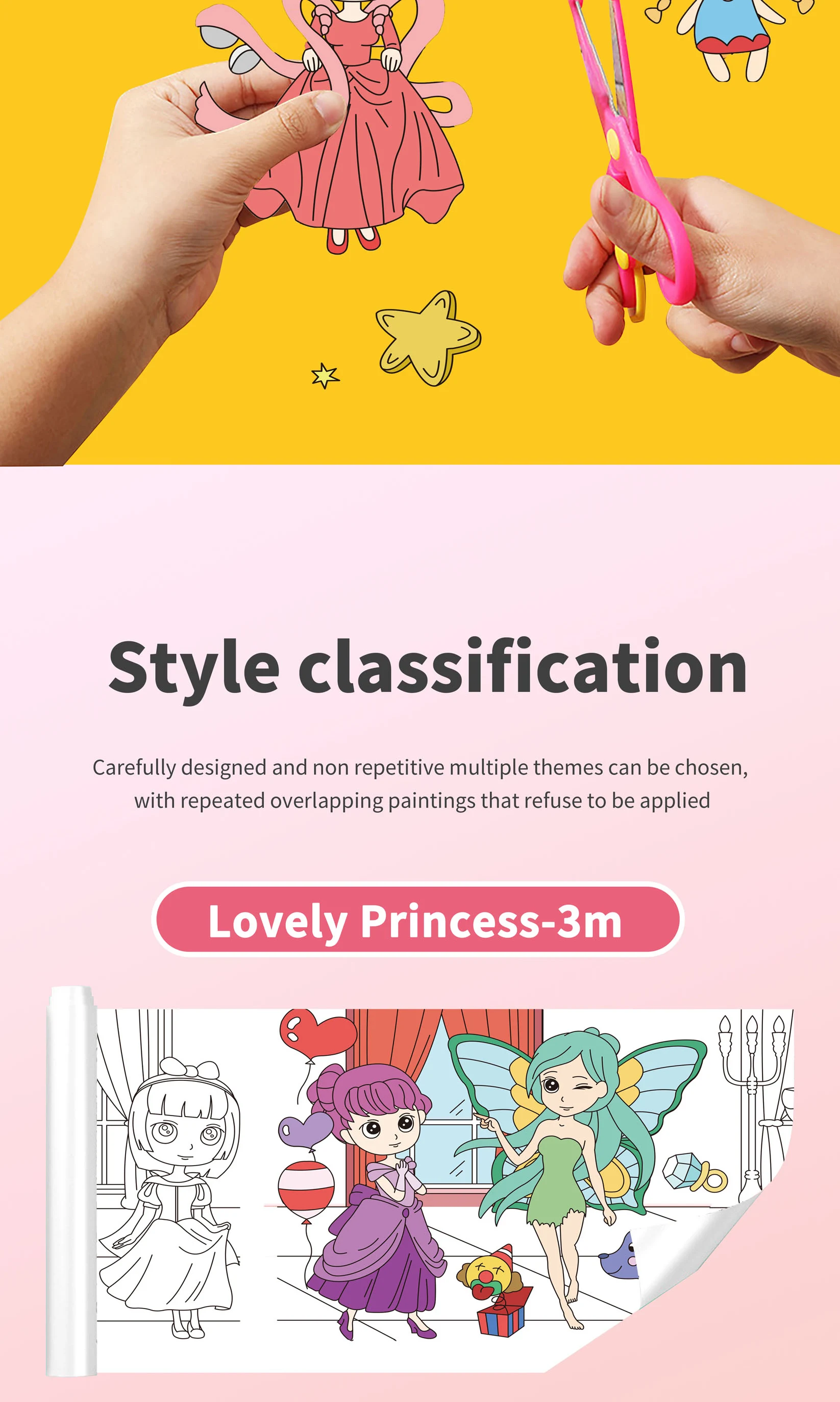 Safe Material Kids Entertainment Toys Diy Graffiti Sticker Wallpaper Easy to Paste Picture Scroll 7 Cartoon Themes