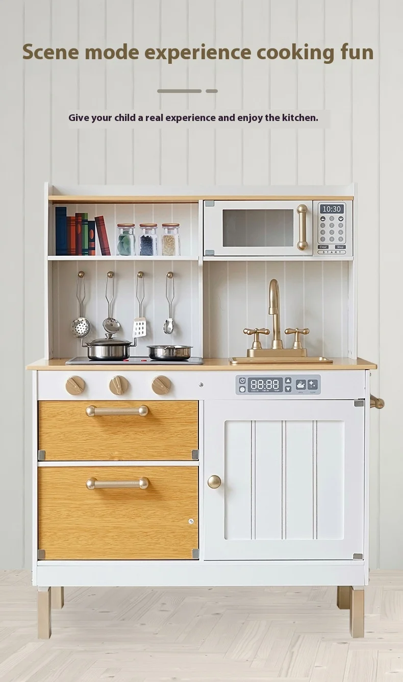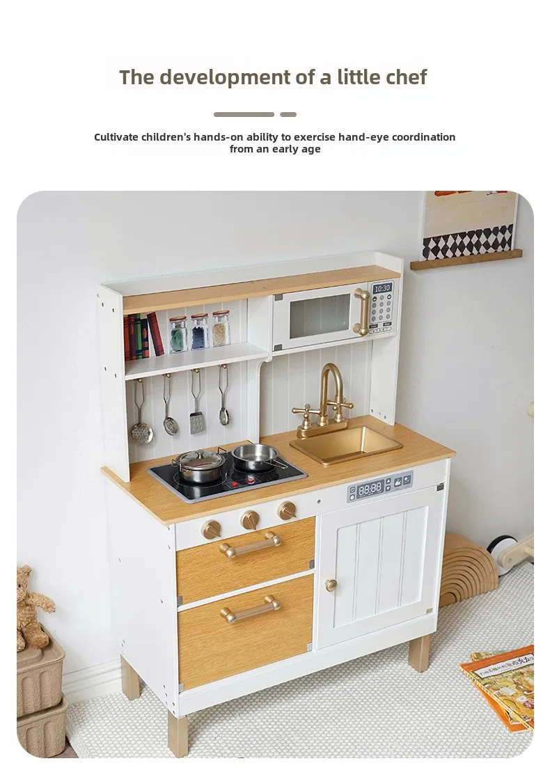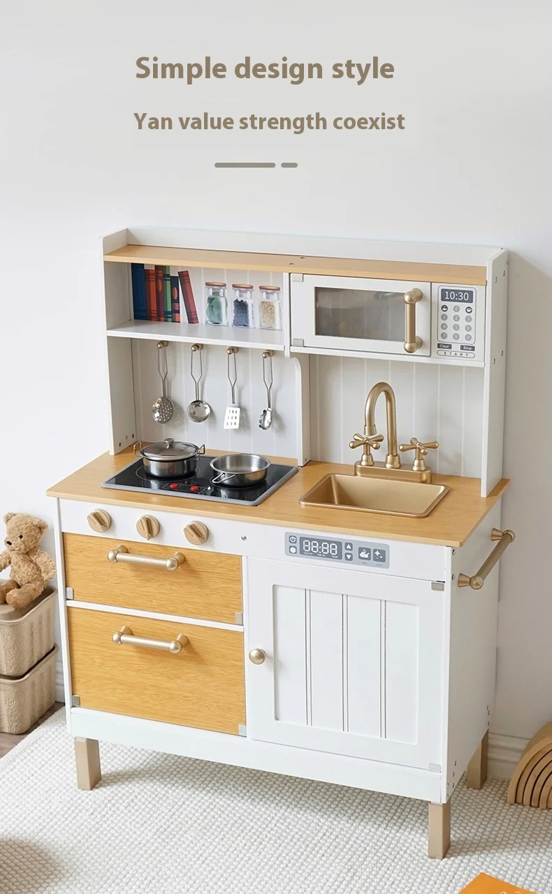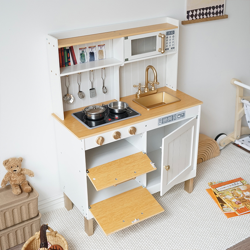 Safety Assured Early Educational Pretend Play Wooden Kitchen Set for Toddler Simulation Cooking Toy With Kids