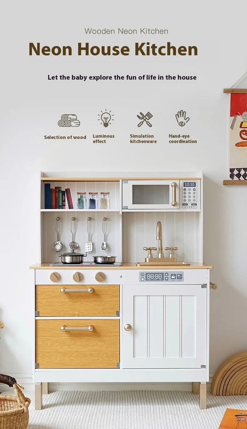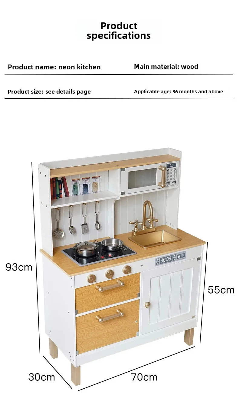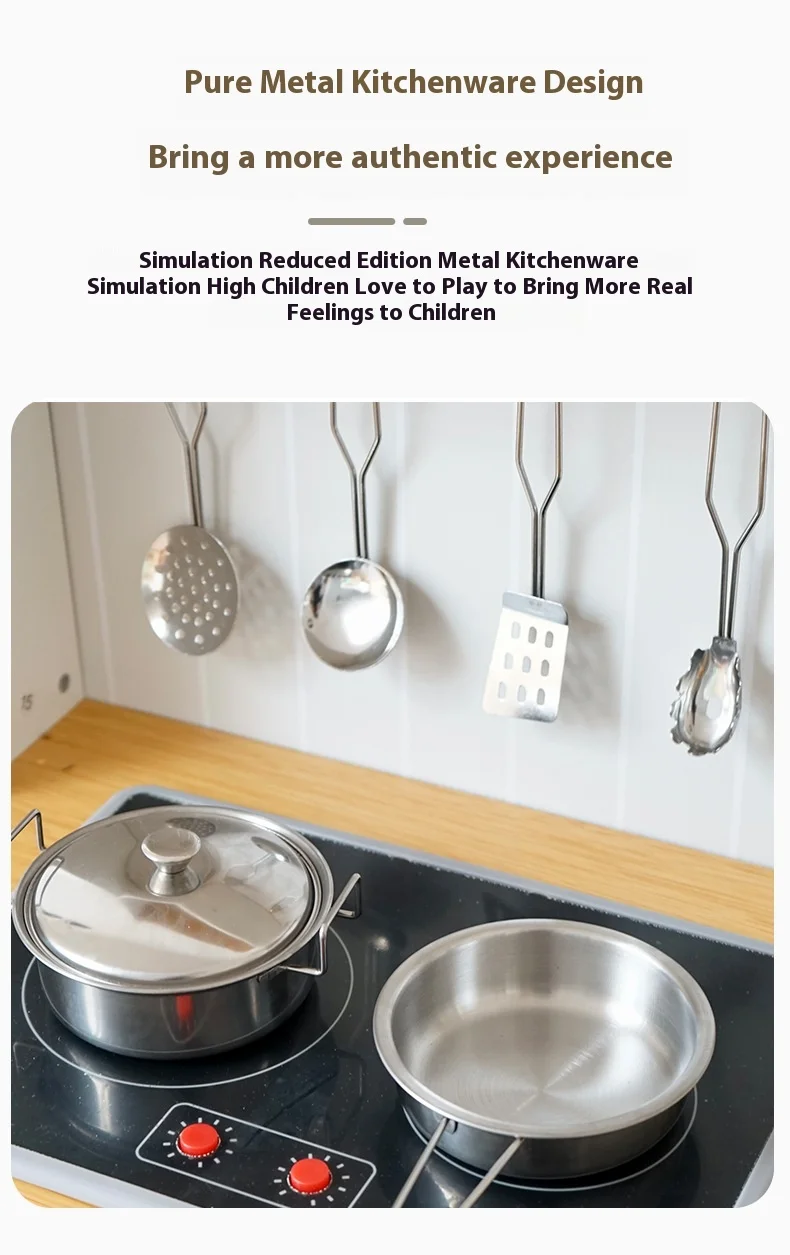 Safety Assured Early Educational Pretend Play Wooden Kitchen Set for Toddler Simulation Cooking Toy With Kids