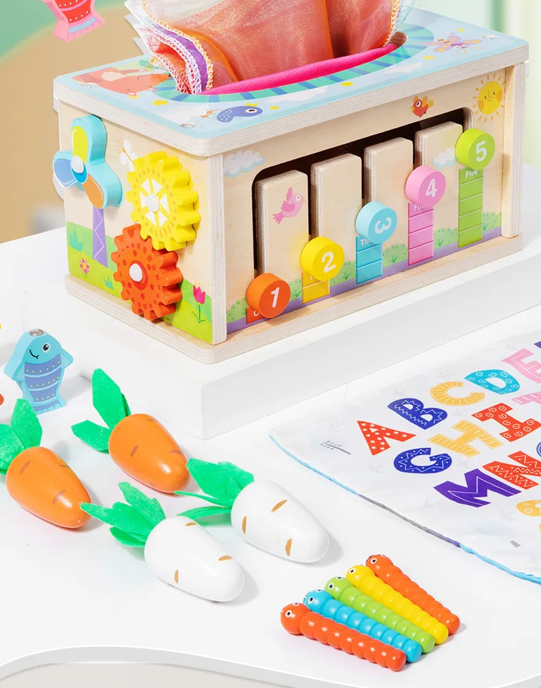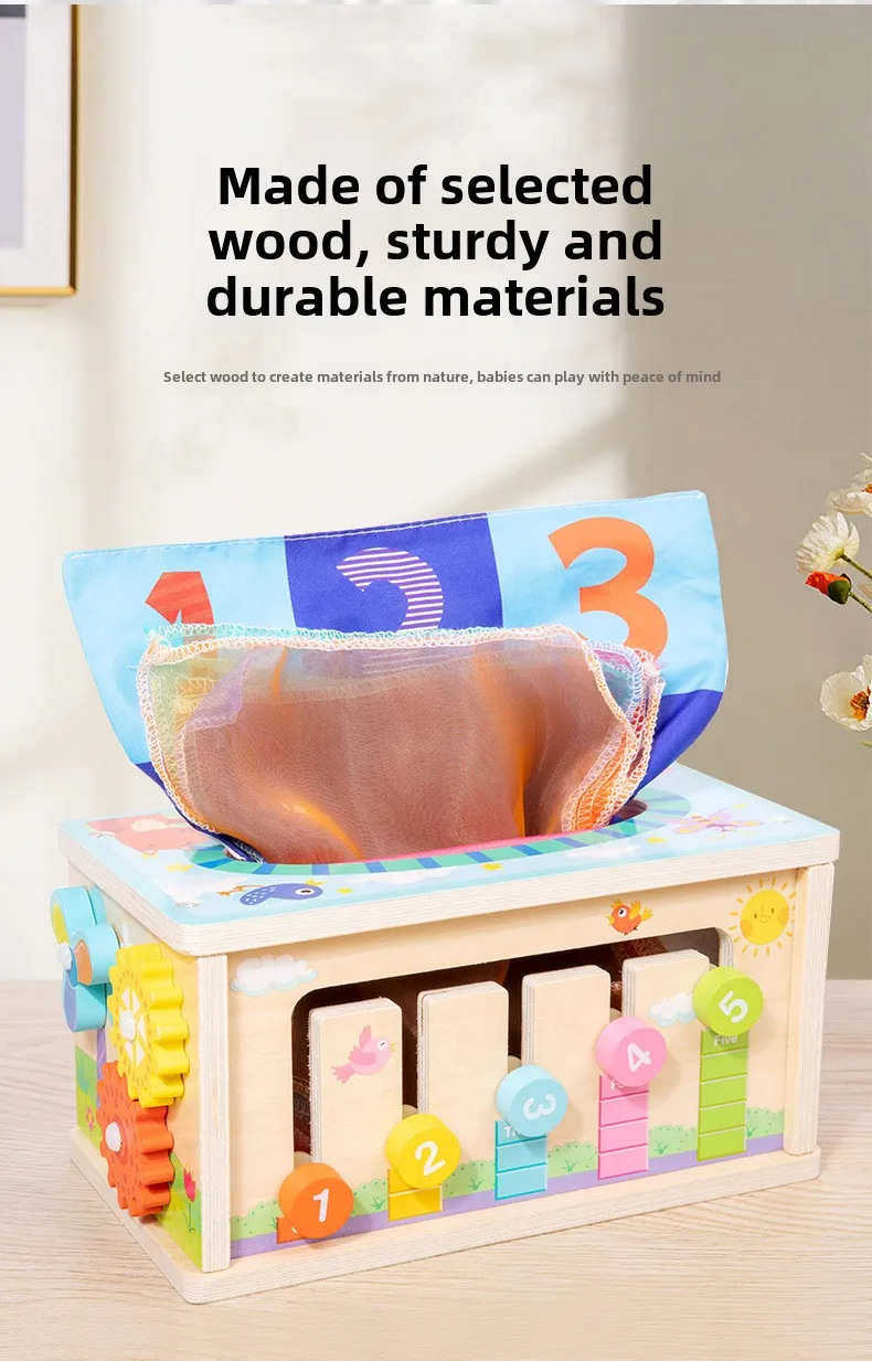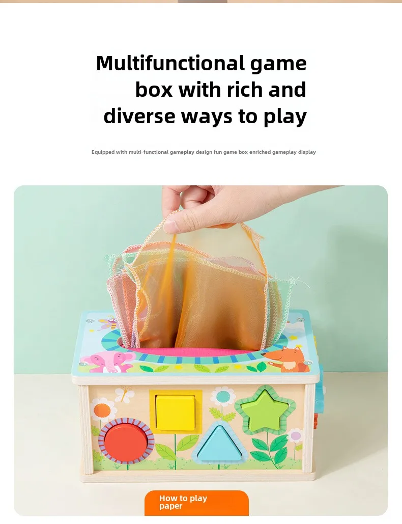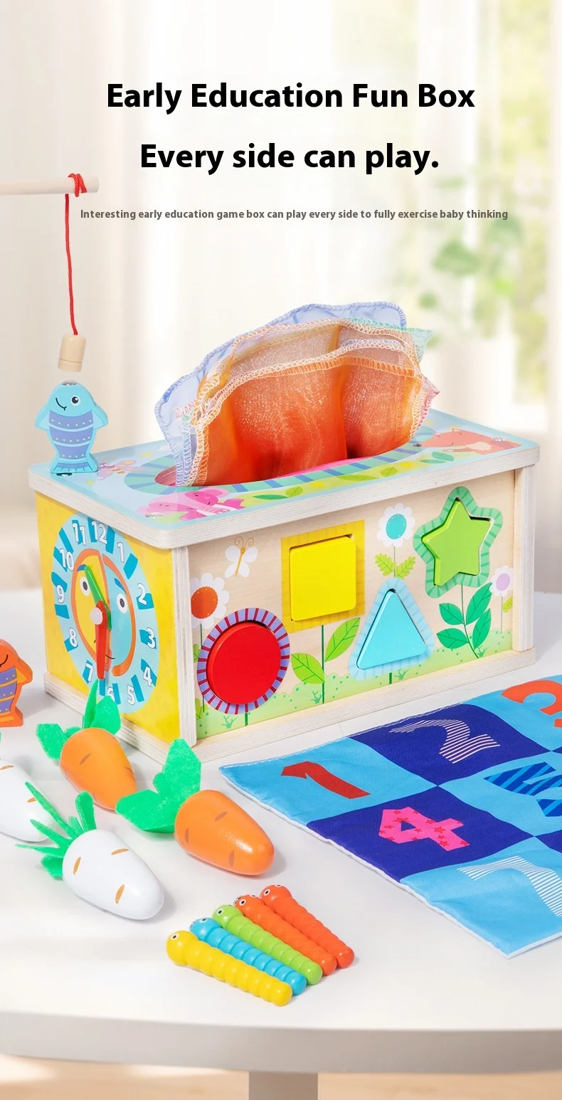 Seven-in-one Game Case Educational Toys Children’s Multifunctional Tissue Box Shape Matching Cognitive Wooden Toys