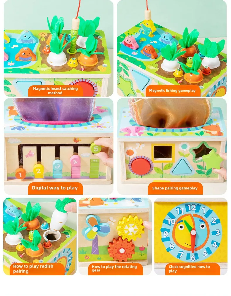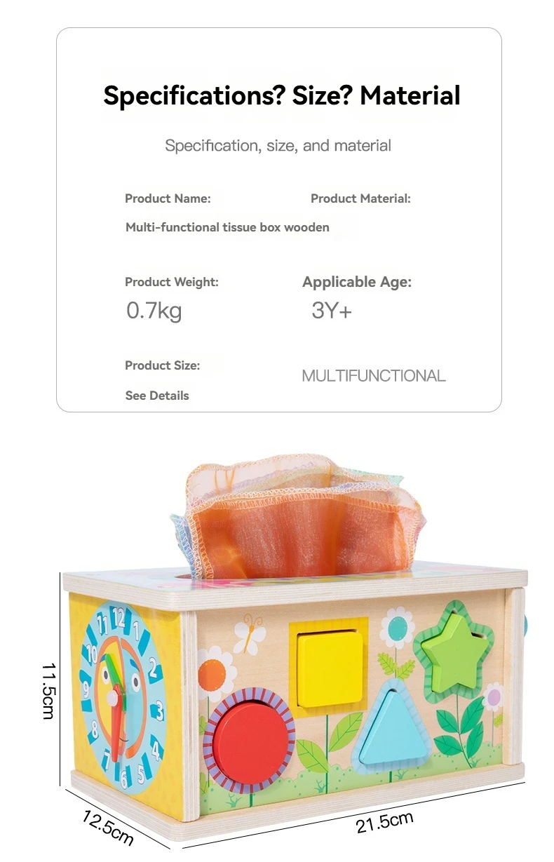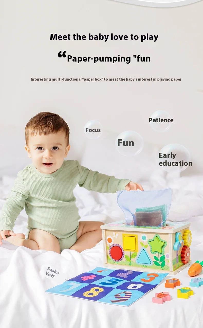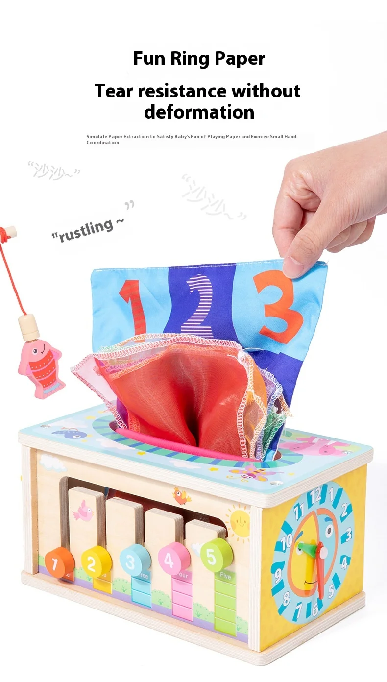Seven-in-one Game Case Educational Toys Children’s Multifunctional Tissue Box Shape Matching Cognitive Wooden Toys