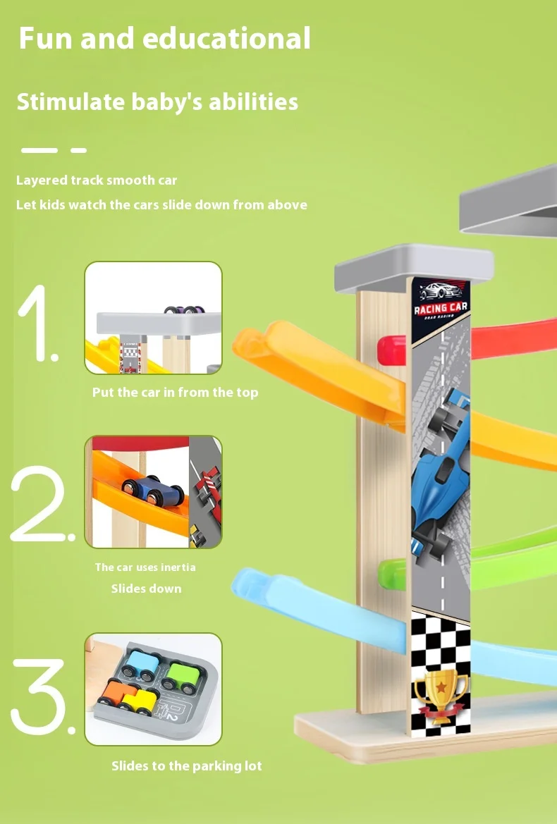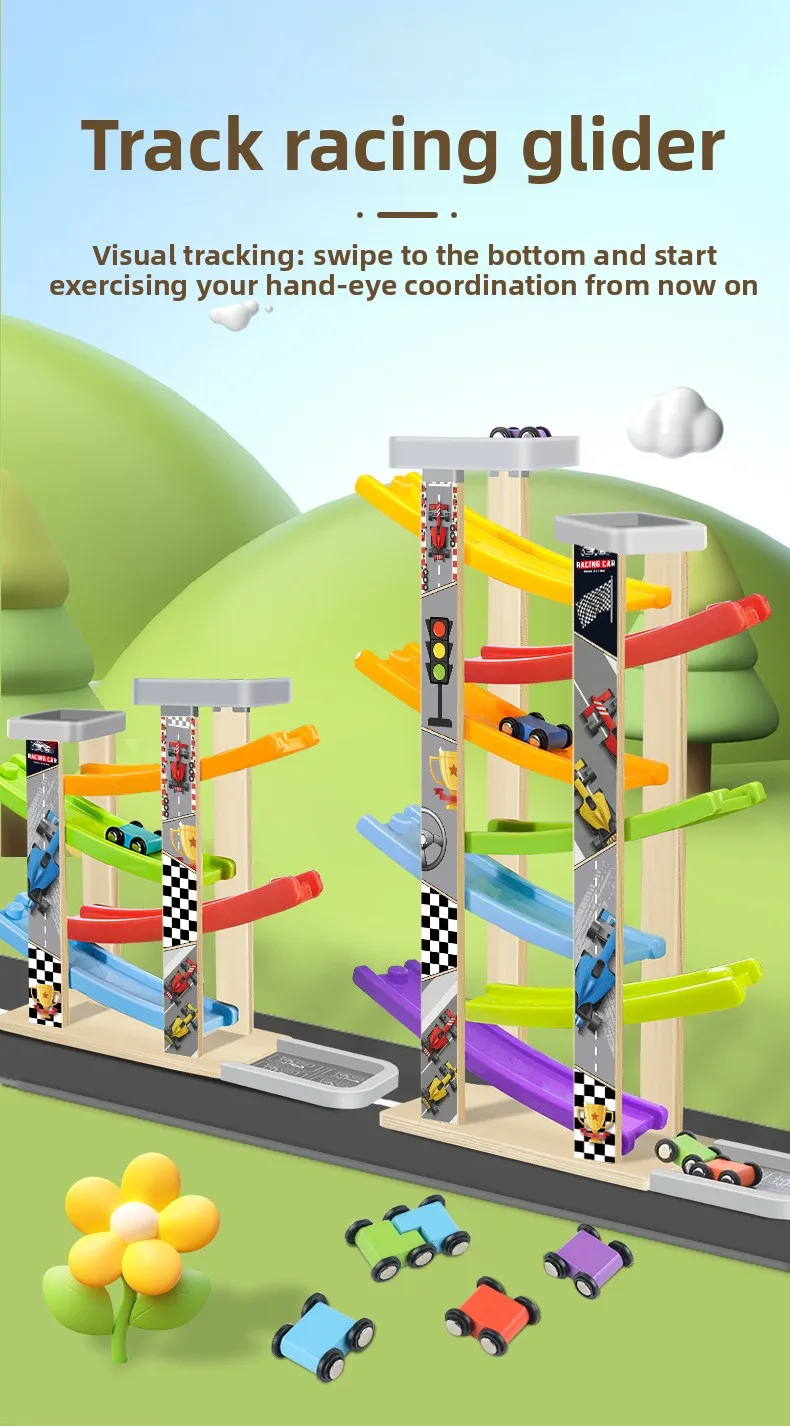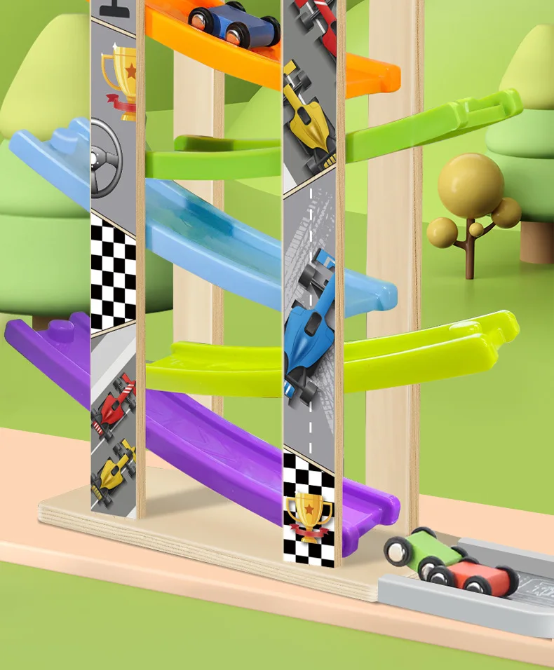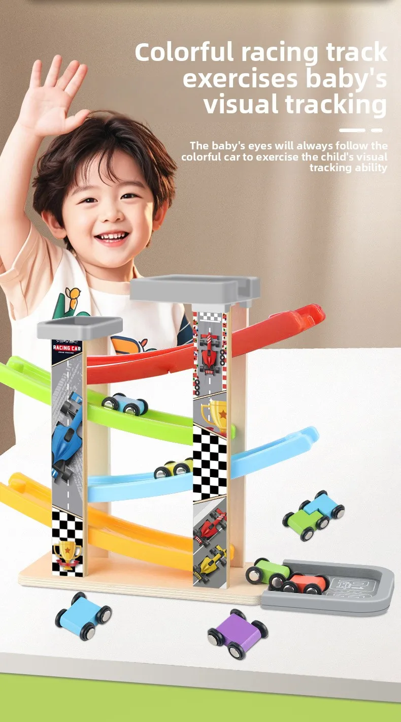 Small Children’s Wooden Inertia Slide Track Gliding Car Multi-layer Visual Tracking Educational Toy Fun Toy for Babies