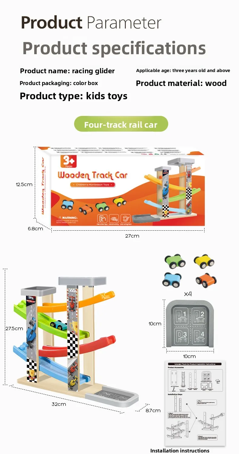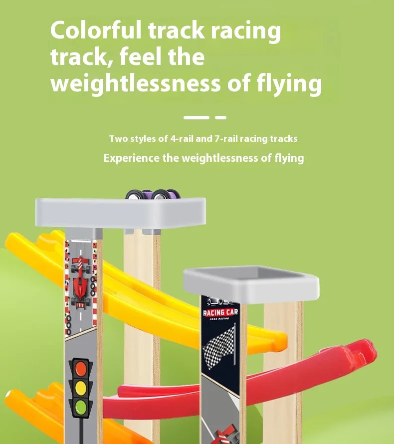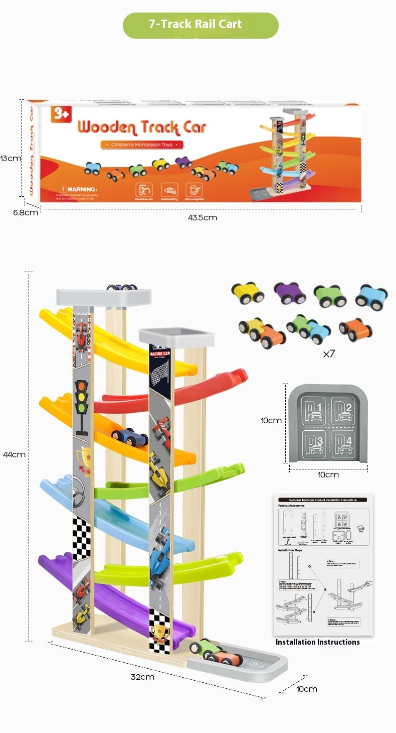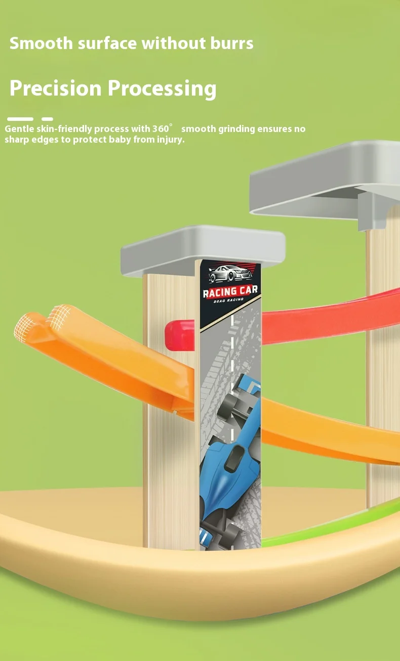 Small Children’s Wooden Inertia Slide Track Gliding Car Multi-layer Visual Tracking Educational Toy Fun Toy for Babies