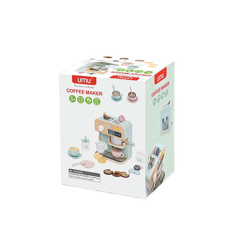 Unique Design Children’s Wooden Play Kitchen Set Safety and Environmental Protection Coffee Machine Educational Toys