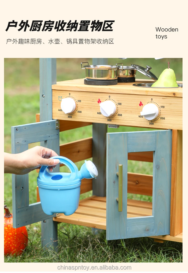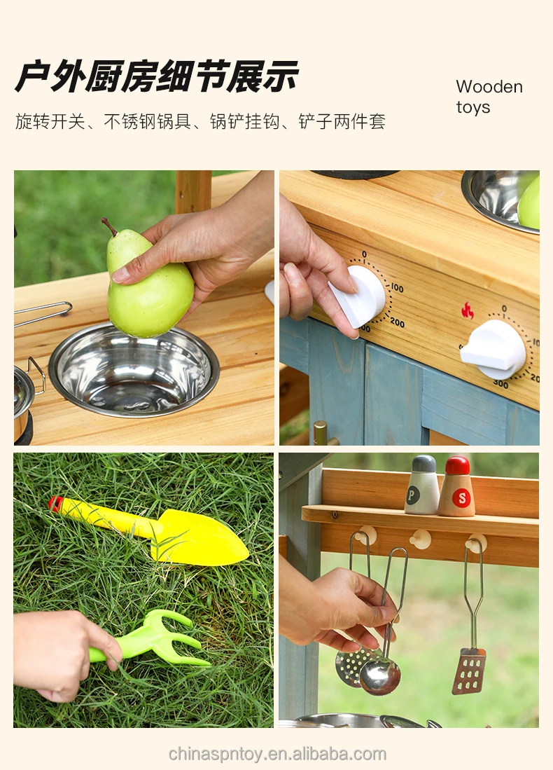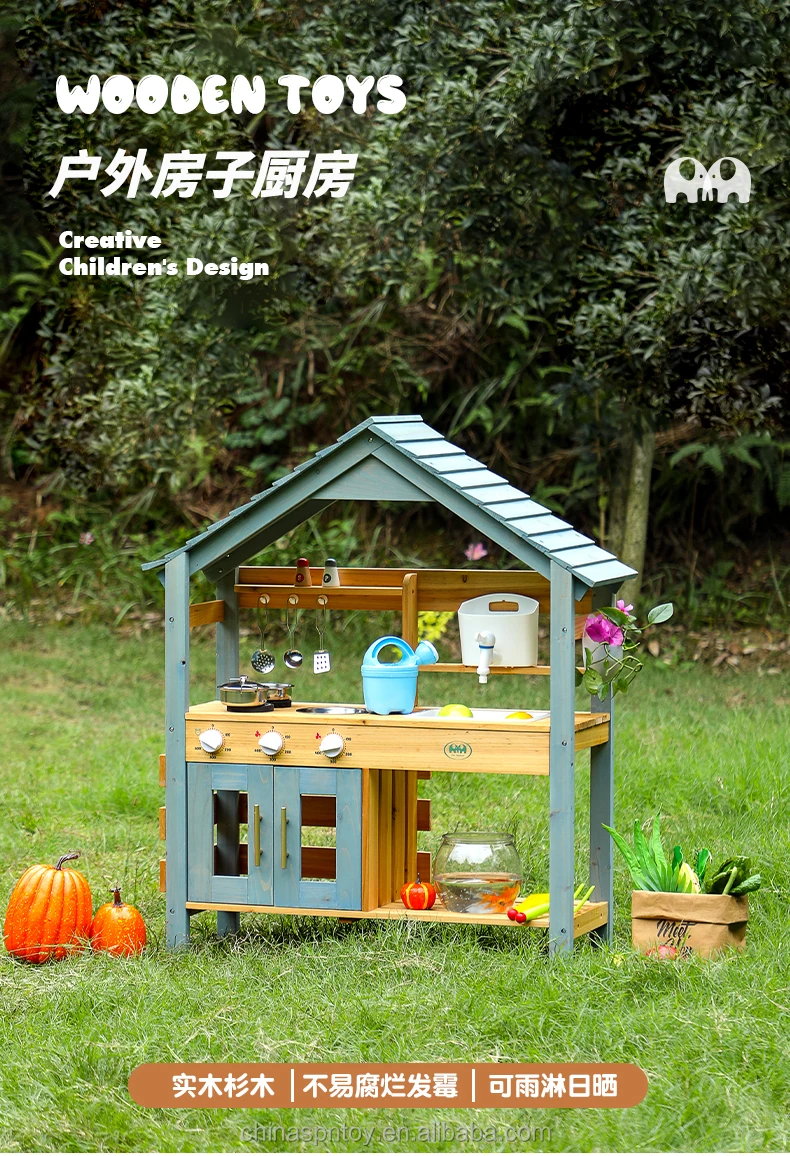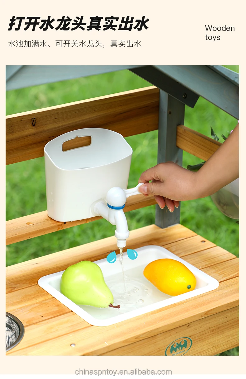 Unisex Kids Pretend Play Toy: Outdoor Wooden Garden Play Kitchen Set with Anti-Mold Design, Stove & Faucet for Outdoor Play