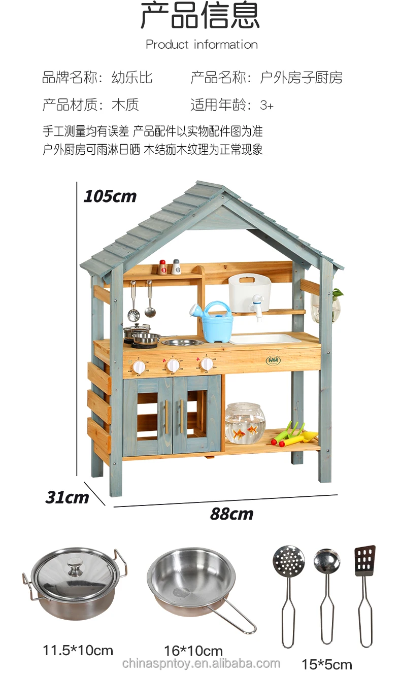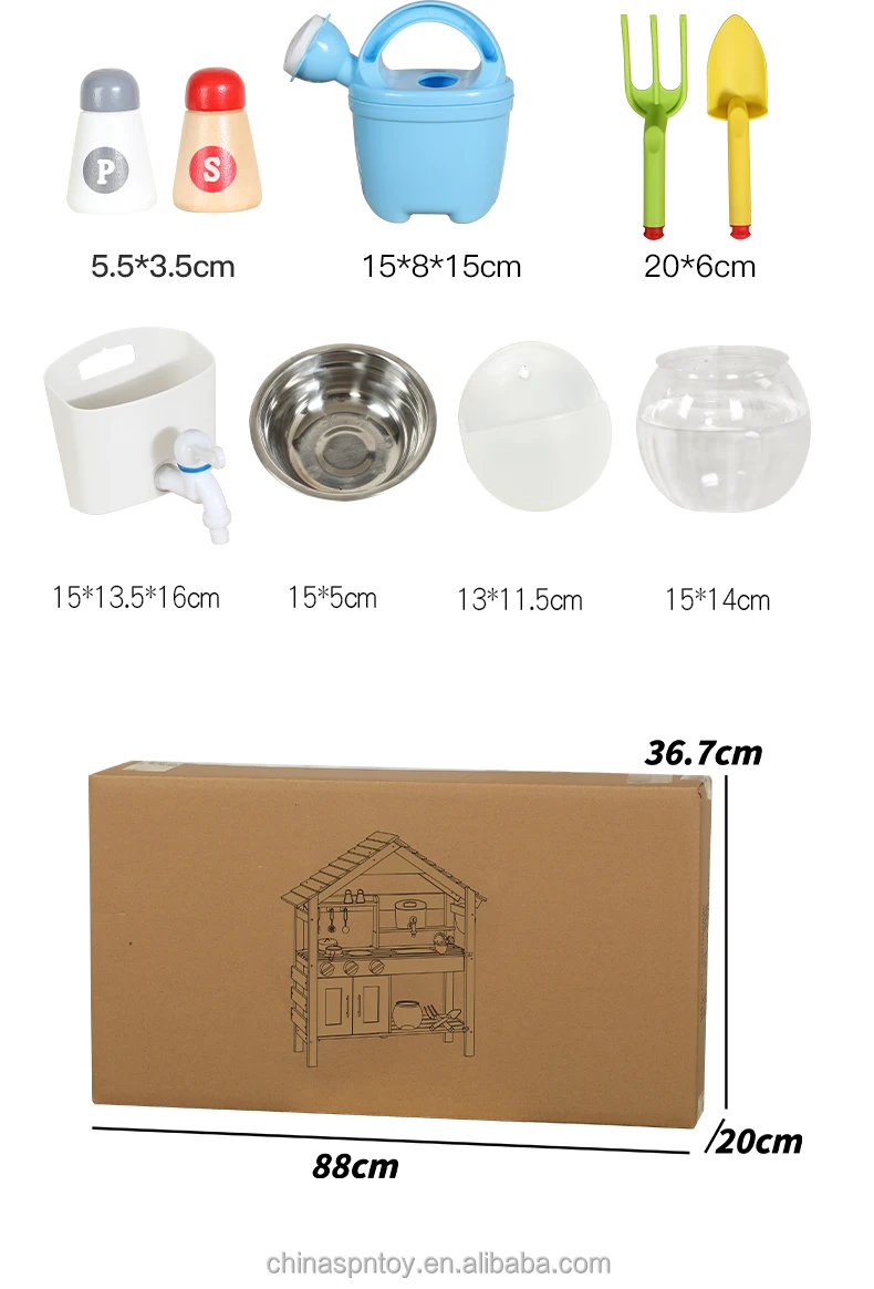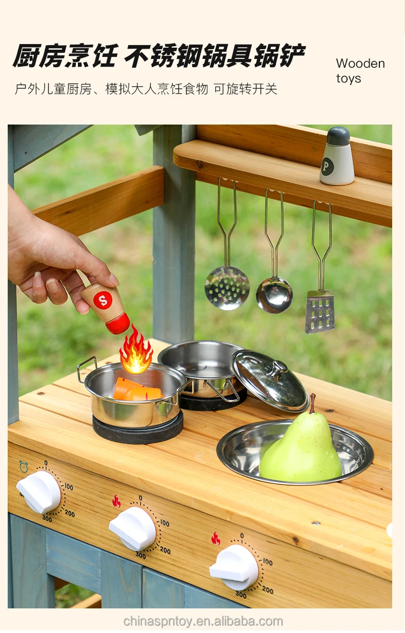 Unisex Kids Pretend Play Toy: Outdoor Wooden Garden Play Kitchen Set with Anti-Mold Design, Stove & Faucet for Outdoor Play