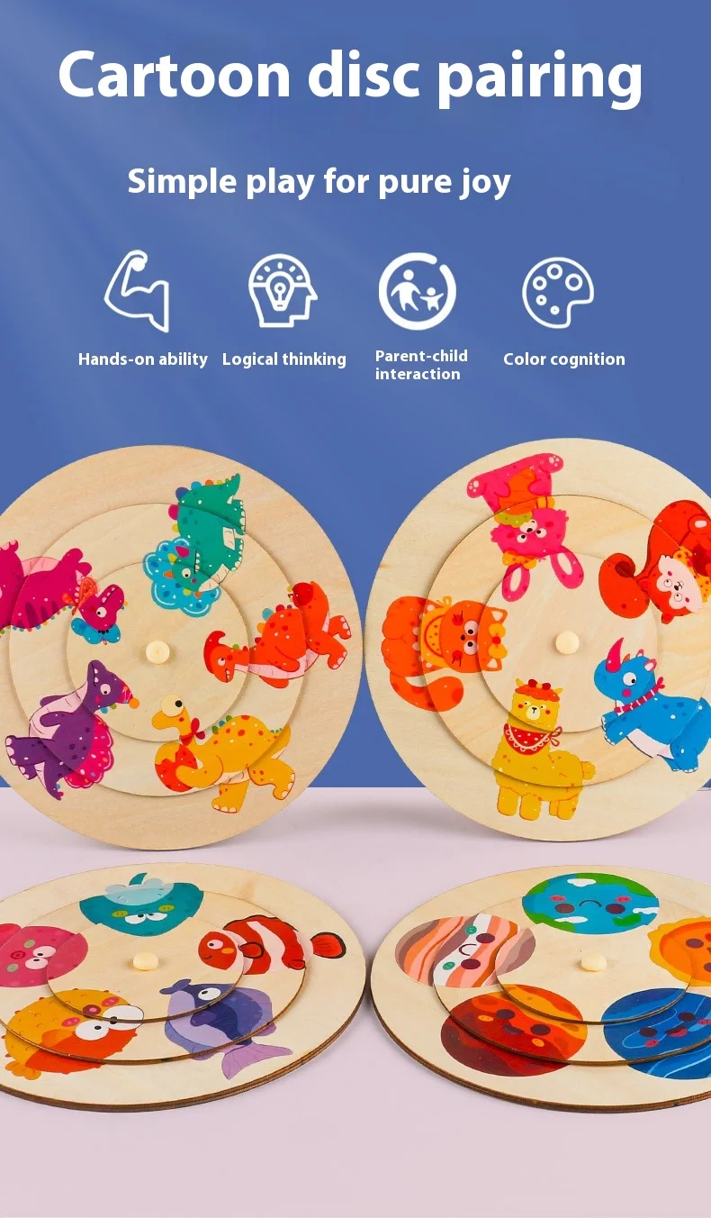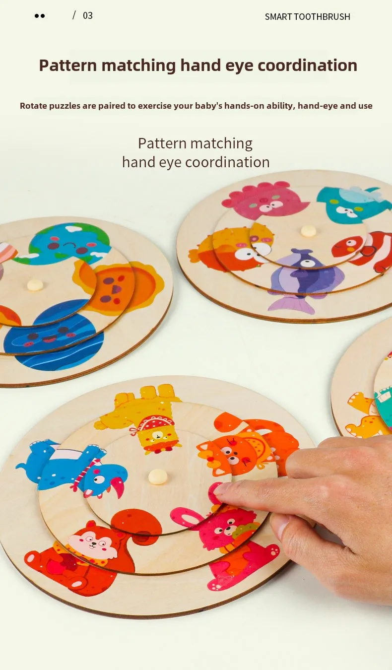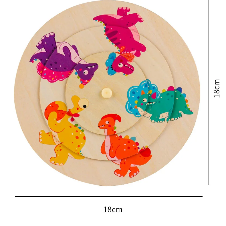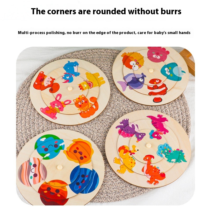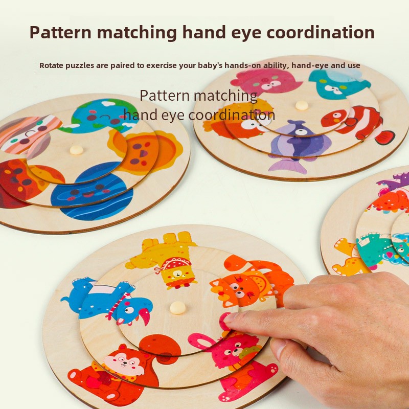 Unisex Large Animal Wooden Puzzle Toy Children Aged 2-7 Baby Pattern Cognitive Matching Rotating Puzzle