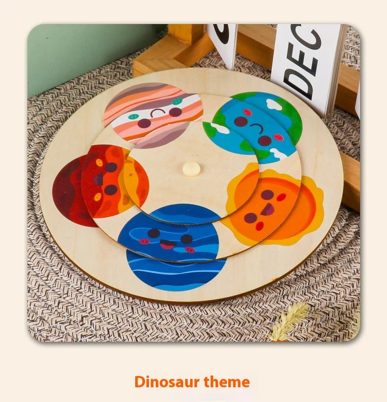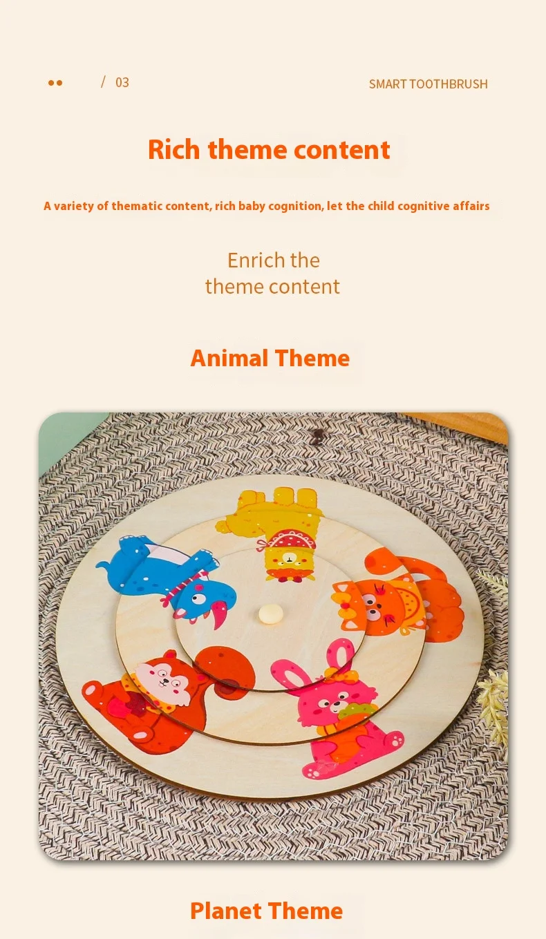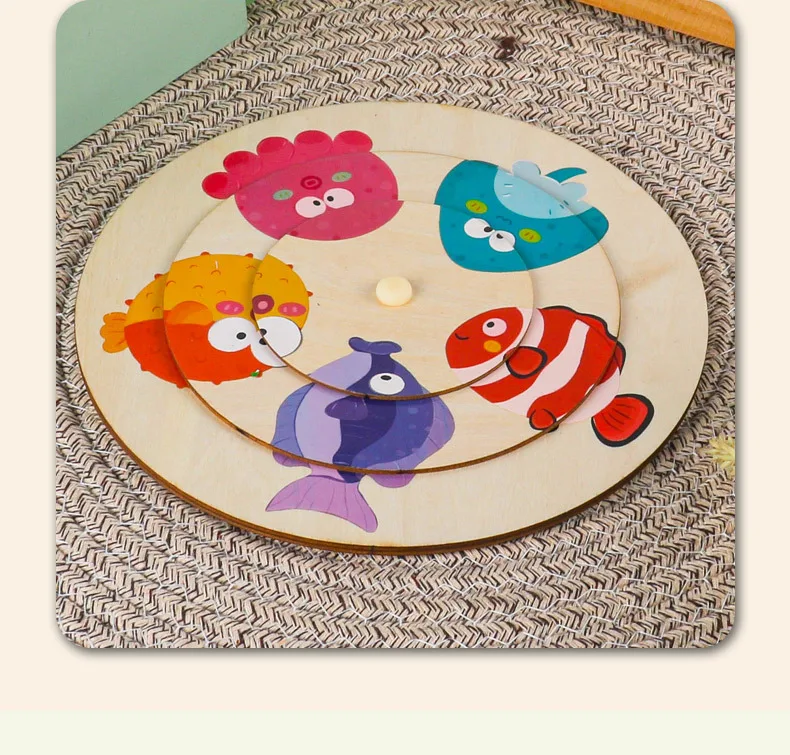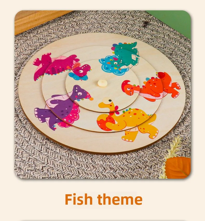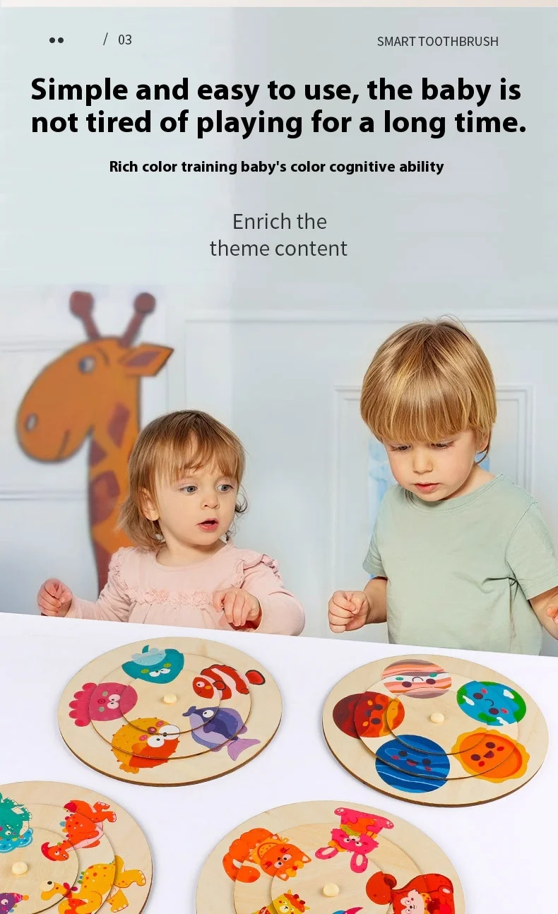 Unisex Large Animal Wooden Puzzle Toy Children Aged 2-7 Baby Pattern Cognitive Matching Rotating Puzzle