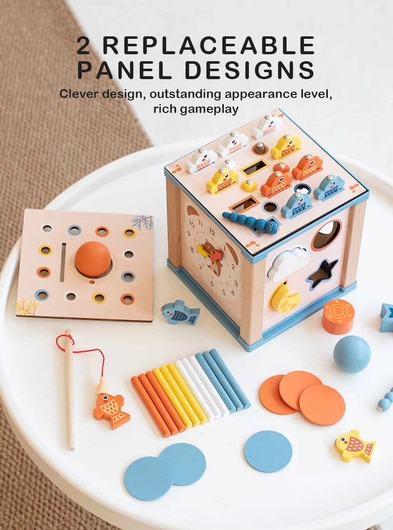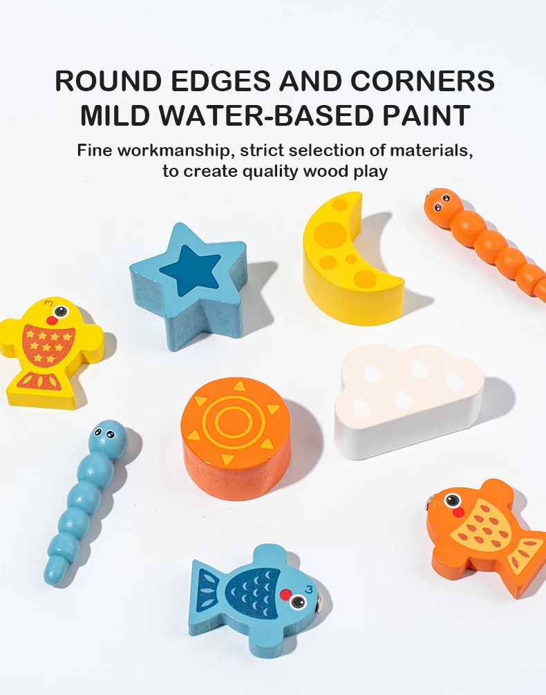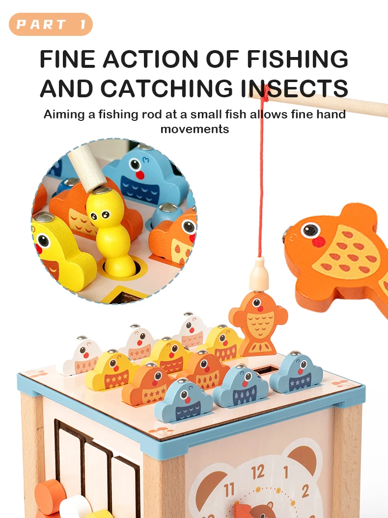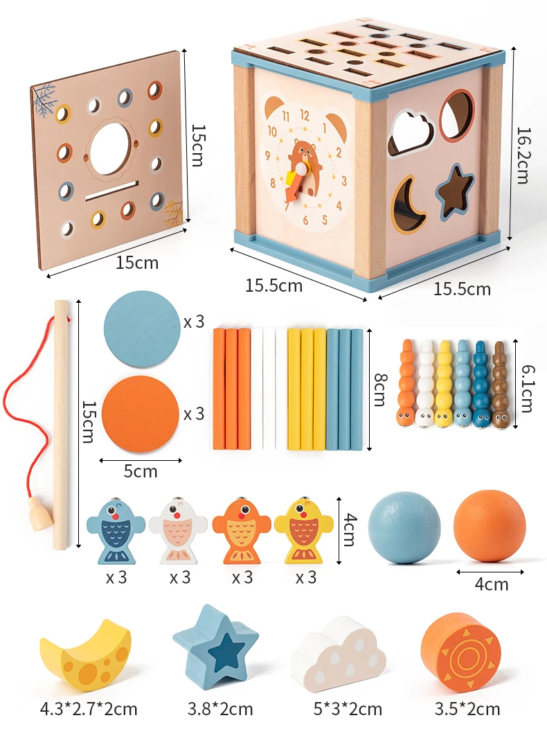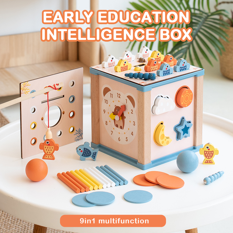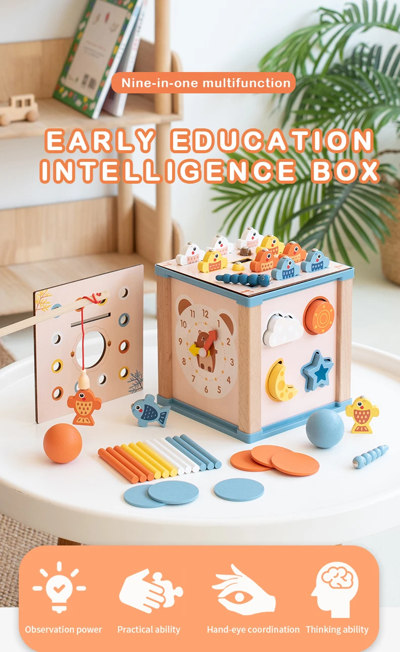 Wood Fishing Game Ball Coin Box Montessori 9 in 1 Intelligence Puzzle Toy Multifunctional Geometric Shape Matching Wooden Toys