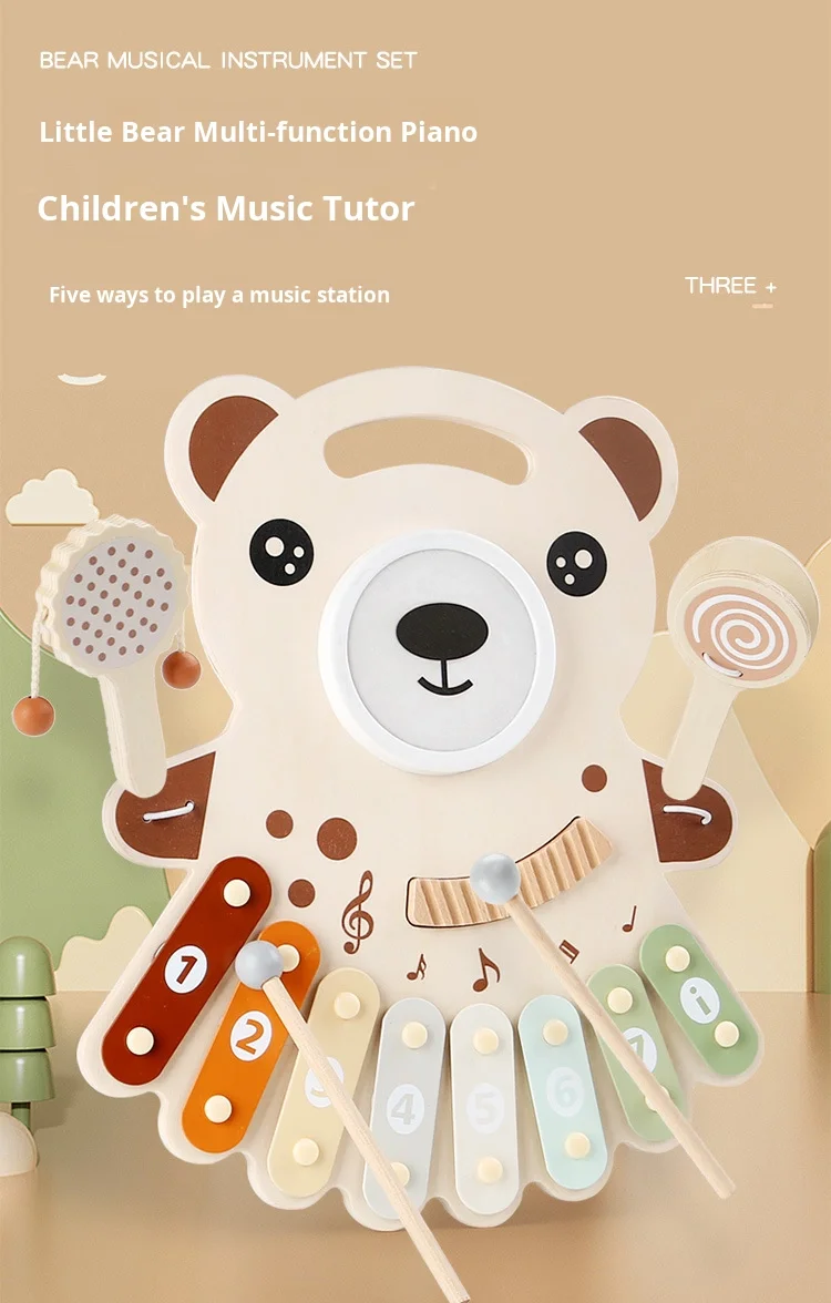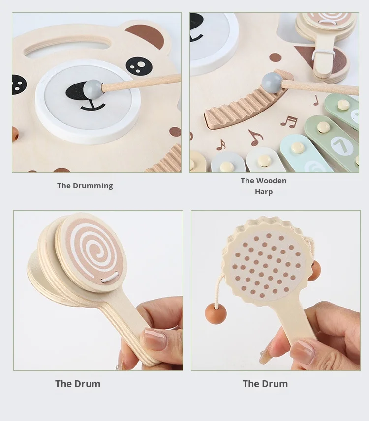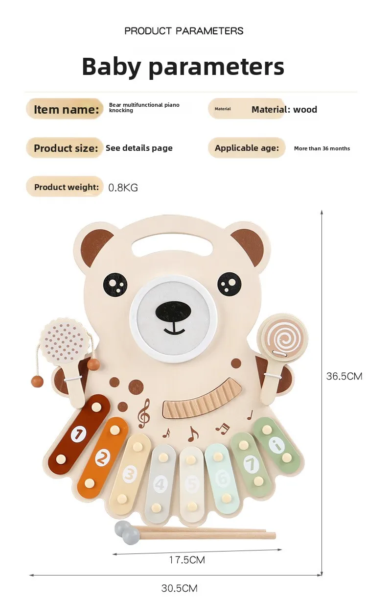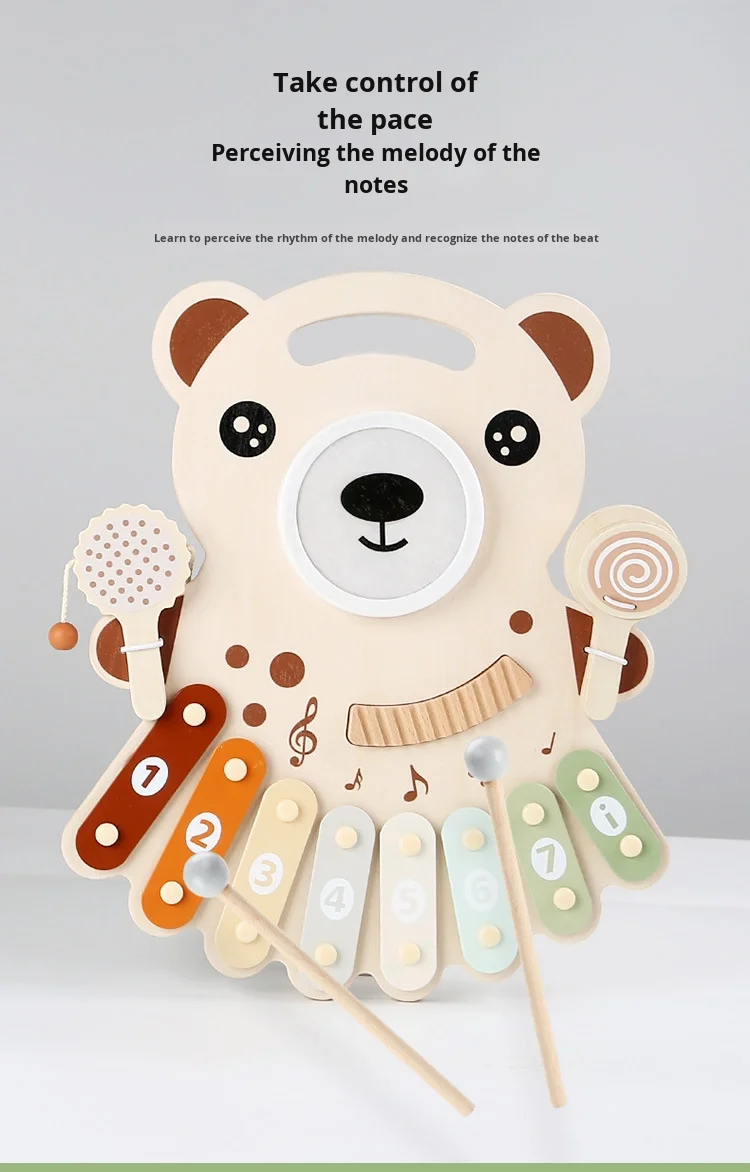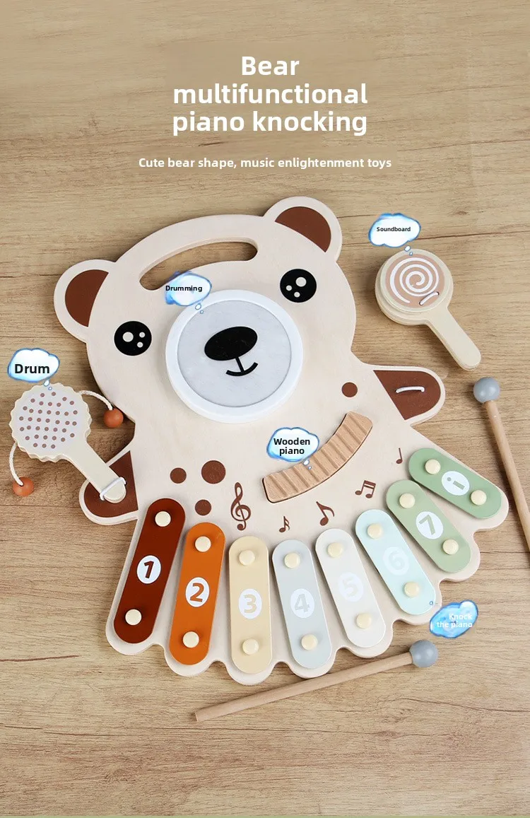 Wood Percussion Drum Set Early Education Children’s Orff Bear Piano Drum Instrument Music Board Toy