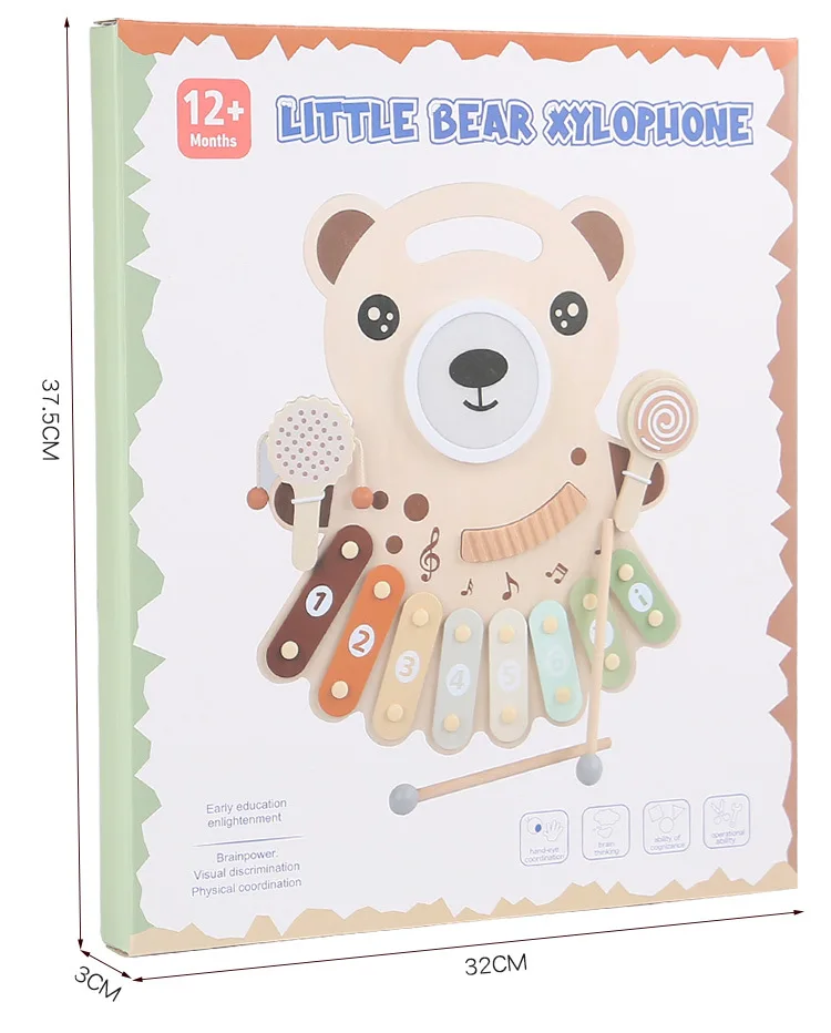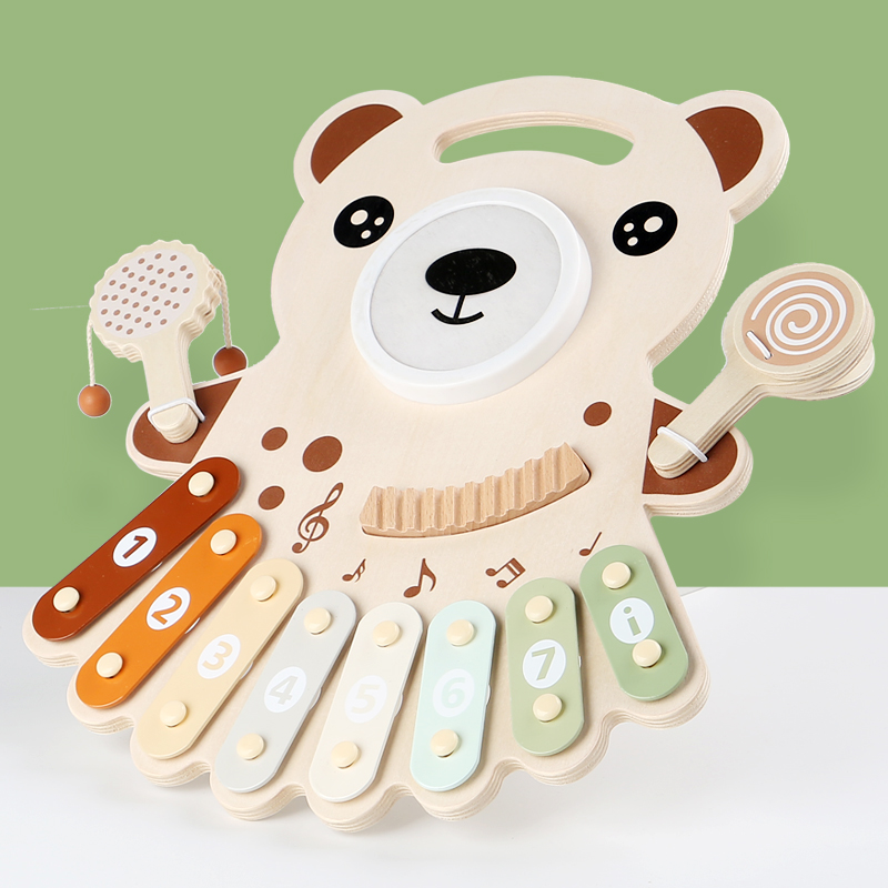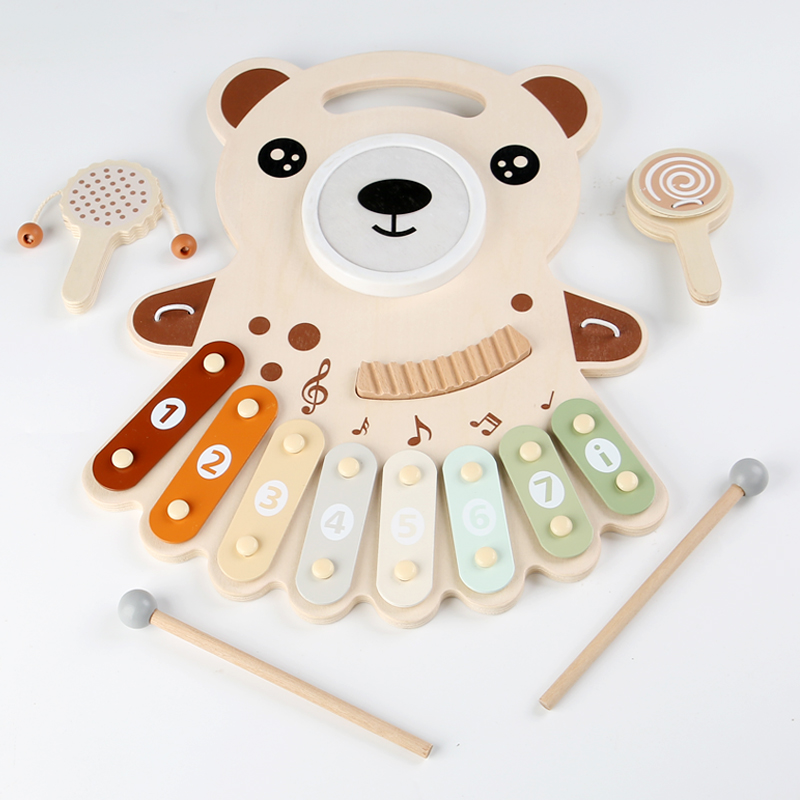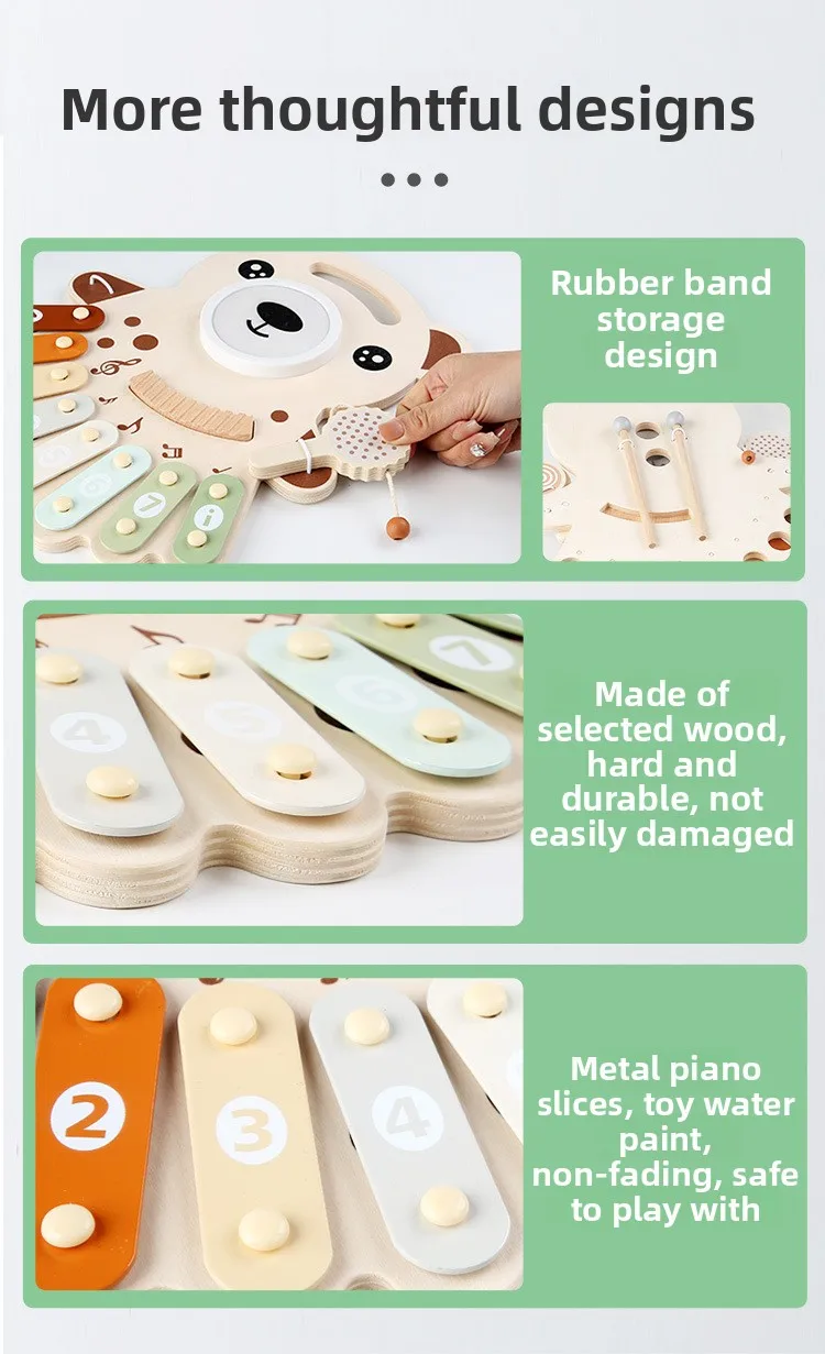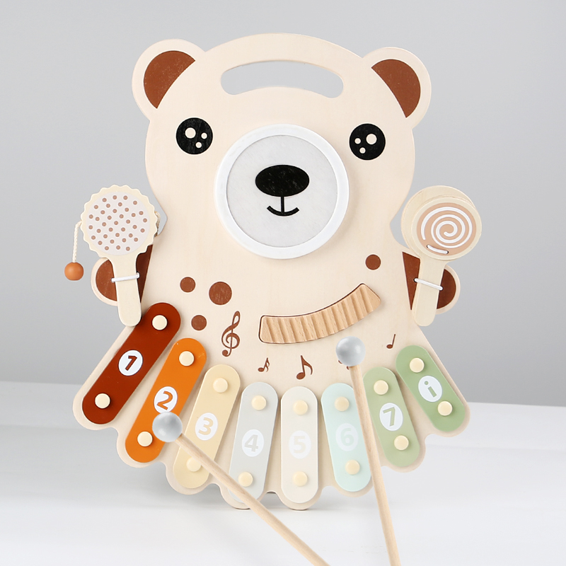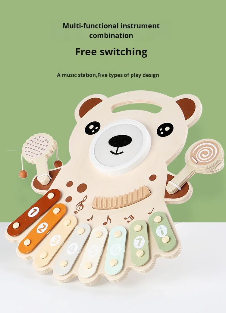 Wood Percussion Drum Set Early Education Children’s Orff Bear Piano Drum Instrument Music Board Toy