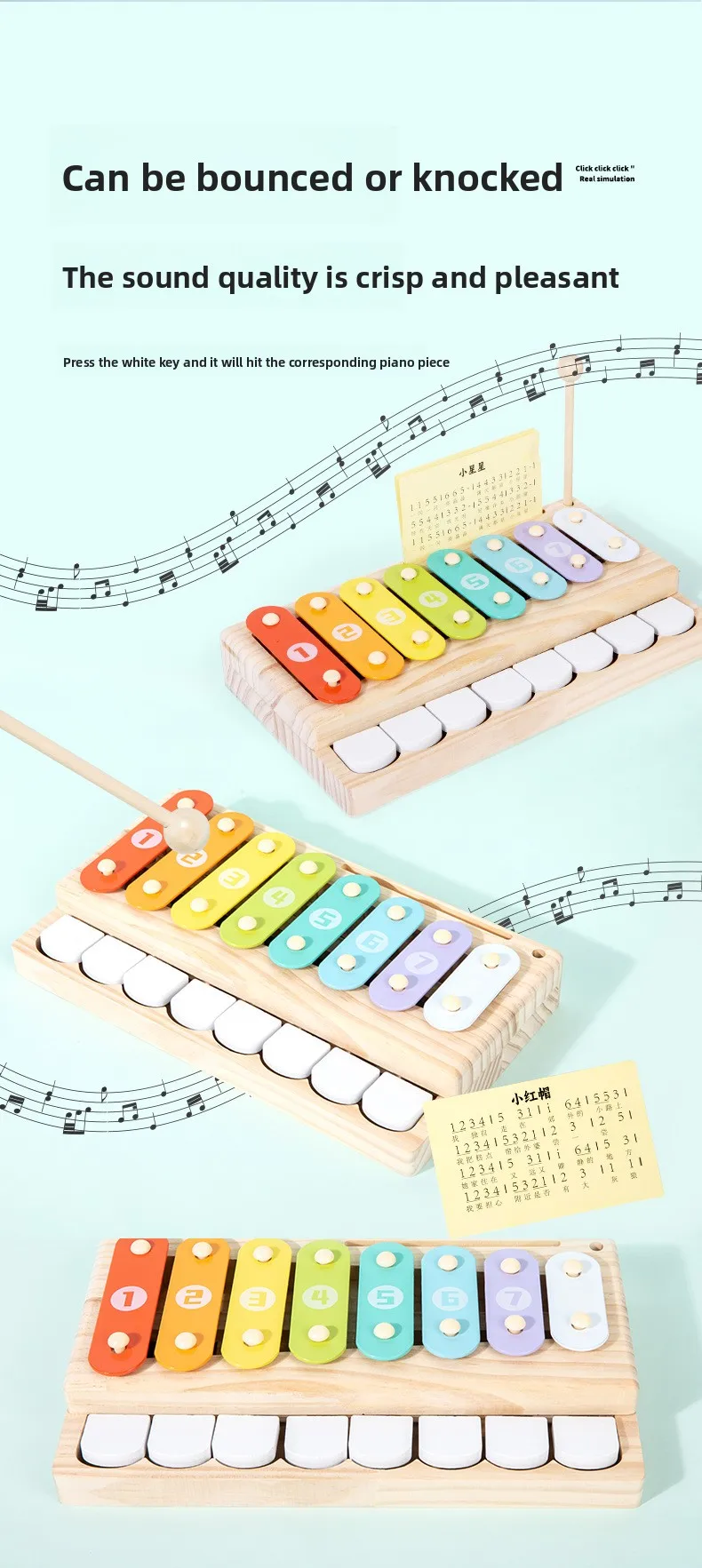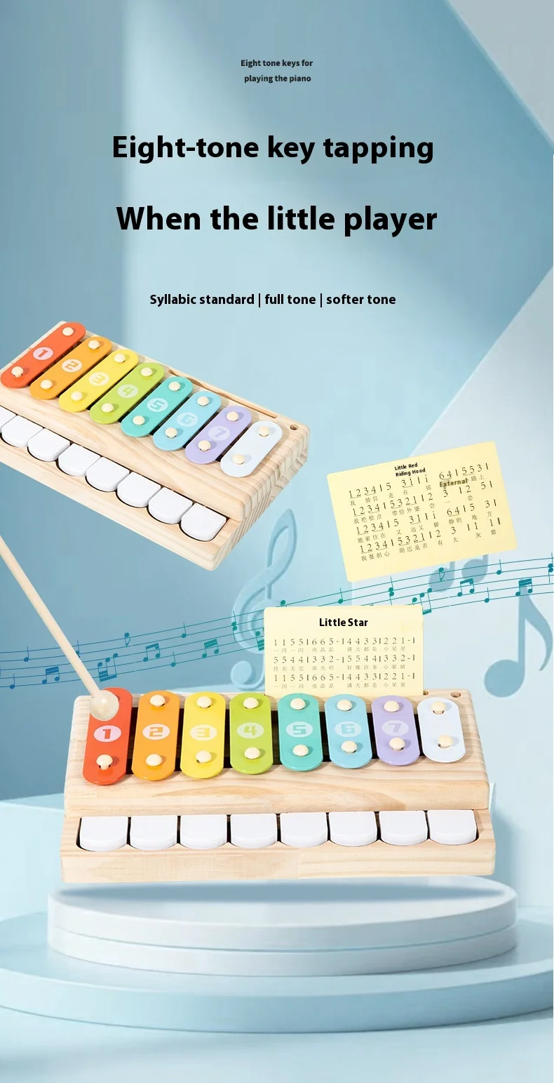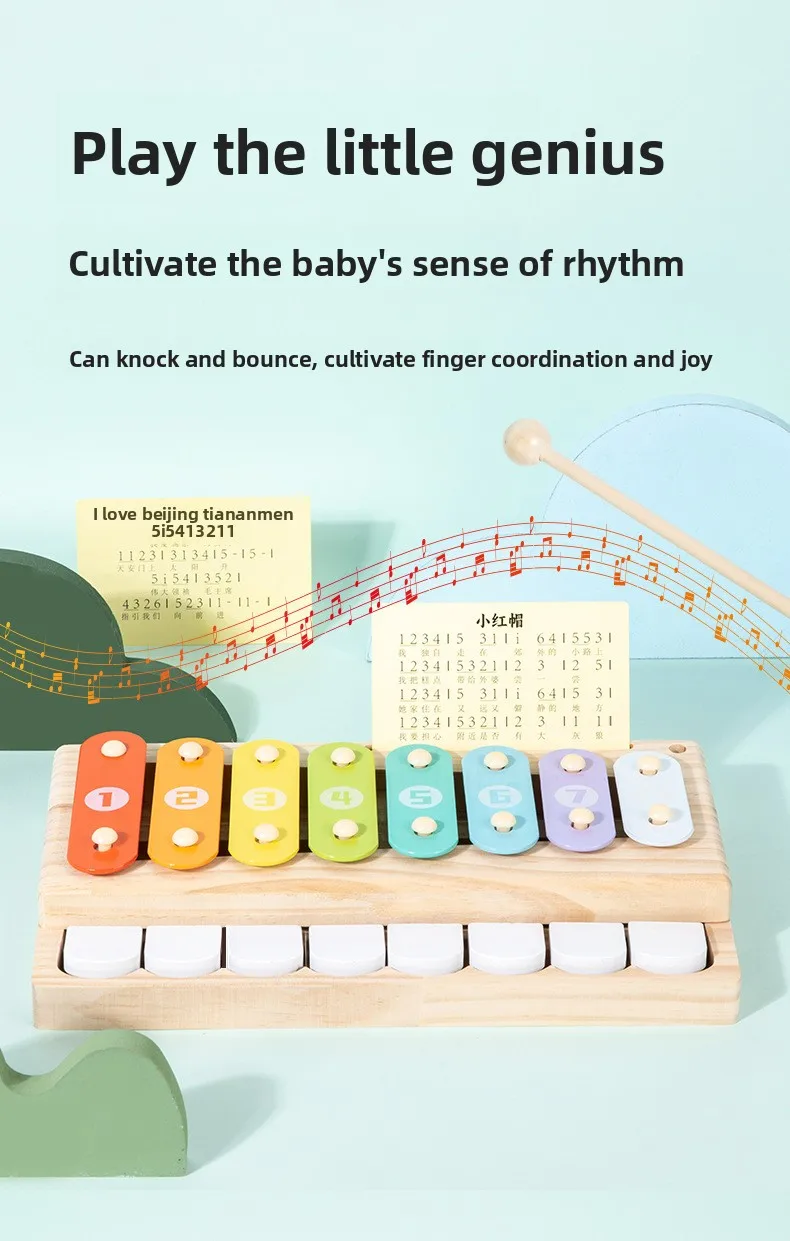 Wooden 2-in-1 Educational Hand-Pounding Piano Toy for Kids Early Musical Instrument Education Fun Toy for Children