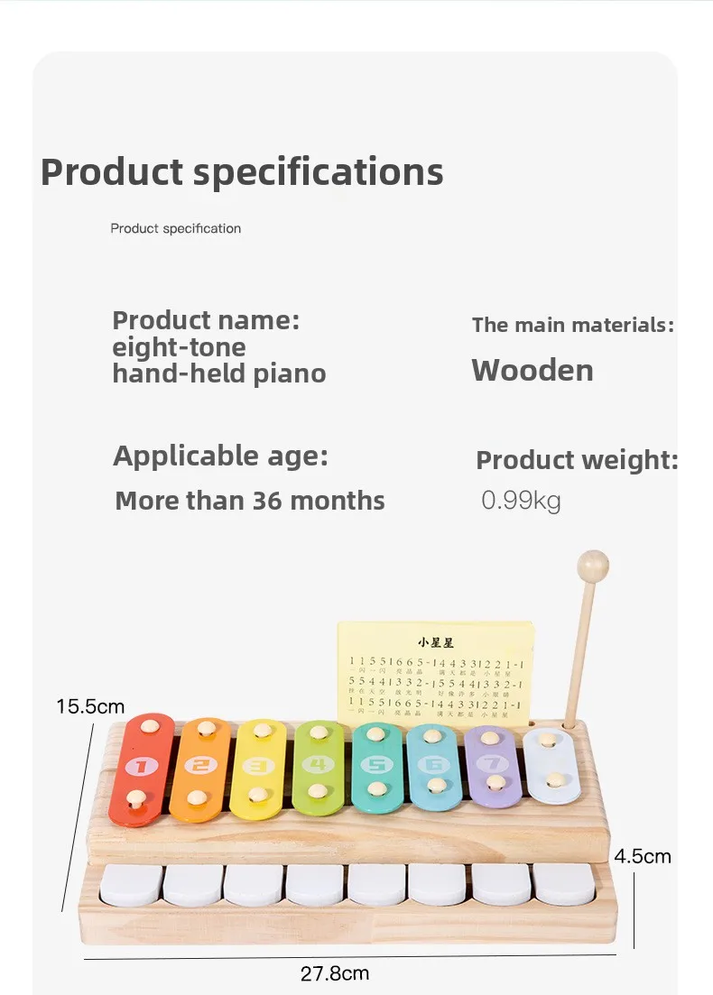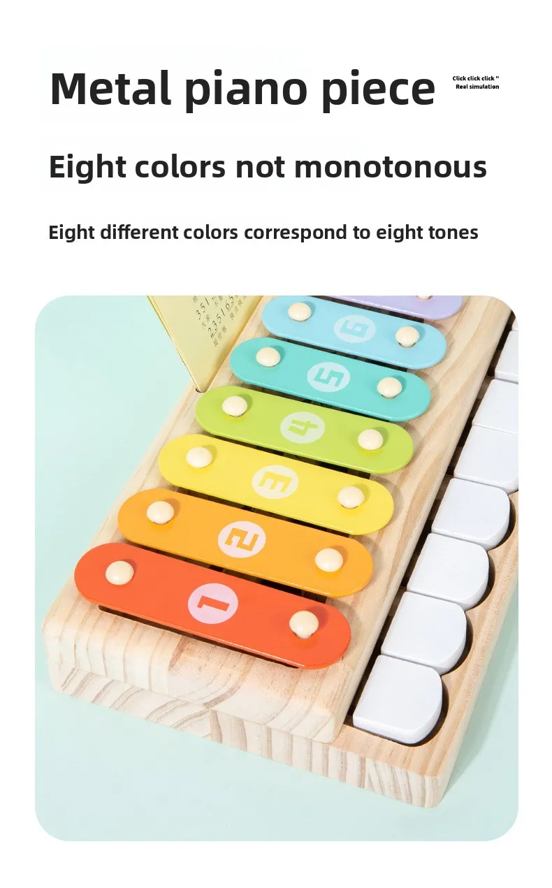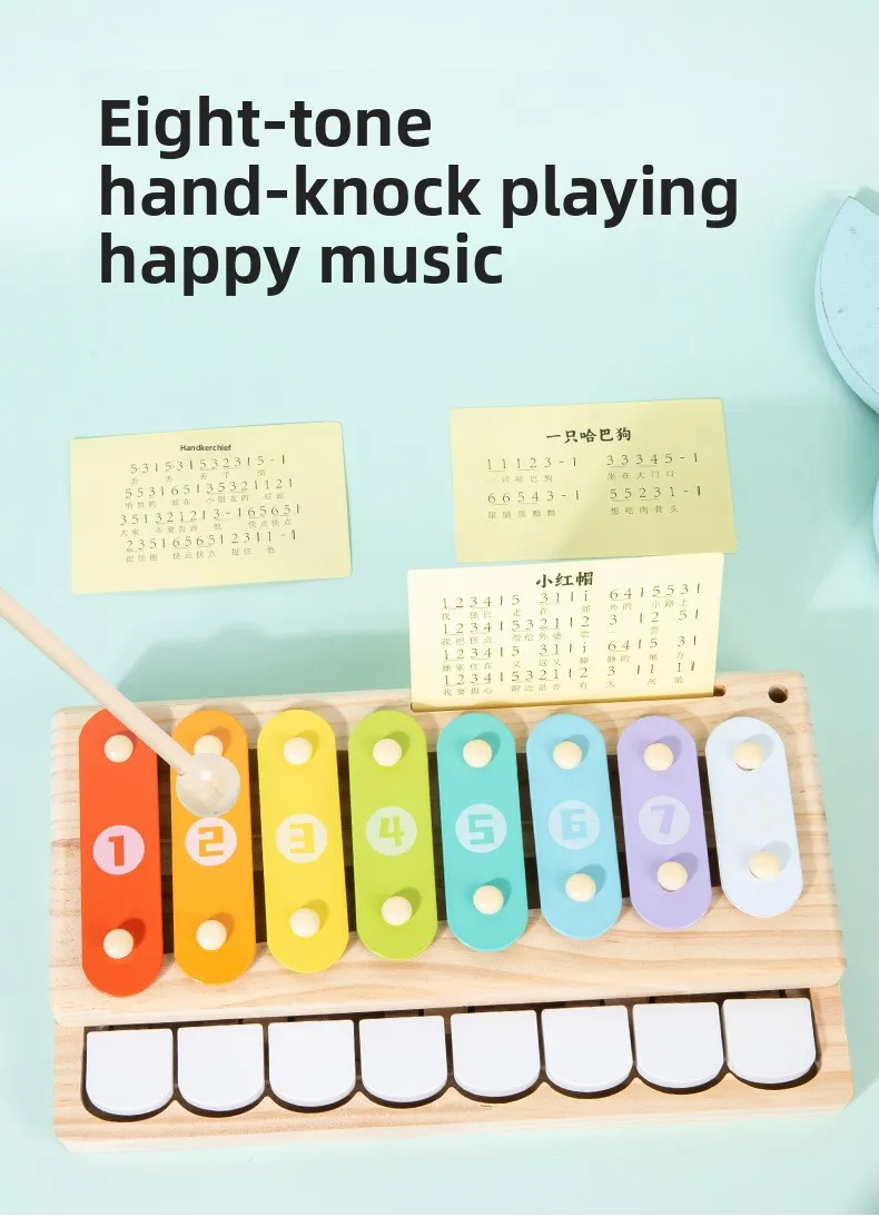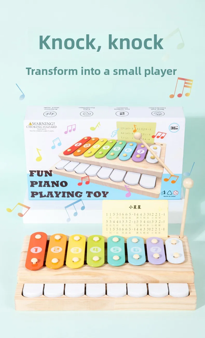 Wooden 2-in-1 Educational Hand-Pounding Piano Toy for Kids Early Musical Instrument Education Fun Toy for Children