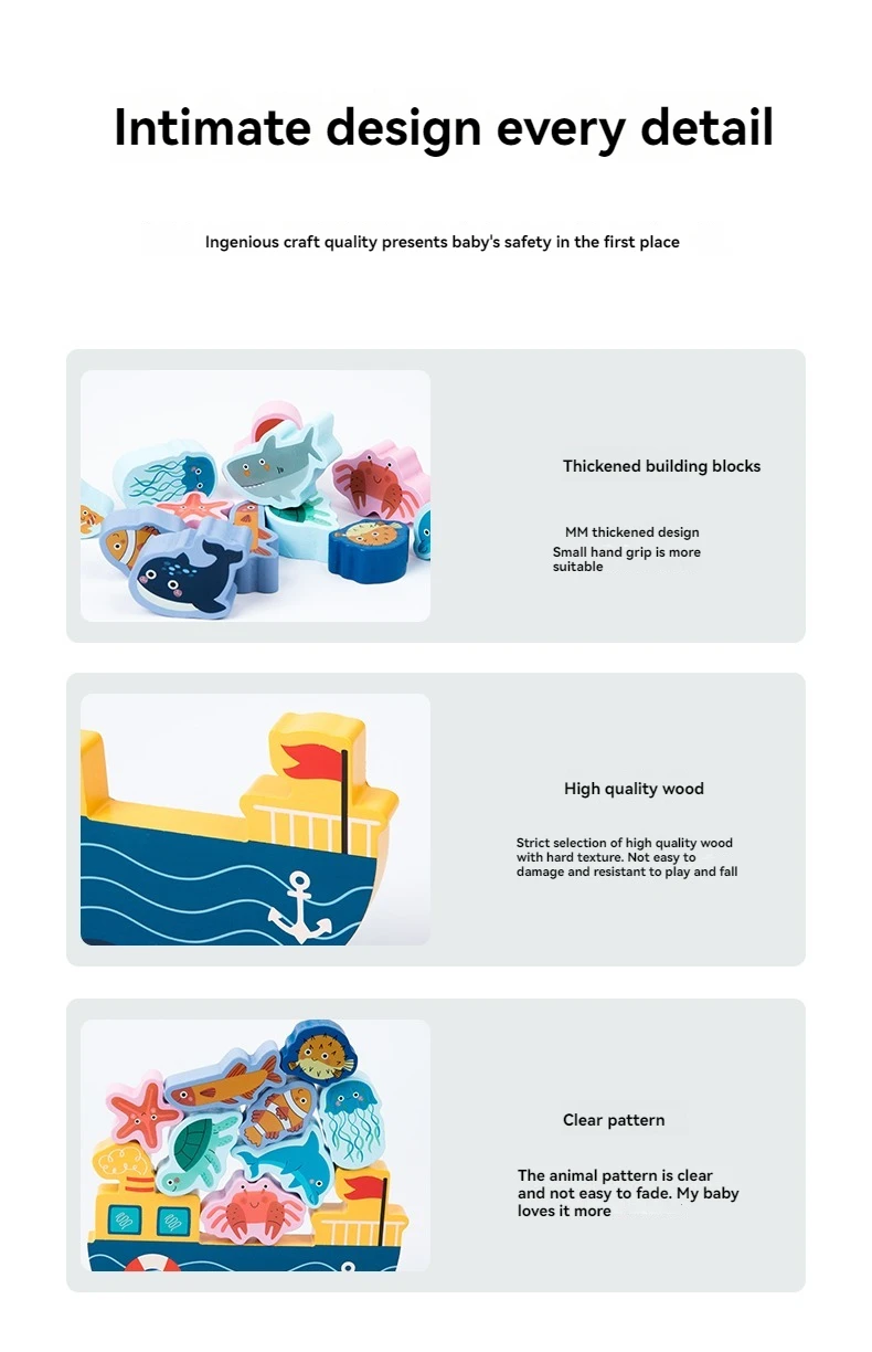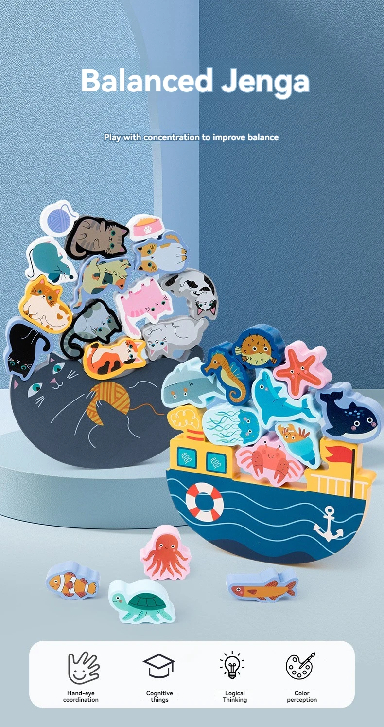 Wooden 3D Animal Balance Stack up Children’S Coordination Early Education Balance Stacked Building Block Toy