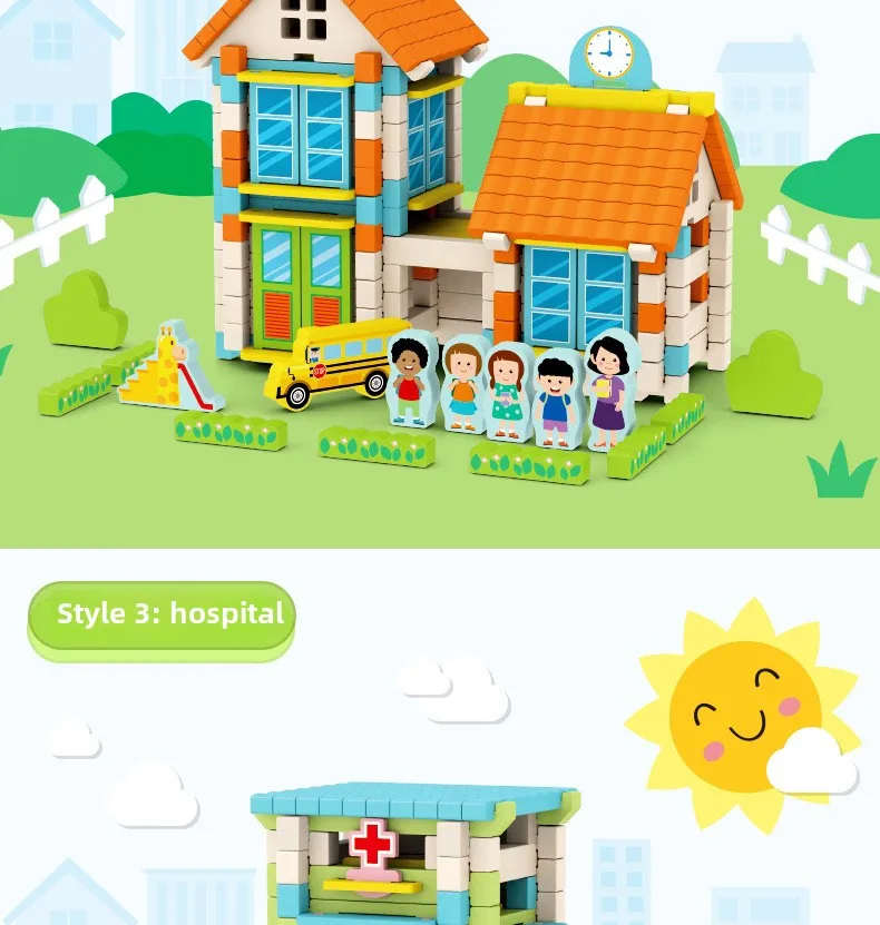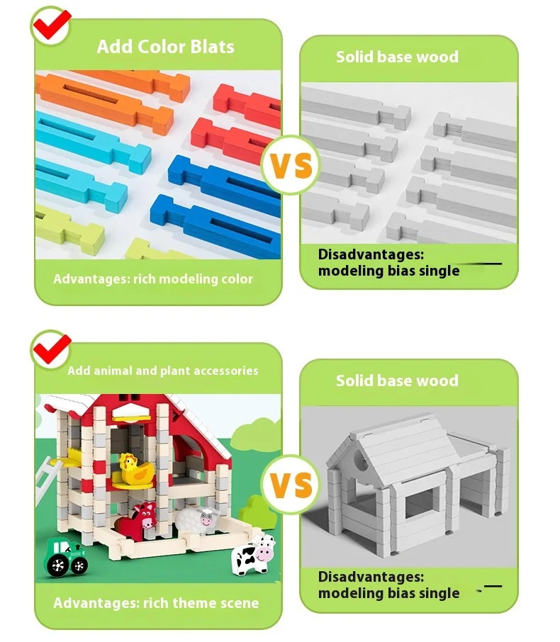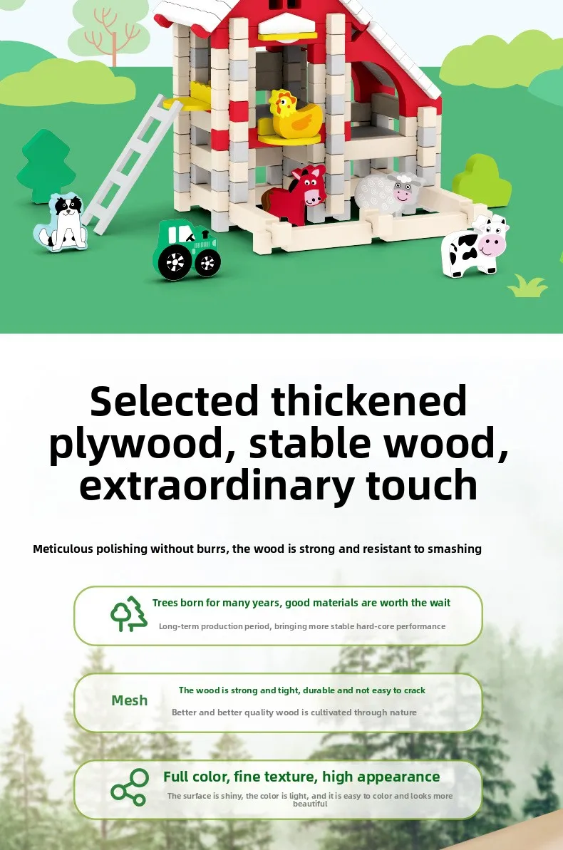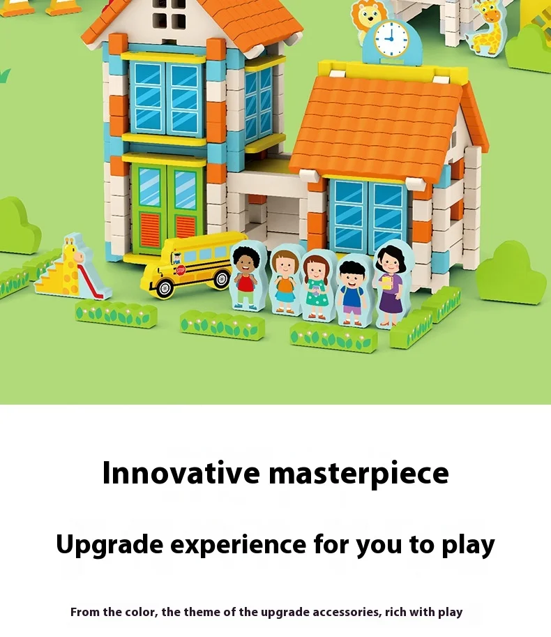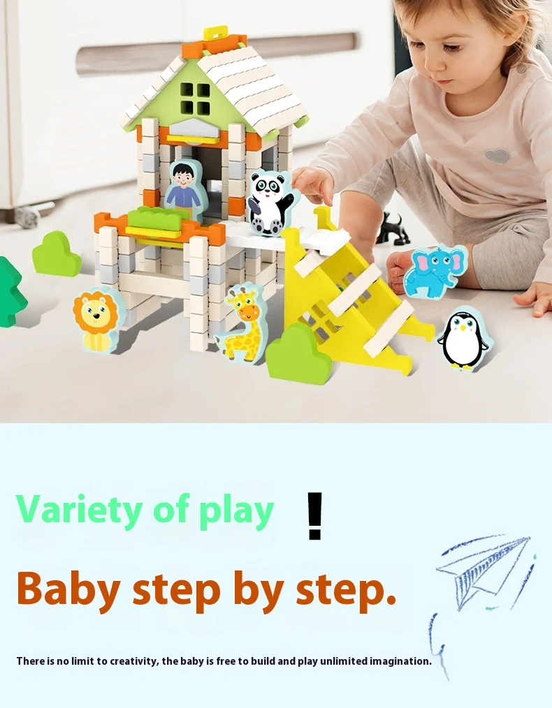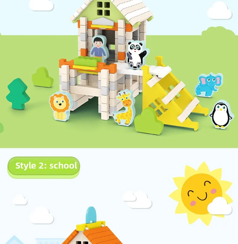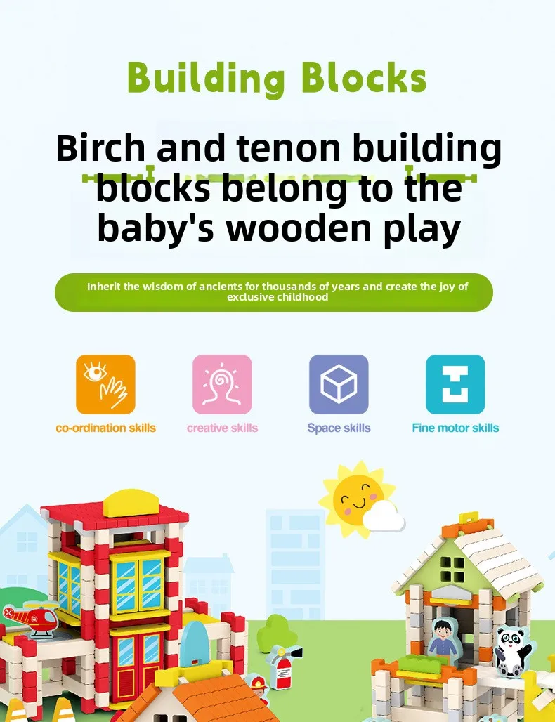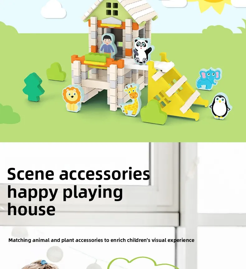 Wooden Cabin Building Blocks Children Early Education Mortise Tenon Kids Hand-Assembled Model House Toy